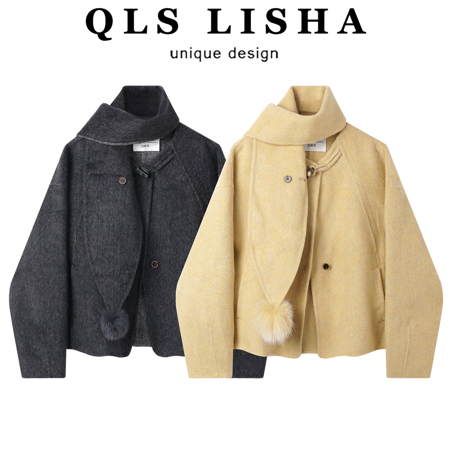 Cholisa-nın çox şirin qalın yun paltosu, zərif, şık və gənc sarı rəngli ikiüzlü yun top.