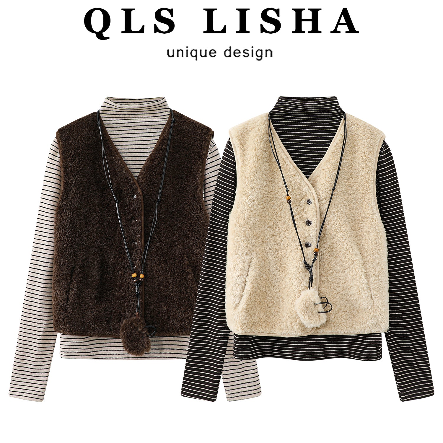 Cholisa-nın qadınlar üçün çox şirin, erkən qış laylı quzu yunundan hazırlanmış jilet paltosu, şık və şık, balıqçı yaxalı toxunmuş üst hissə ilə laylı geyimlər üçün idealdır.