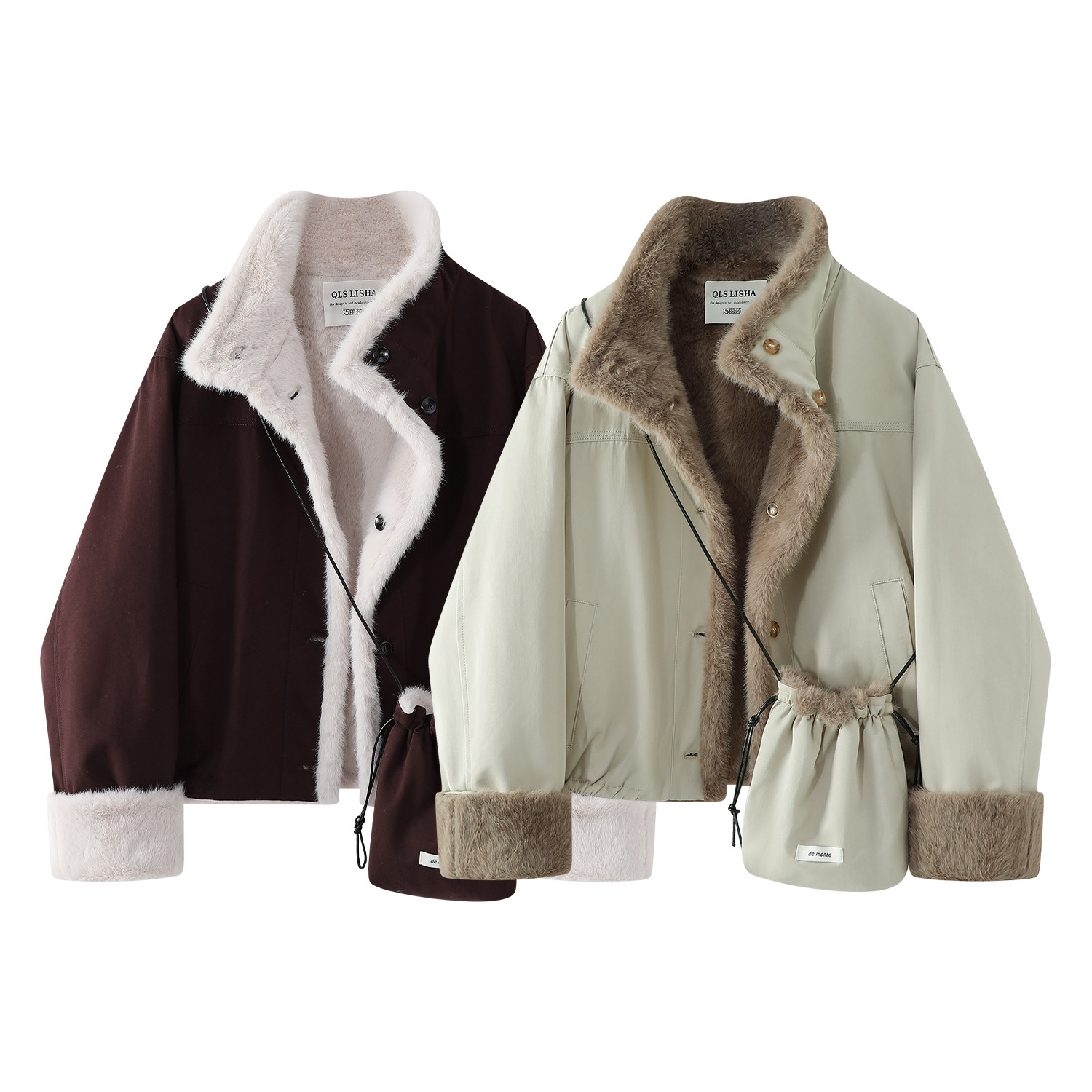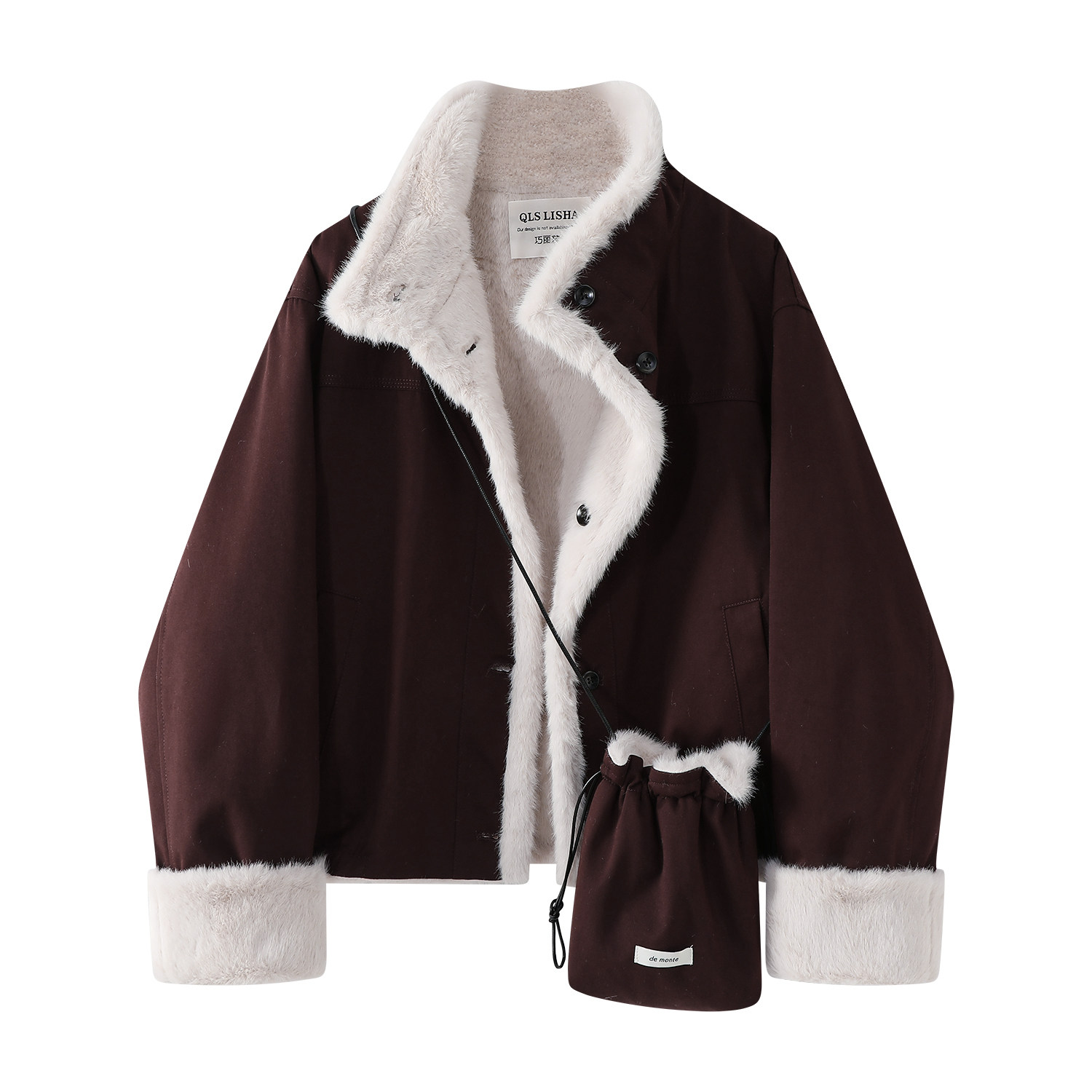 Cholisa-nın qadınlar üçün tamamilə möhtəşəm və gözəl quzu yunundan hazırlanmış paltosu, qış üçün isti və qalın, geri çevrilə bilən yumşaq pambıq üst geyim.