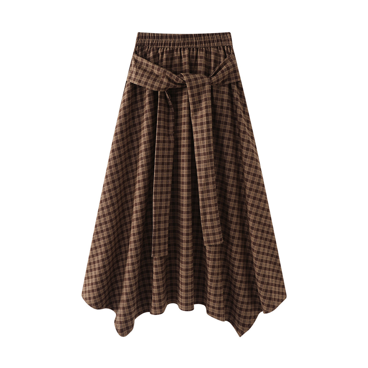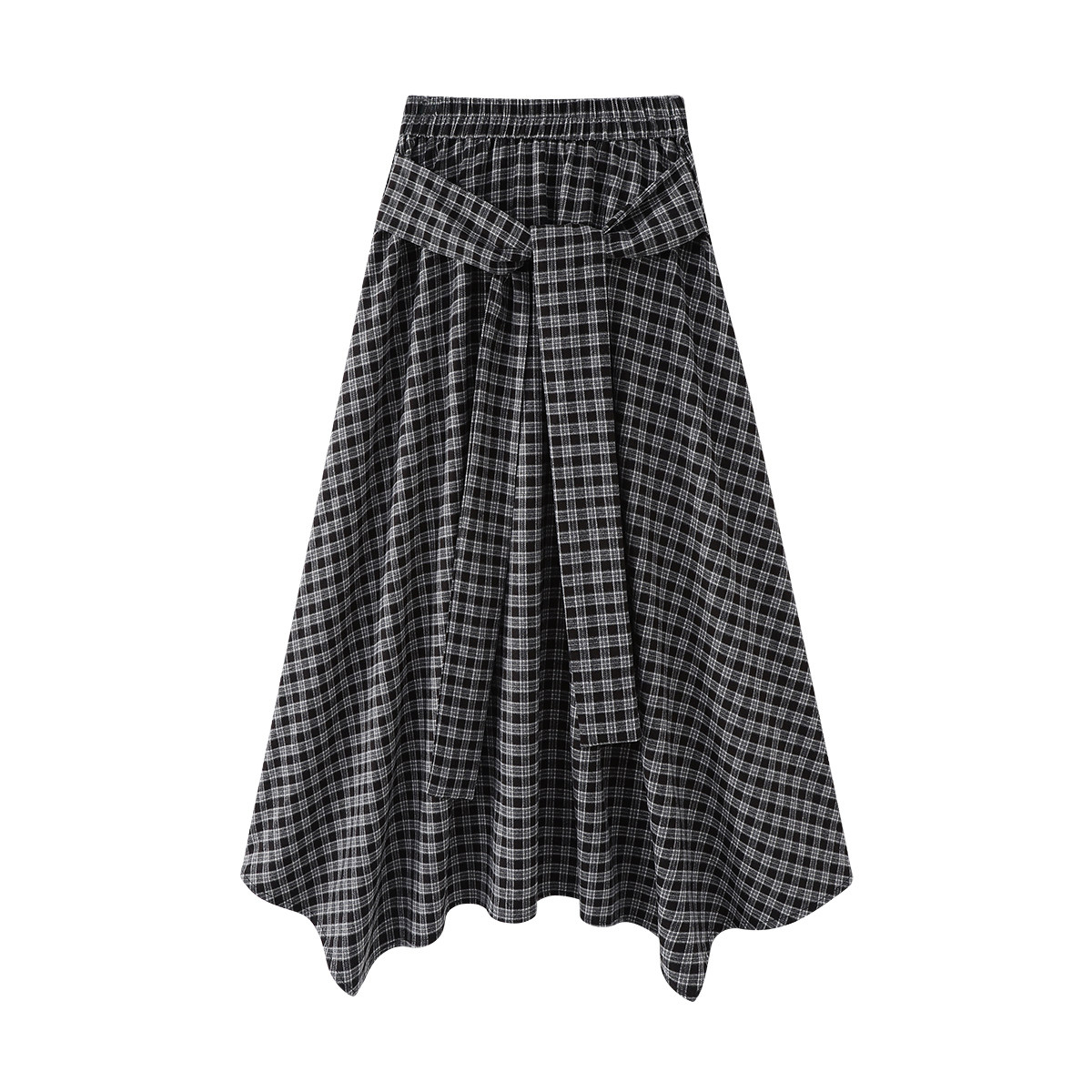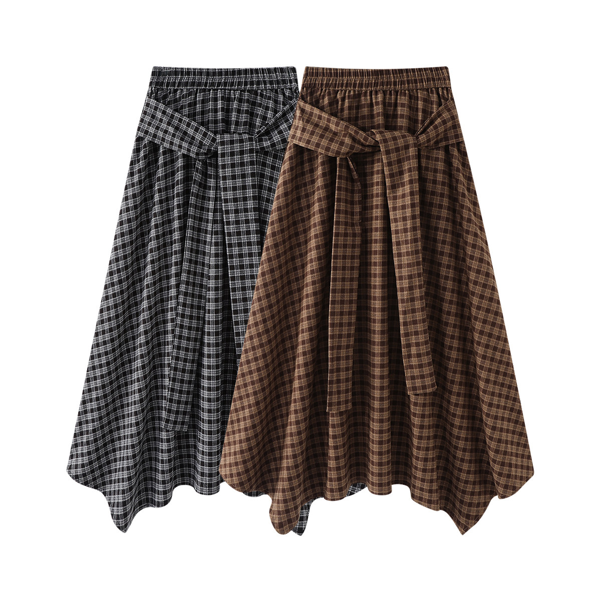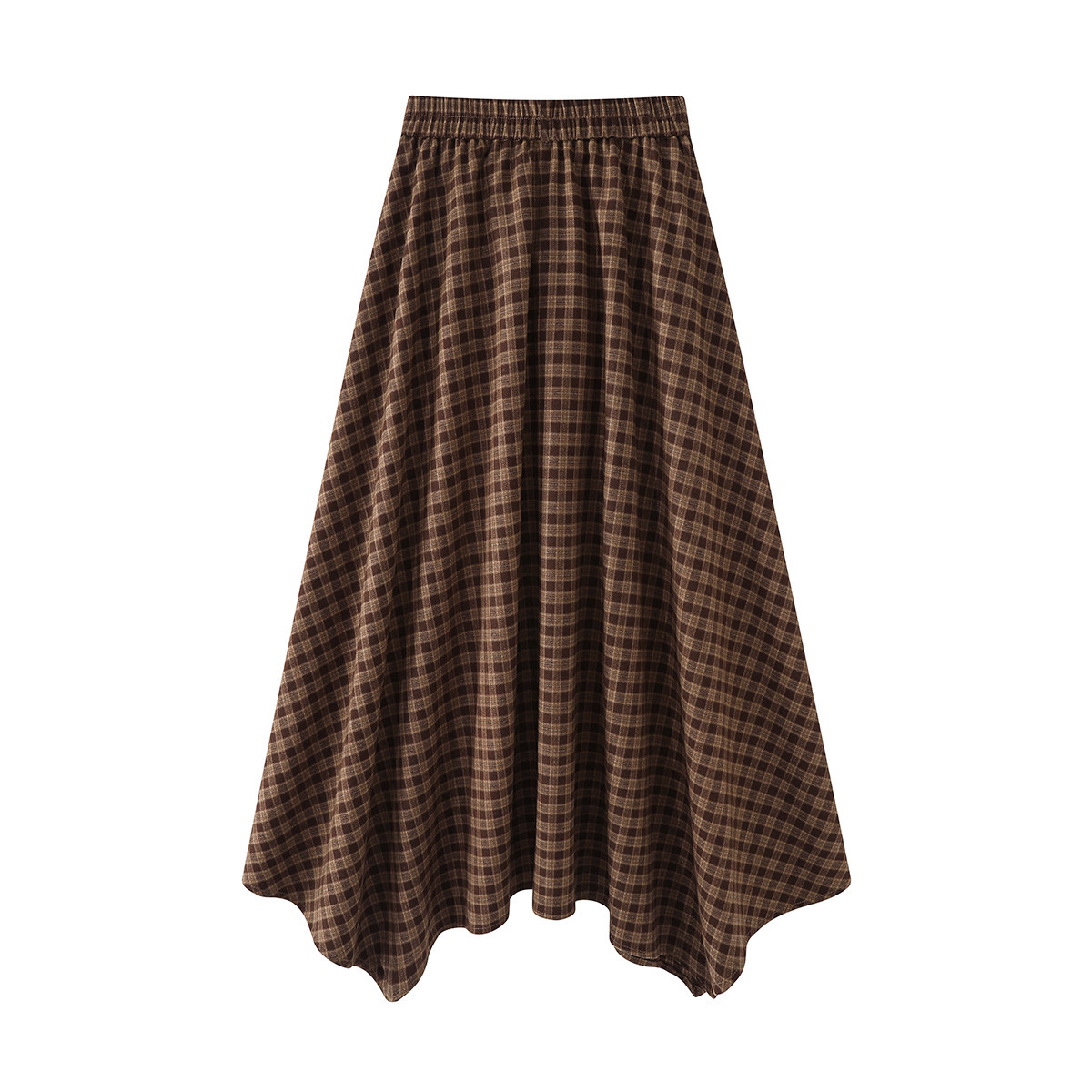 Cholisa-nın qeyri-müntəzəm retro dama-dama ətəyi, payız üçün mükəmməl olan, yüksək belli, axan A-xəttli ətəkdir.