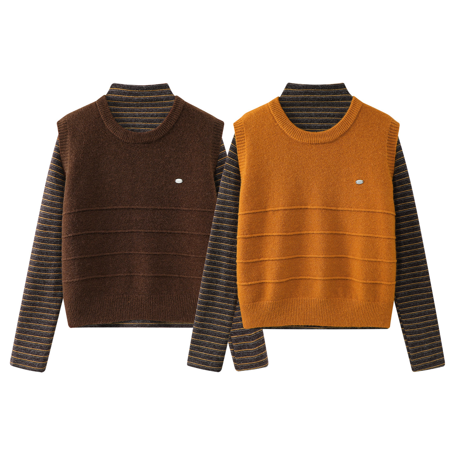 Cholisa sviter jilet Koreya şık dəsti qadın payız və qış yüksək keyfiyyətli zolaqlı toxunma uzunqol iki hissəli dəst