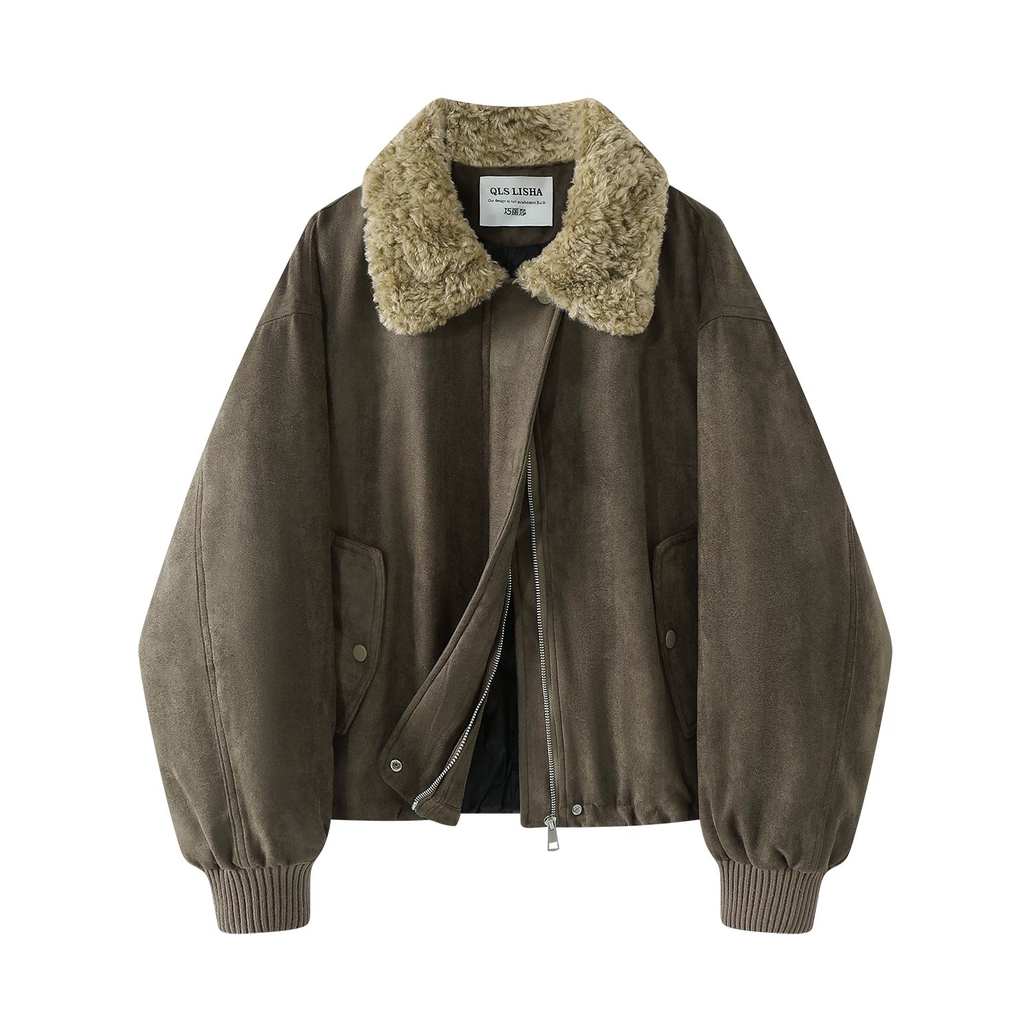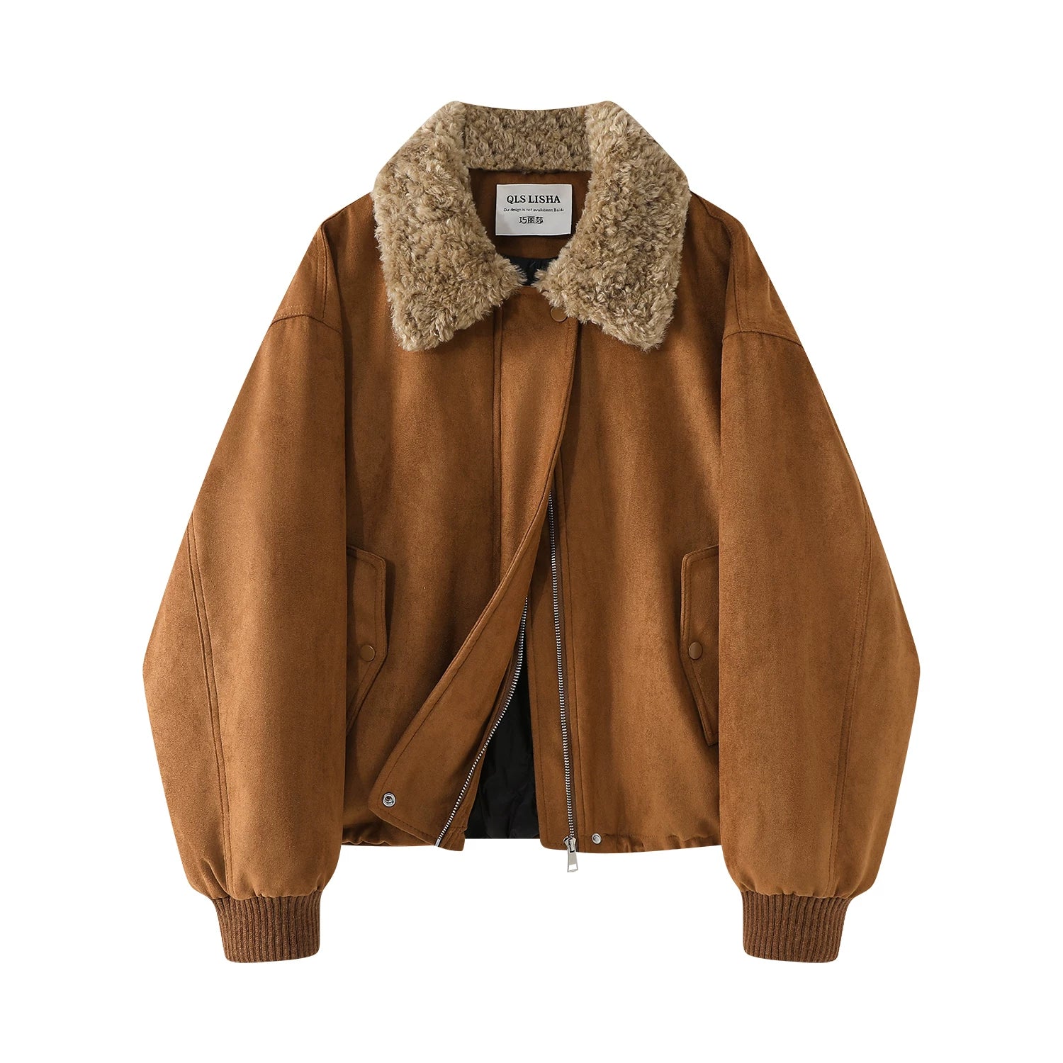 Chorlisa Qadınlar üçün Payız/Qış Retro Yaxalıq Süet Gödəkçə, 2025 Yeni Model, Super Şirin Yastıqlı Pambıq Gödəkçə