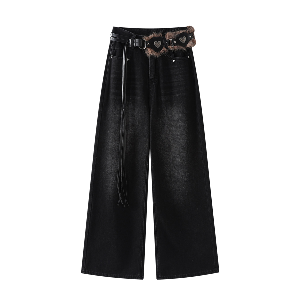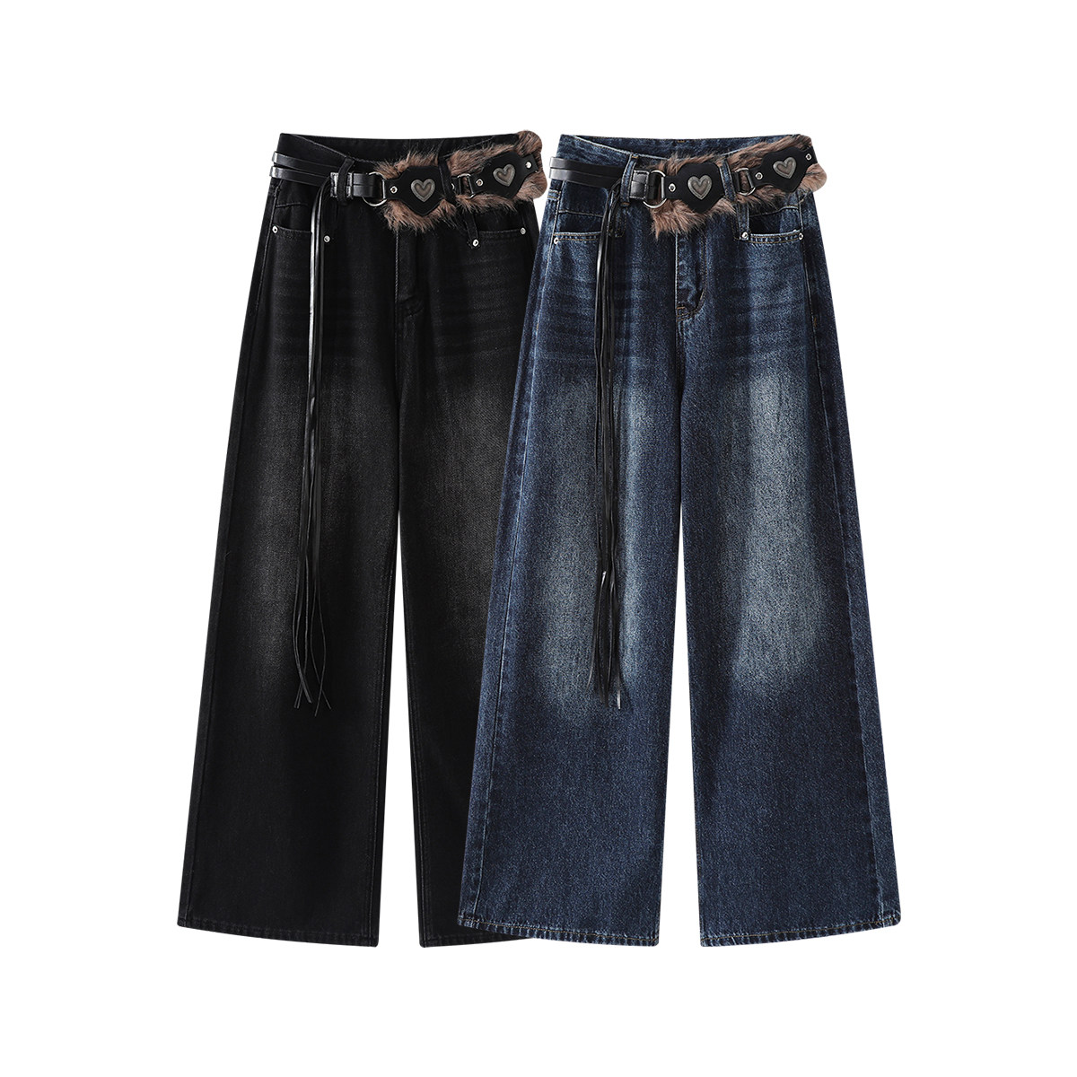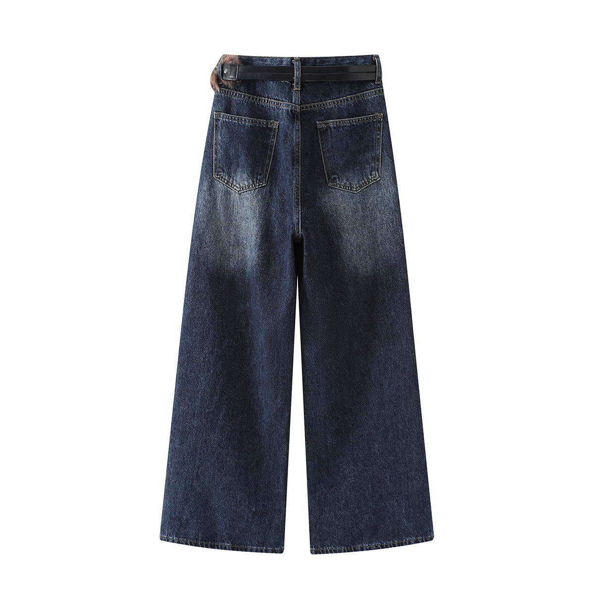 Chorlisa, qadınlar üçün vintage, işlənmiş denim cins şalvar, geniş ayaqlı, boş, çoxfunksiyalı, payız Amerika üslubunda, yüksək belli düz ayaqlı şalvar.