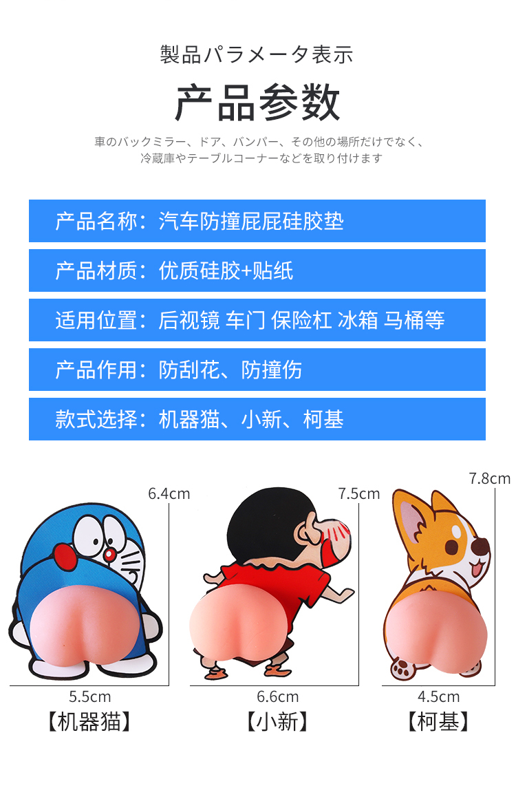 Crayon Xiaoxin avtomobil qapısı toqquşmaya qarşı stikerlər avtomobil sevimli çimdik butt silikon bamper zolağı açıq qapı anti-cızıq silmək dekorativ etiket