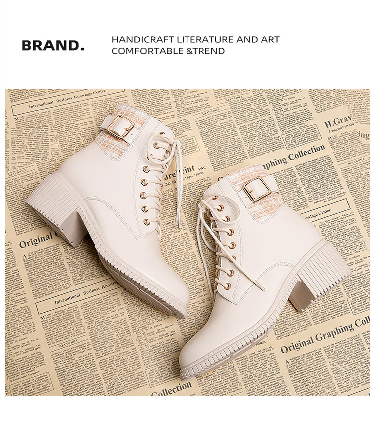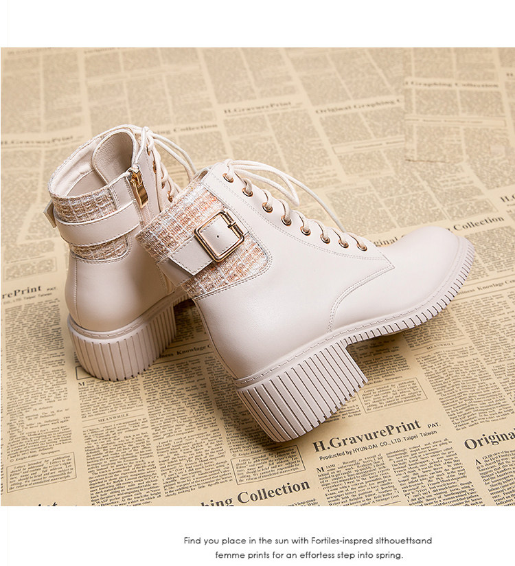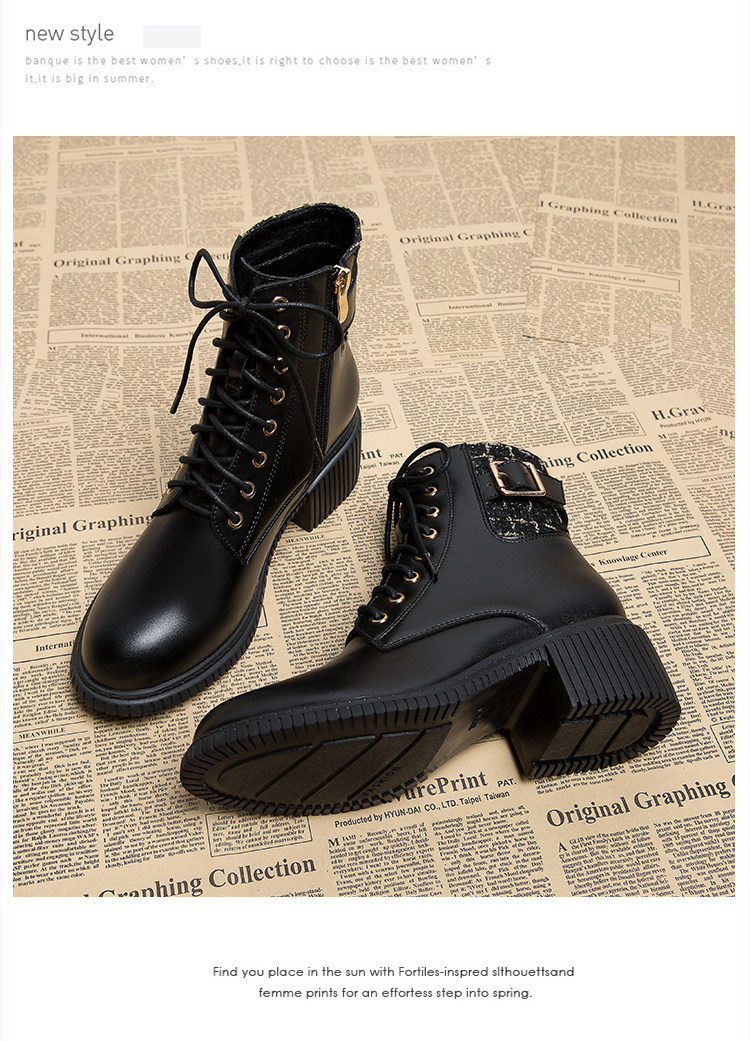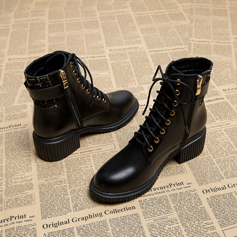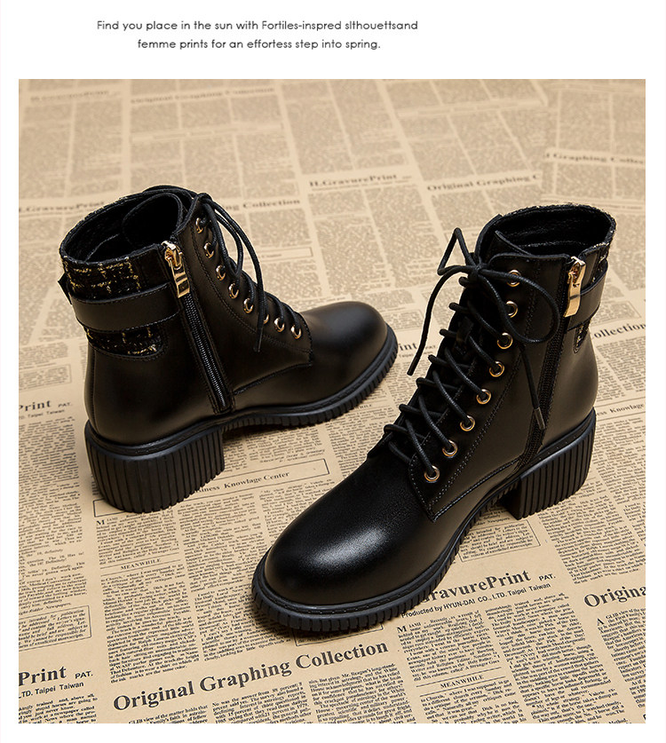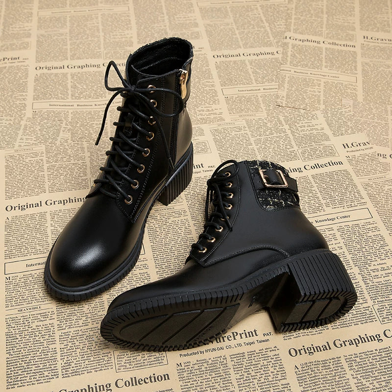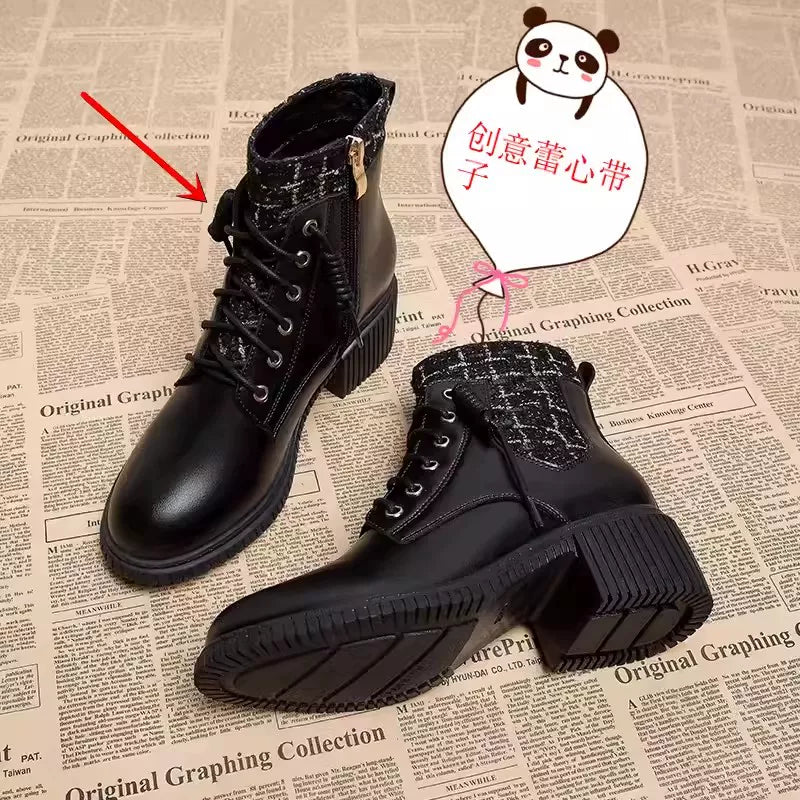 Dəri versiyası ~ Chanel üslubunda qadınlar üçün ayaq biləyi çəkmələri, super populyar hündürdaban qış, incə və şirin, sərin Martin çəkmələri.