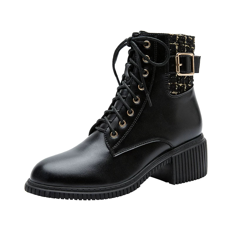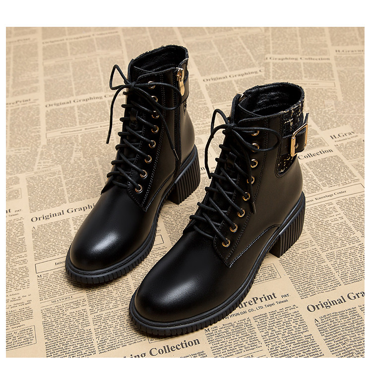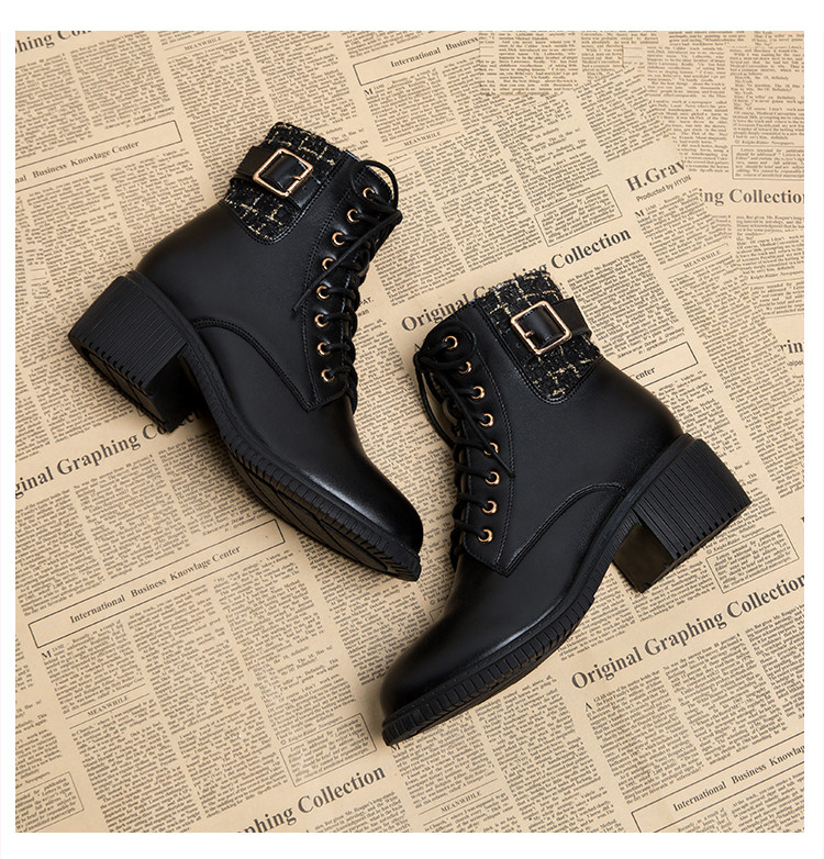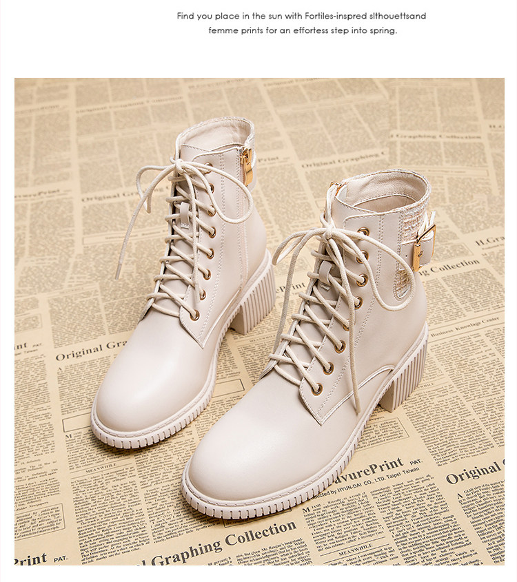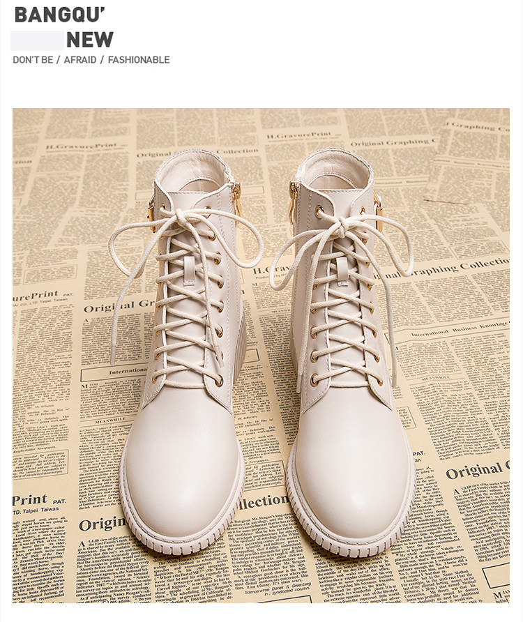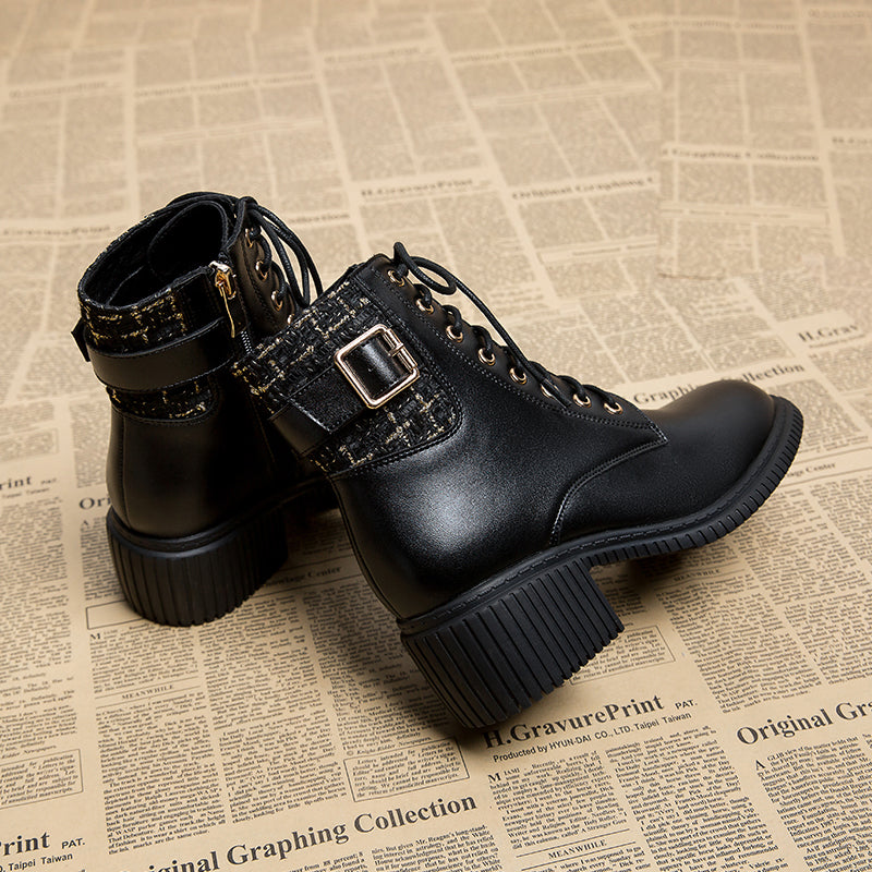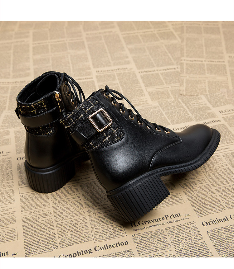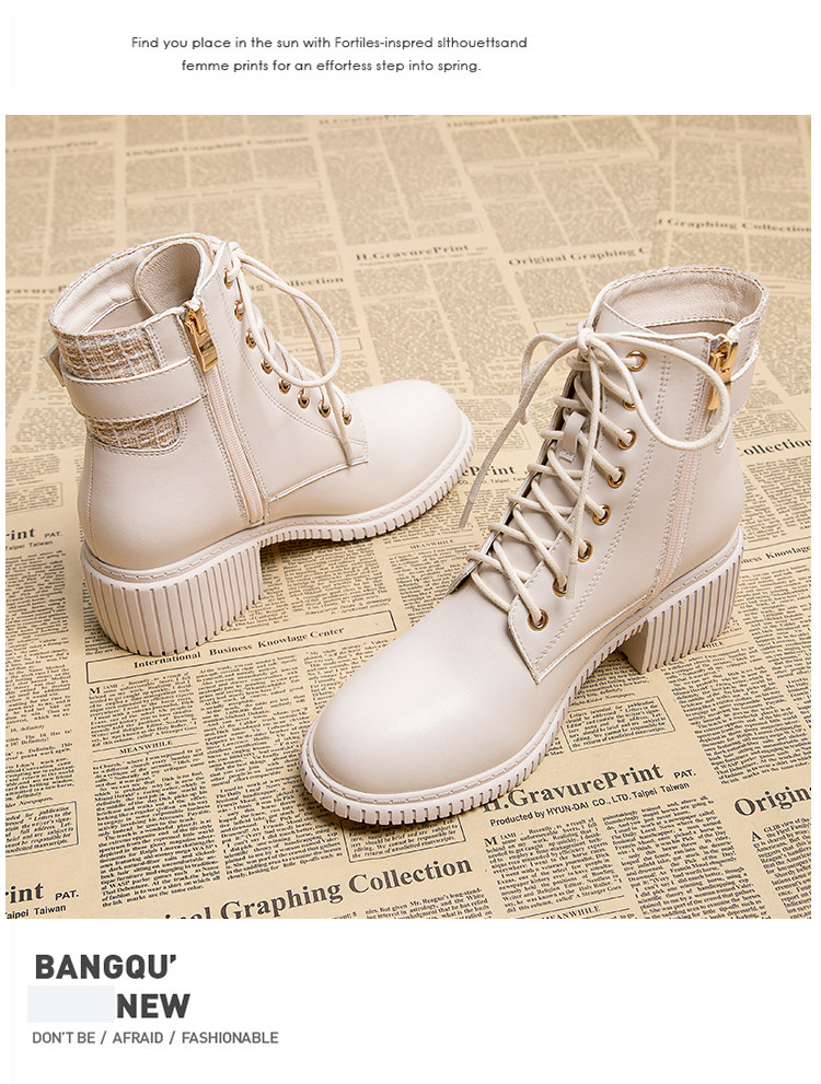 Dəri versiyası ~ Chanel üslubunda qadınlar üçün ayaq biləyi çəkmələri, super populyar hündürdaban qış, incə və şirin, sərin Martin çəkmələri.