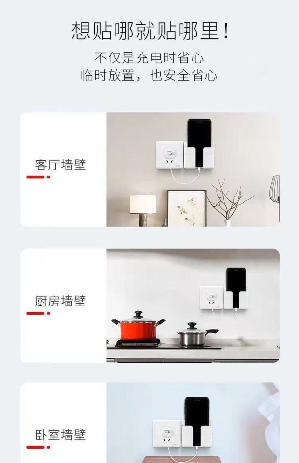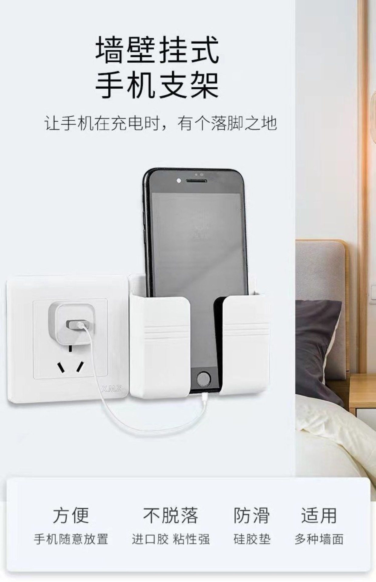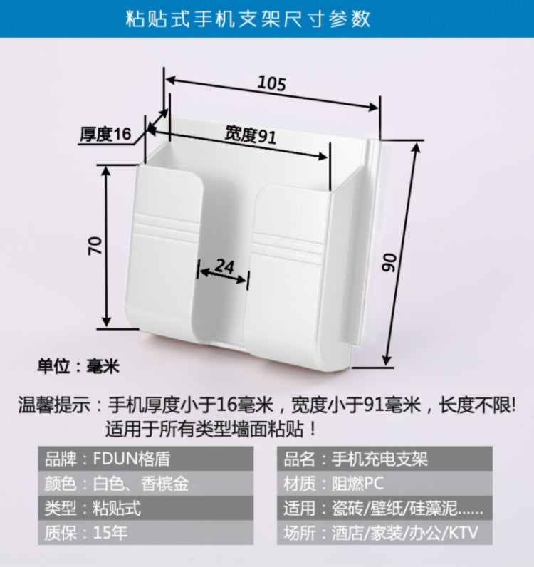 Dəzgahsız divara quraşdırılmış telefon şarj stendi, yapışqanlı pult saxlama qutusu, yataq kənarındakı tənbəl telefon tutacağı