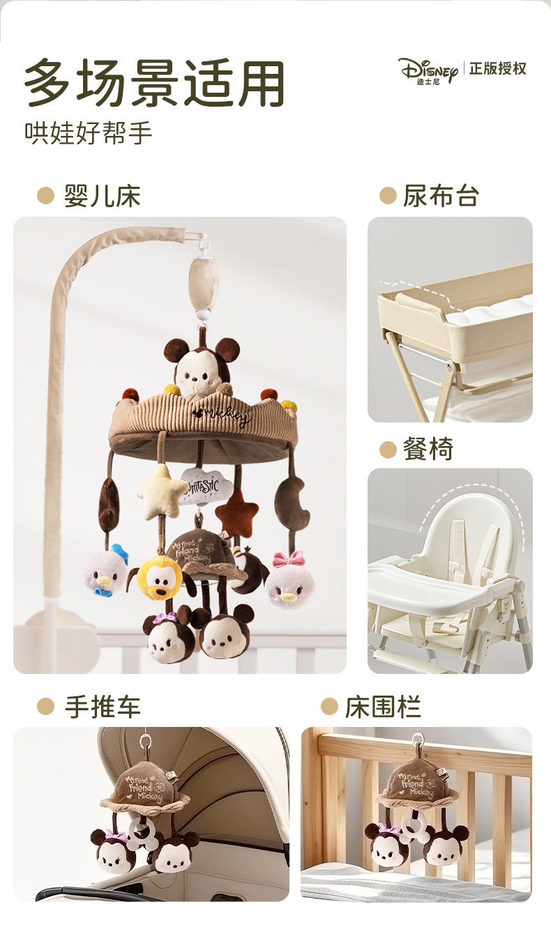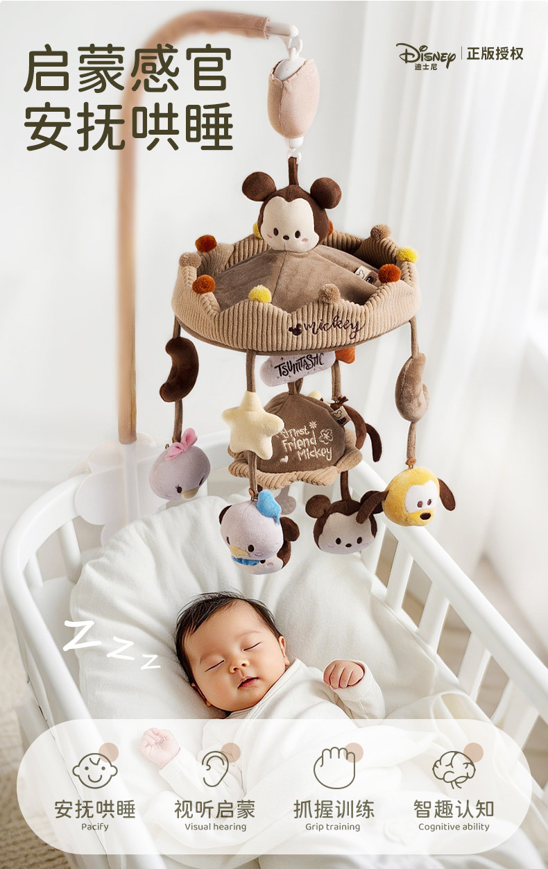 Disney beşiyi çırtıltılı körpə beşiyi mobil fırlanan asma oyuncaq yeni doğulmuş körpə arabası asqısı Yeni il hədiyyə qutusu