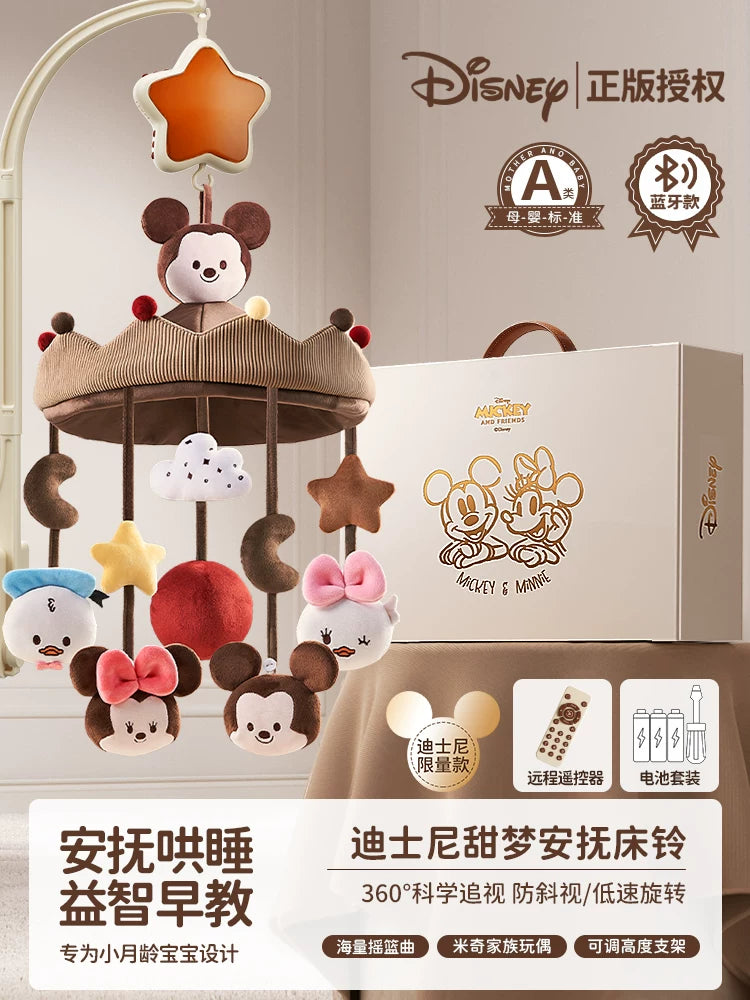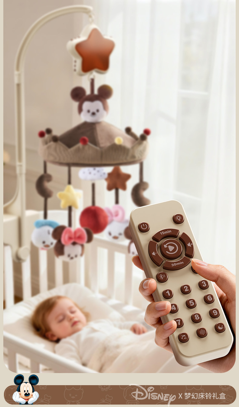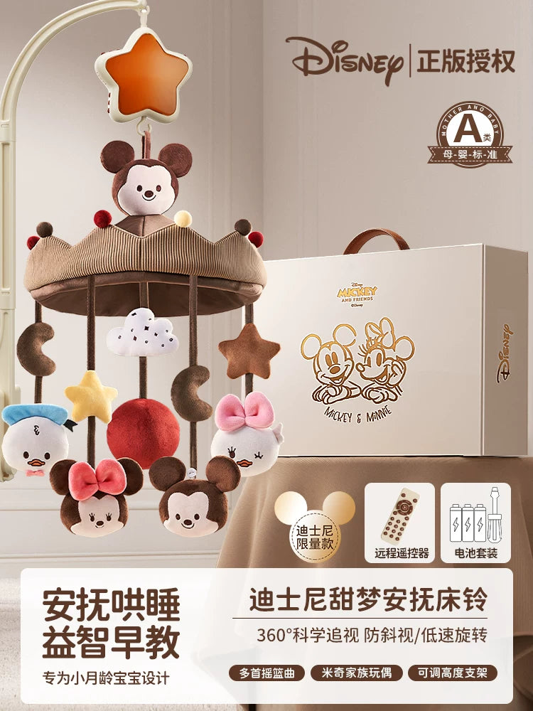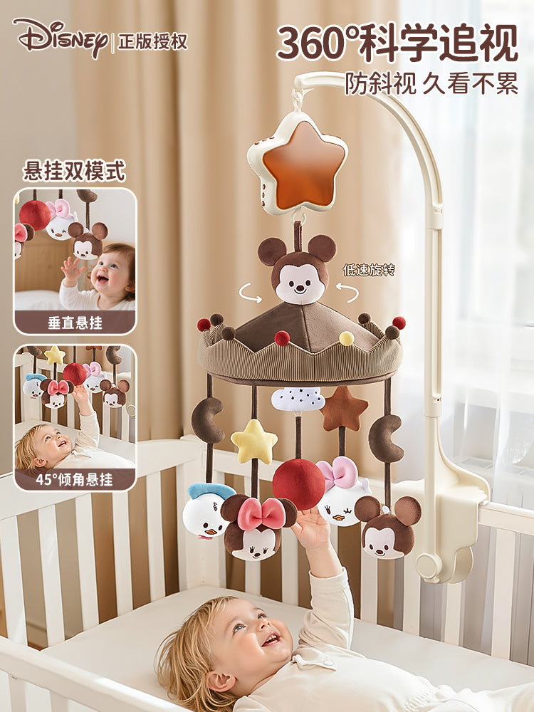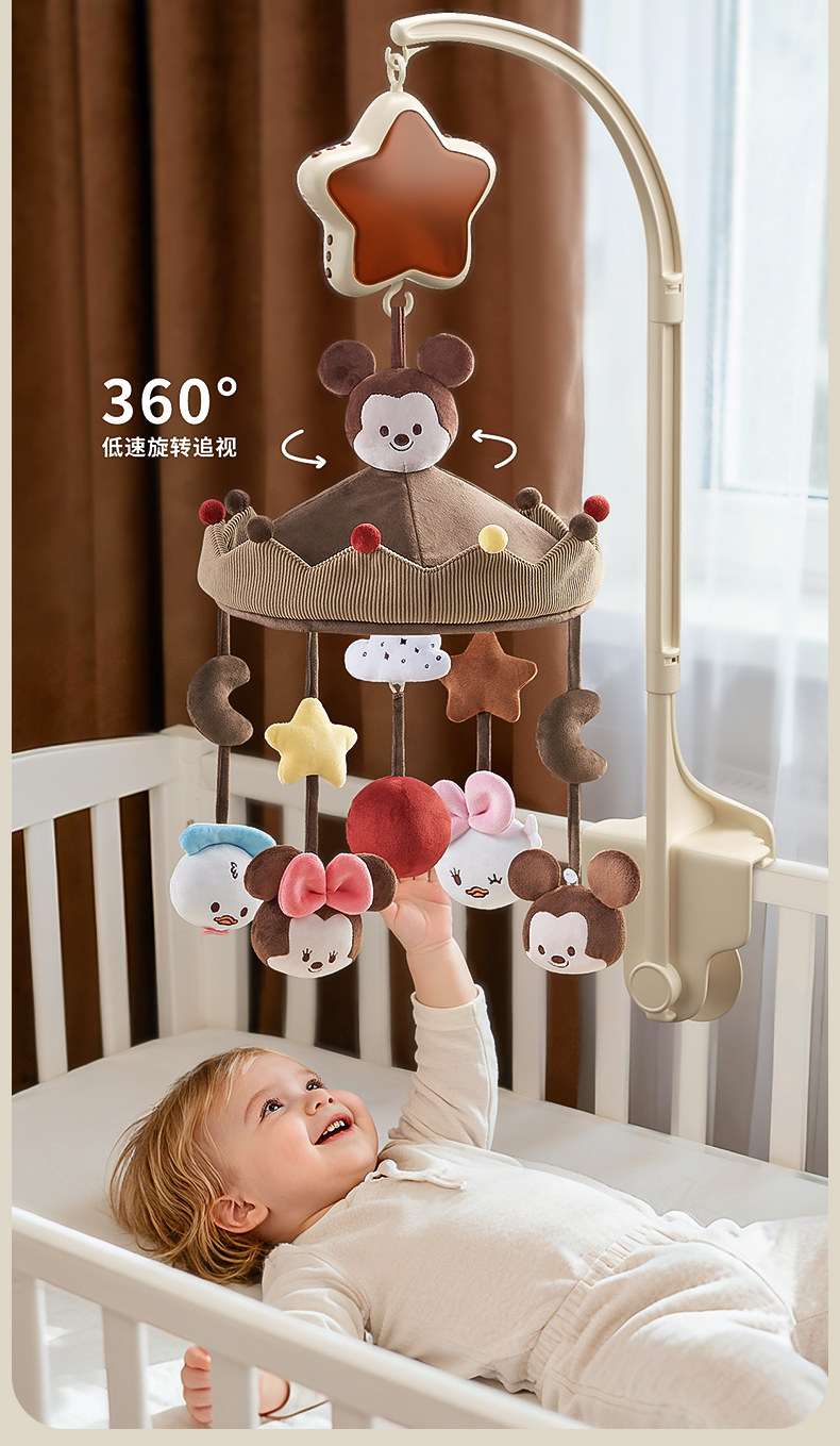 Disney mobil körpə beşiyi başlıqlı musiqi fırlanan asma zınqırovlu yeni doğulmuş körpə arabası asma oyuncaq hədiyyə qutusu