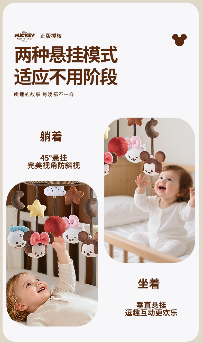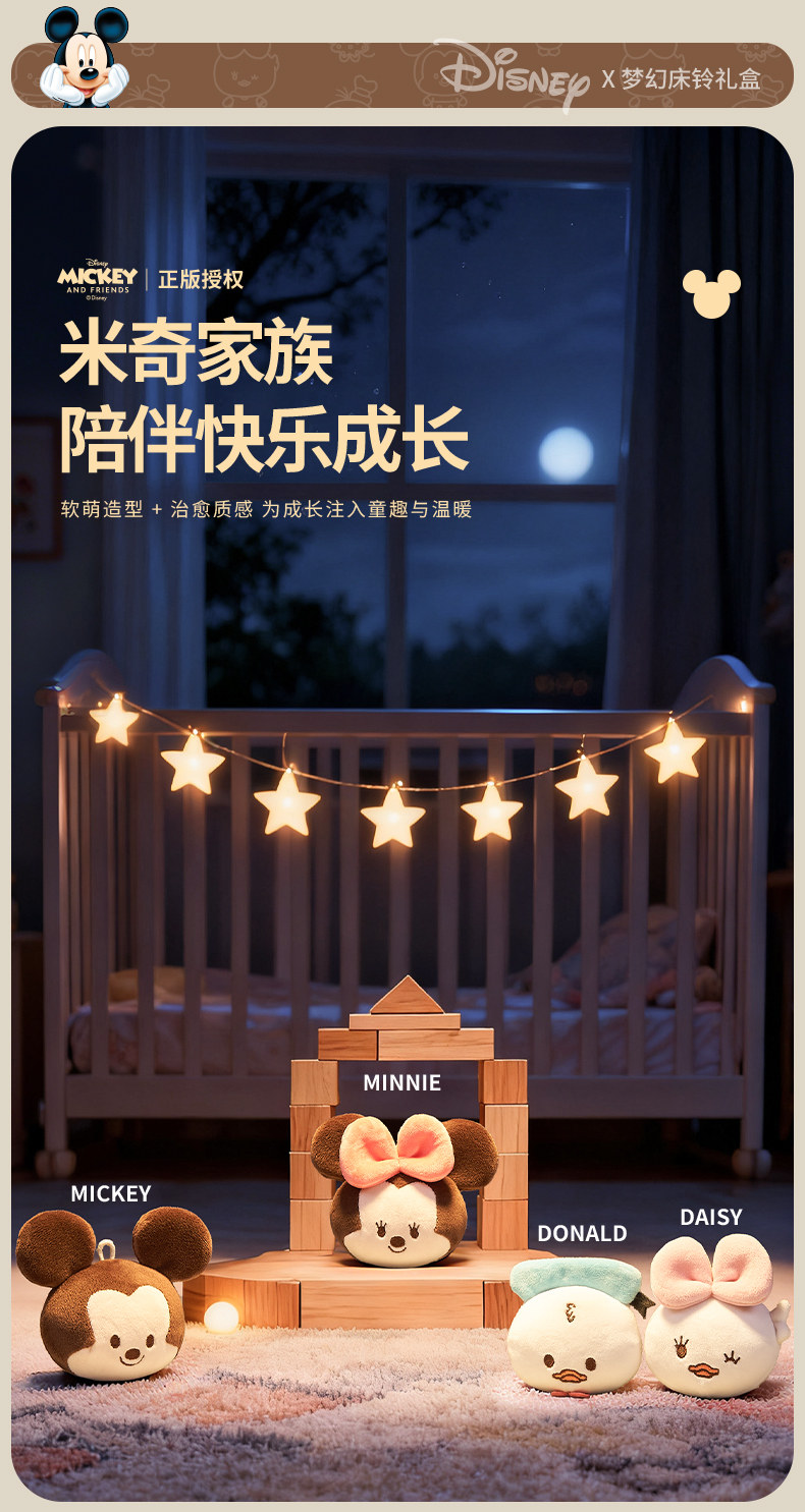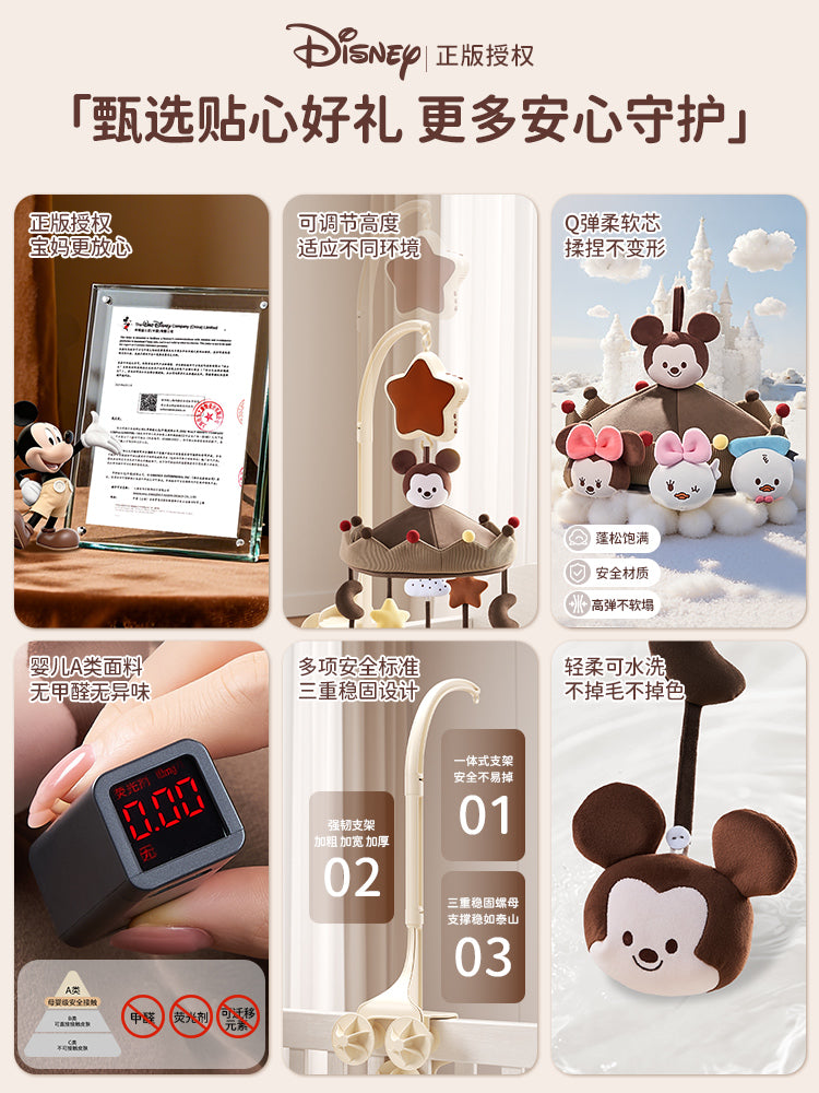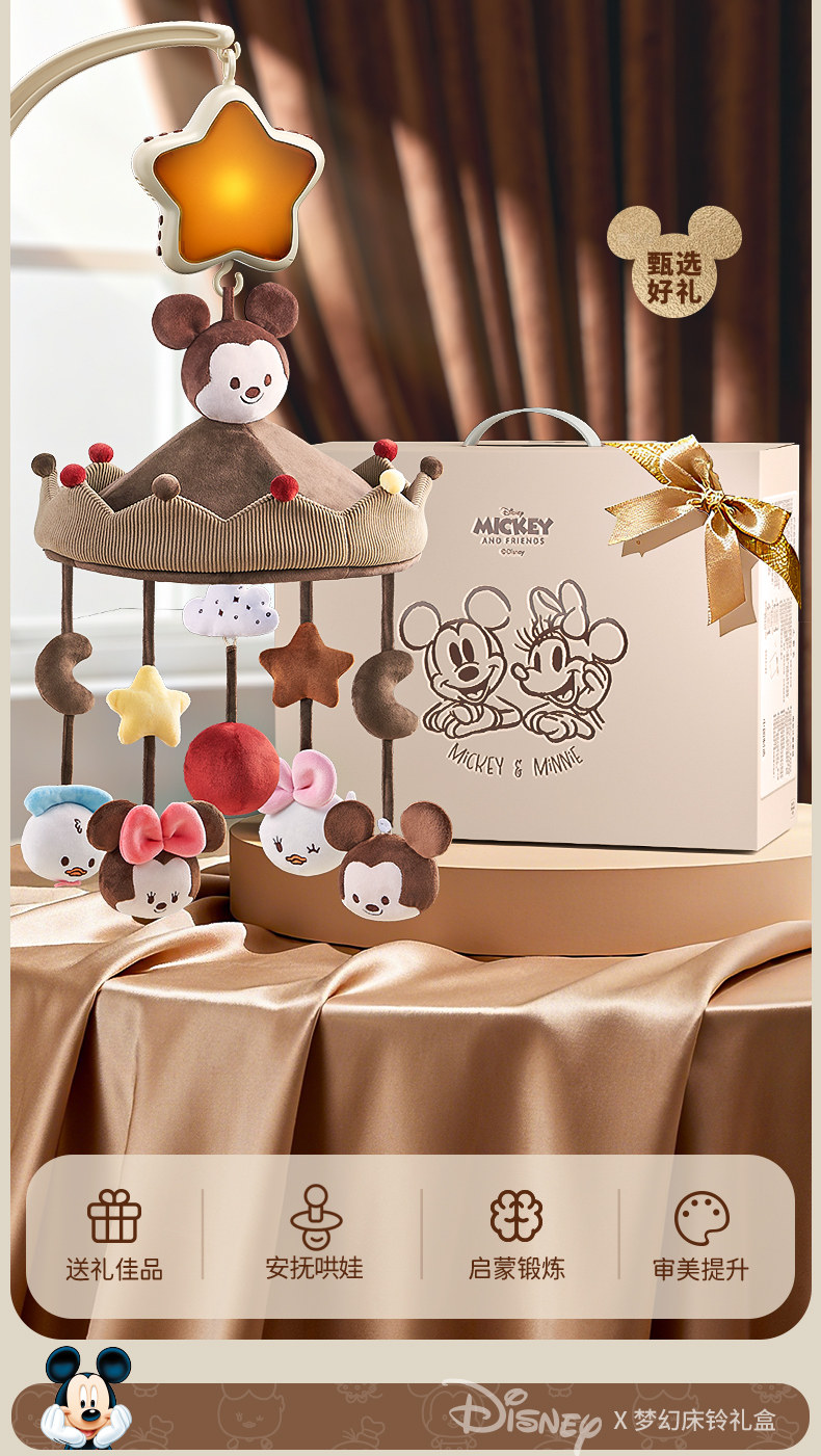 Disney mobil körpə beşiyi başlıqlı musiqi fırlanan asma zınqırovlu yeni doğulmuş körpə arabası asma oyuncaq hədiyyə qutusu