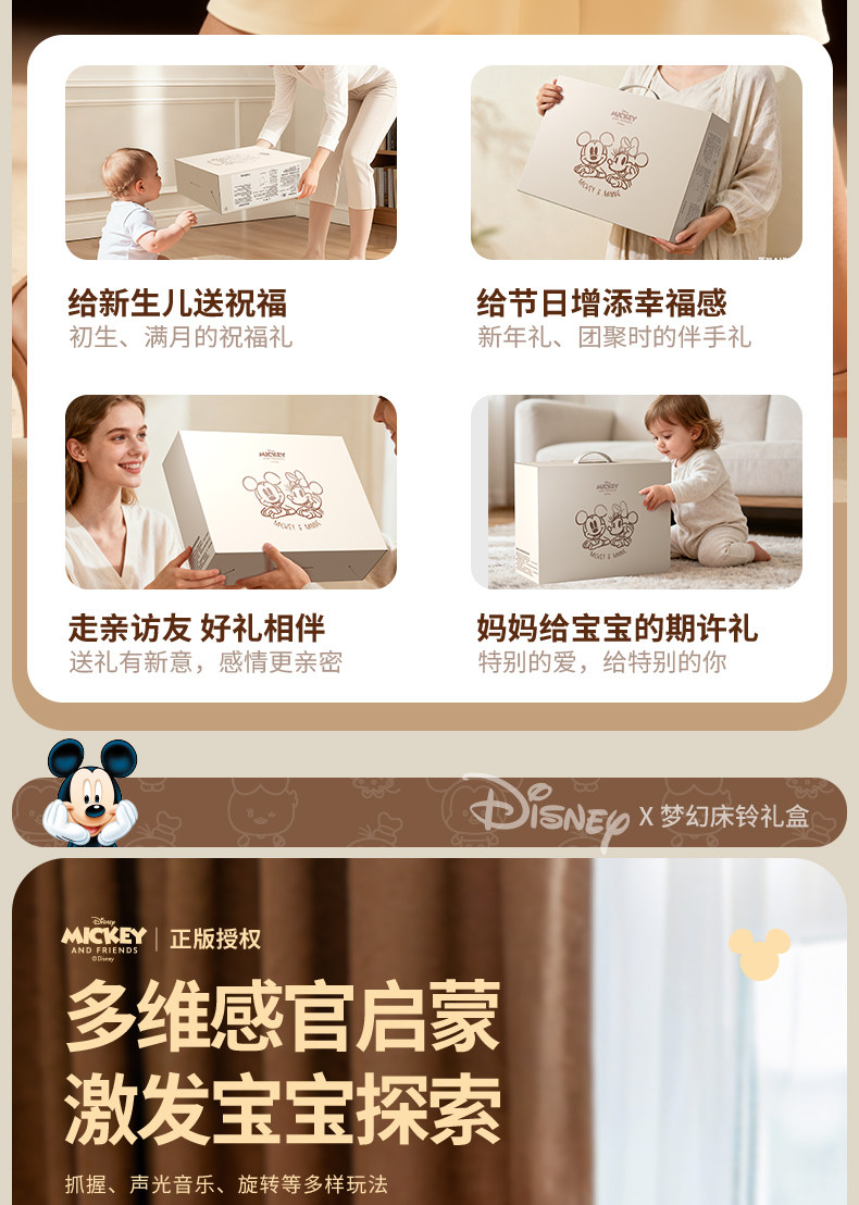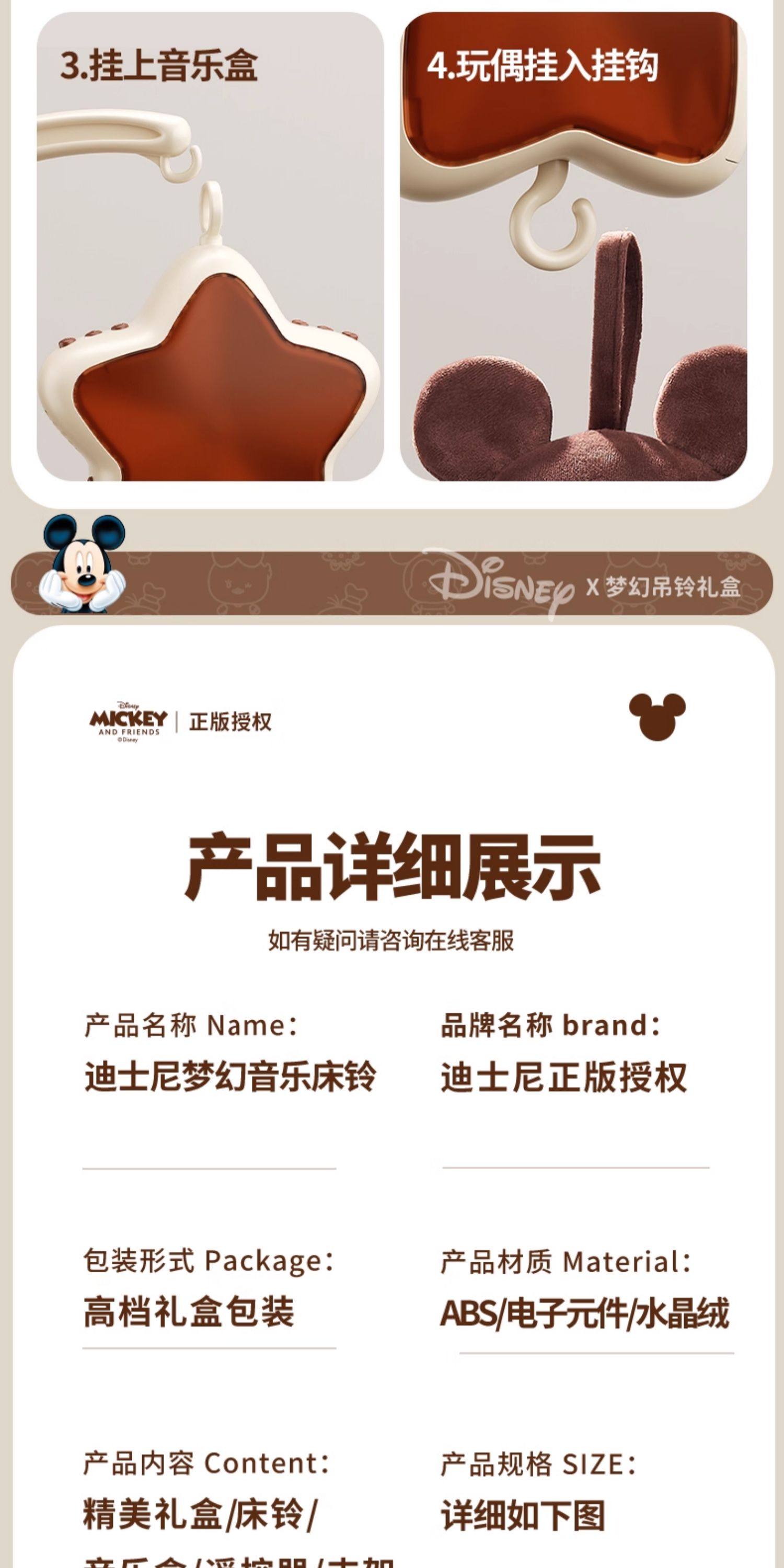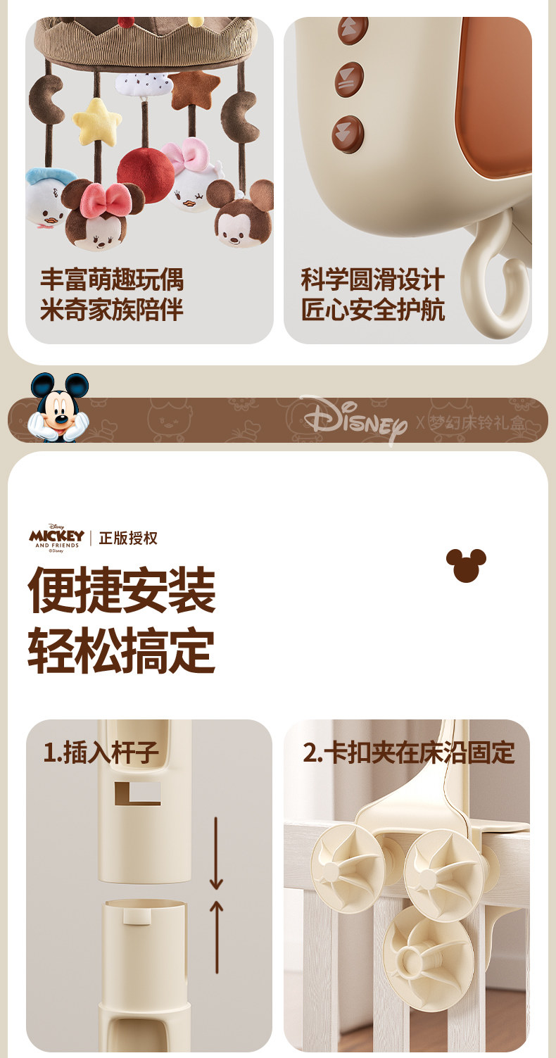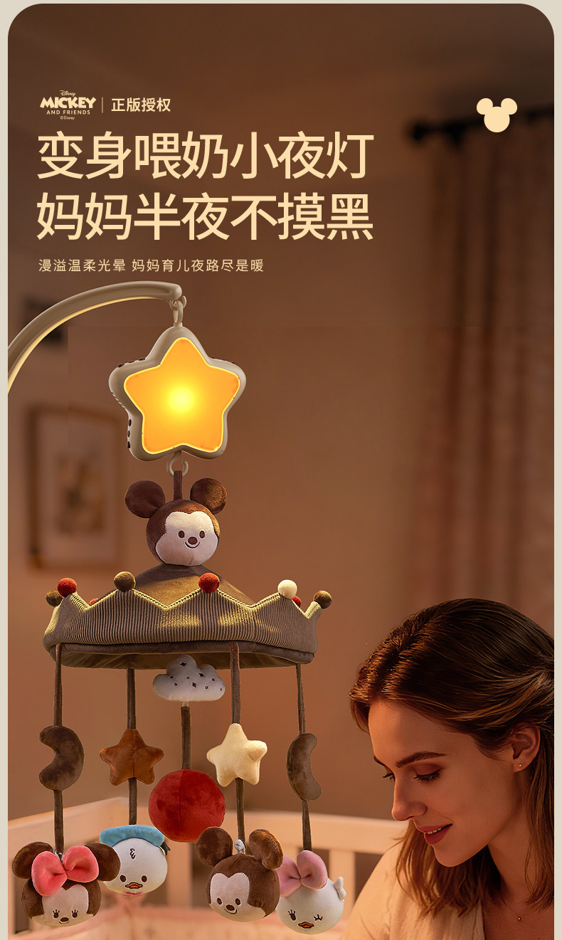 Disney mobil körpə beşiyi başlıqlı musiqi fırlanan asma zınqırovlu yeni doğulmuş körpə arabası asma oyuncaq hədiyyə qutusu