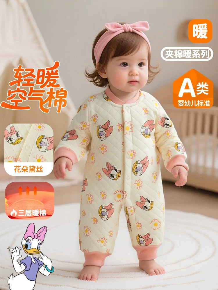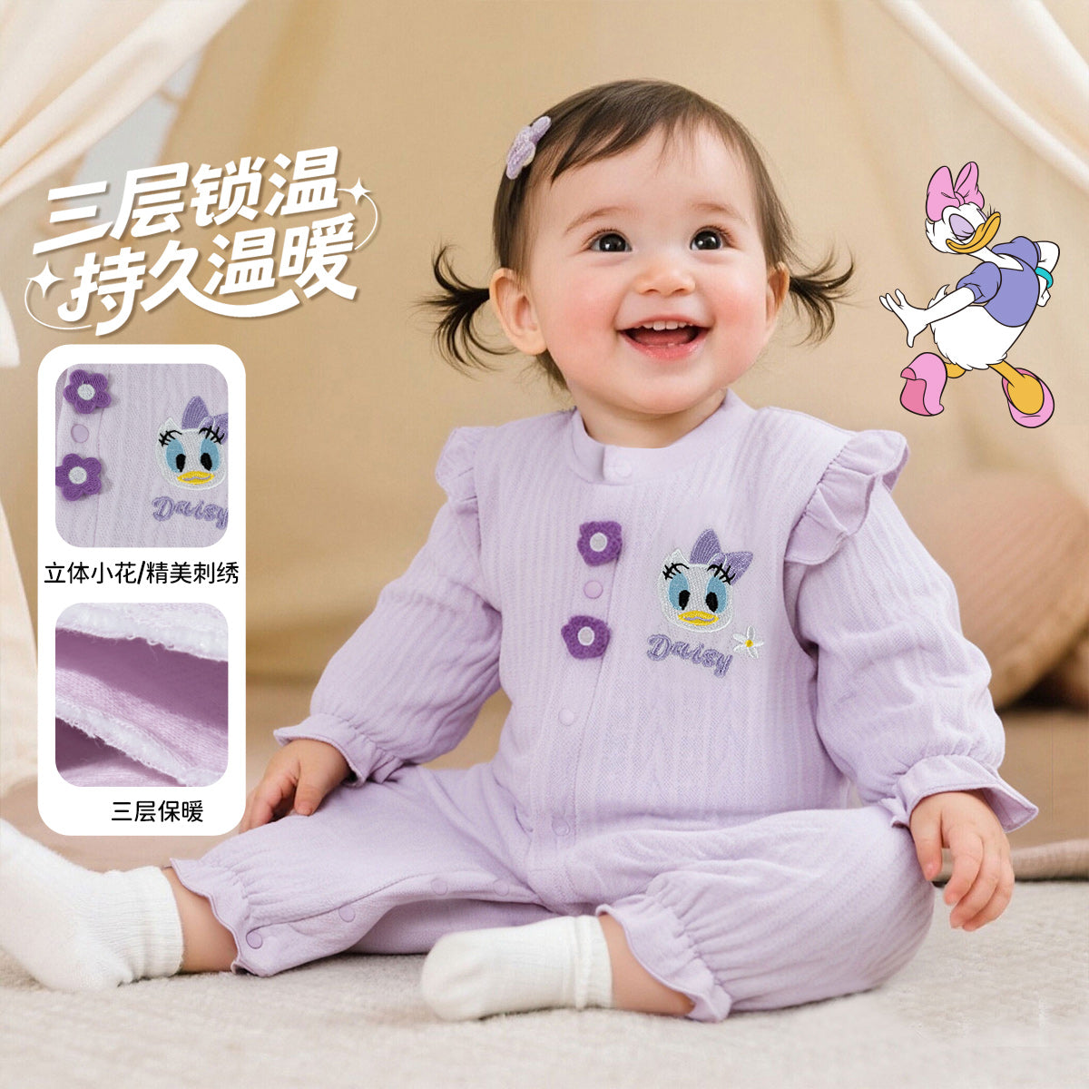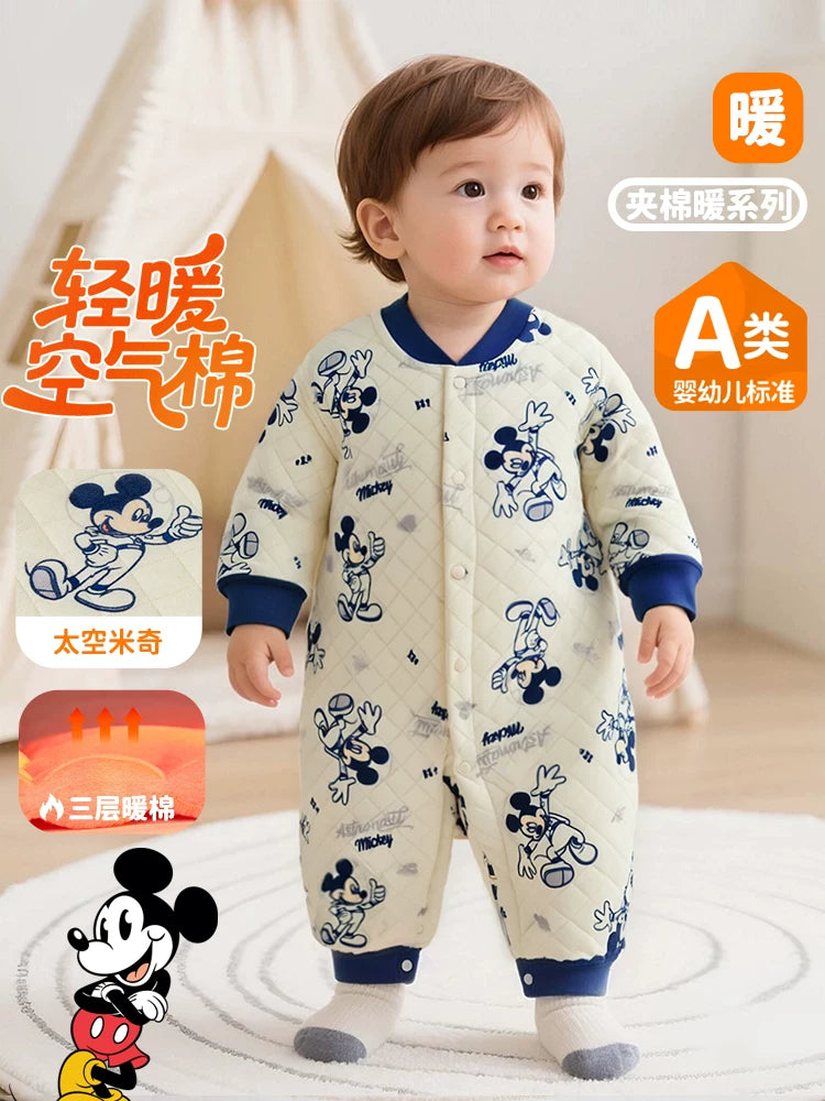 Disney uşaq geyimləri payız və qış yeni stil uşaq bodi üç qatlı isti ev sürünən kostyum nazik təmiz pambıq sırğalı Mickey Mouse