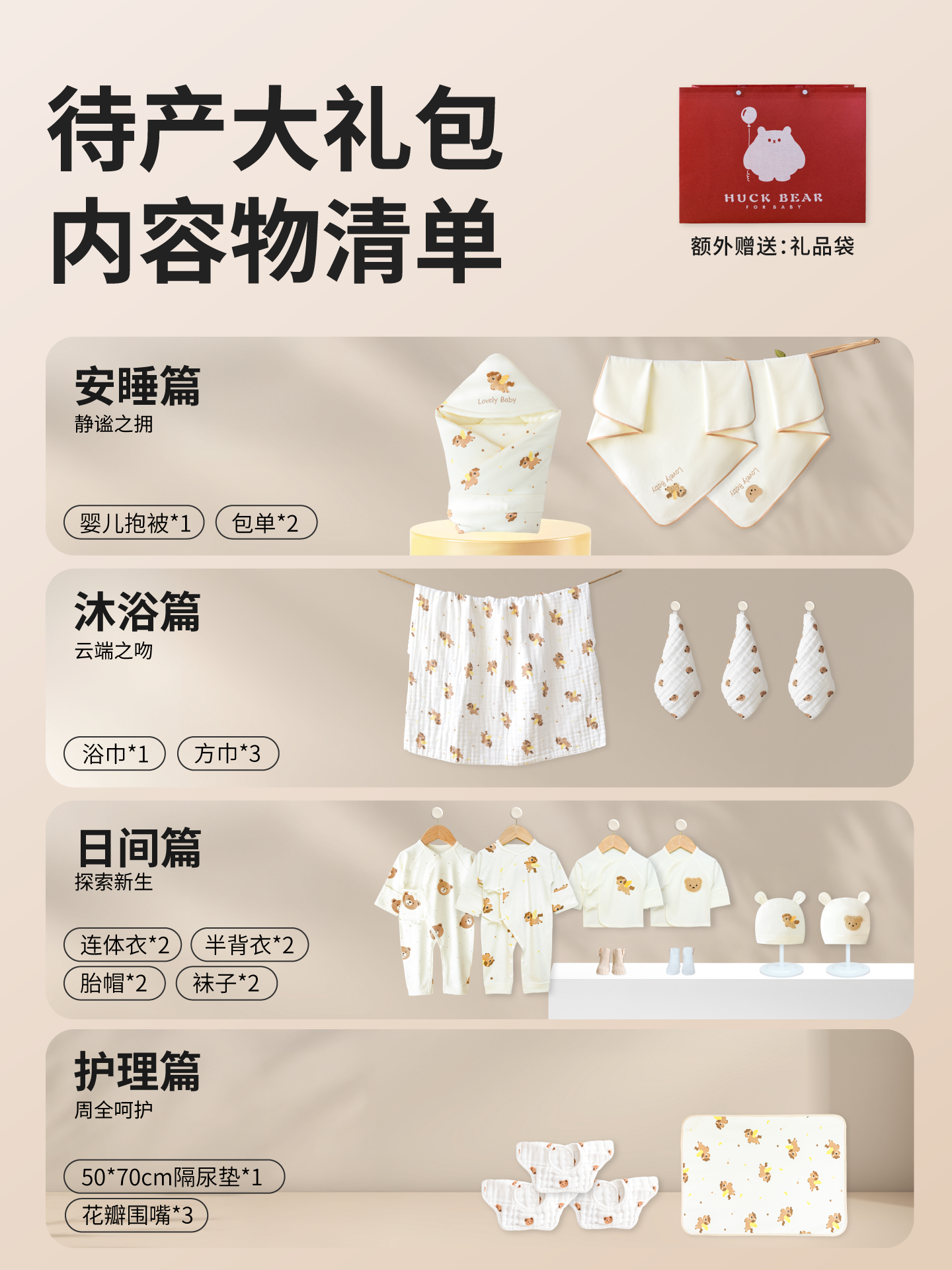 Doğum çantası dəsti, ana və körpə üçün tam dəst, ilan körpəsi üçün yorğan, təmiz pambıq, yay və payız/qış doğum evinə qəbul üçün uyğundur.