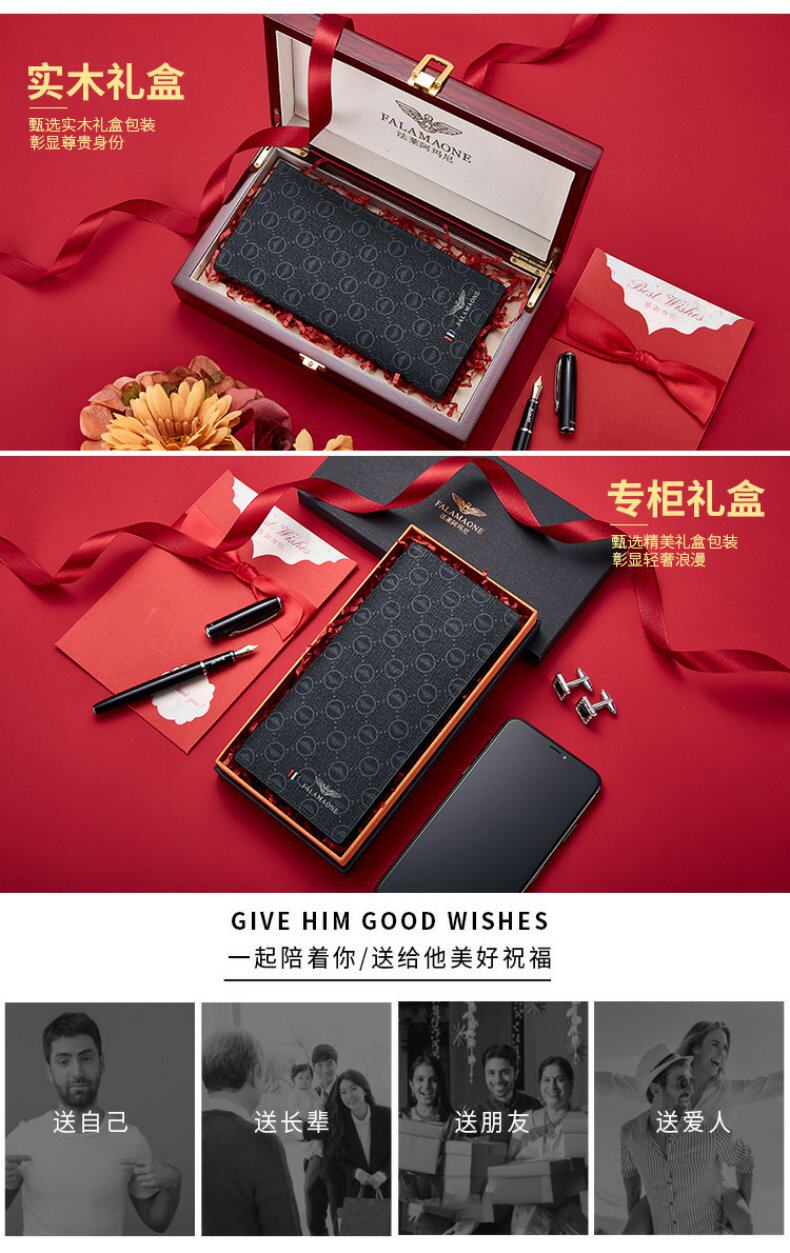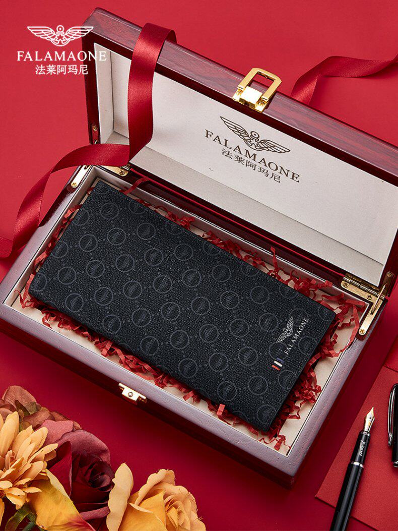 Falley Armani Kişi Uzun Cüzdanı - Ata, Ər, Ad Günü və ya Sevgili üçün Hədiyyə (Qixi Festivalı)