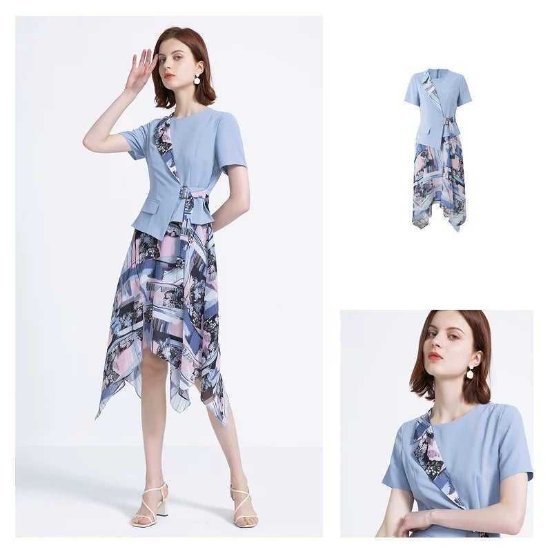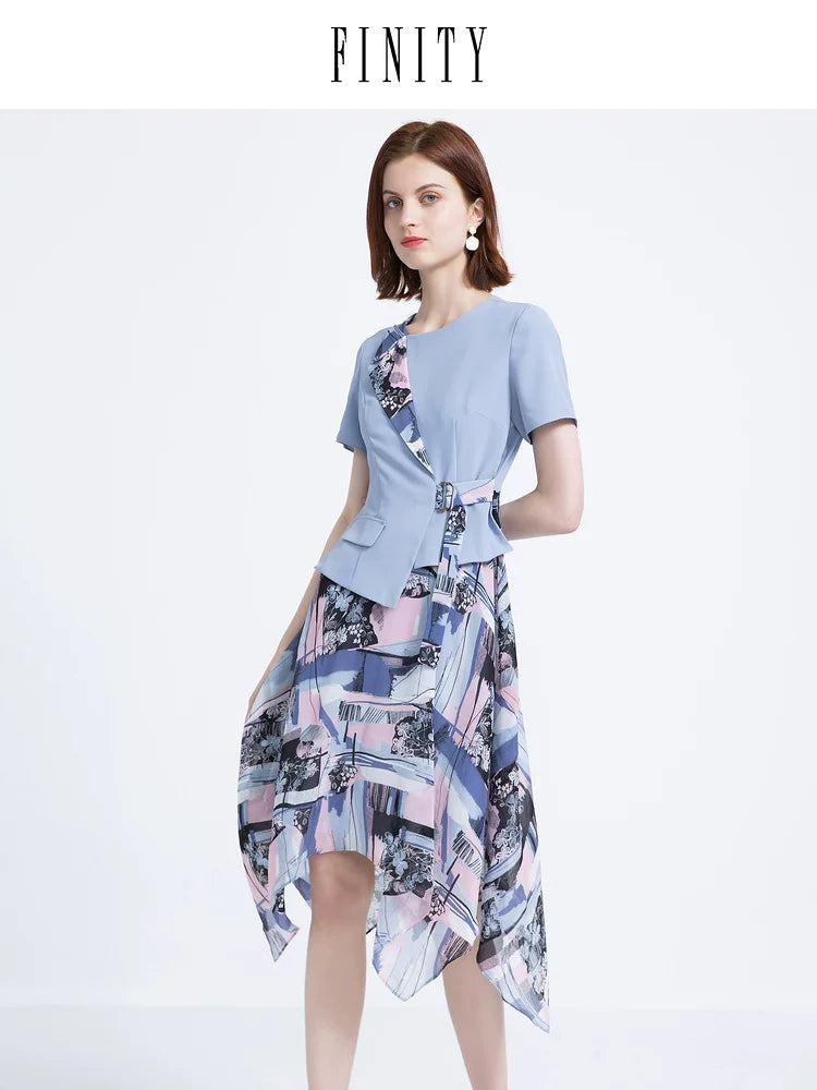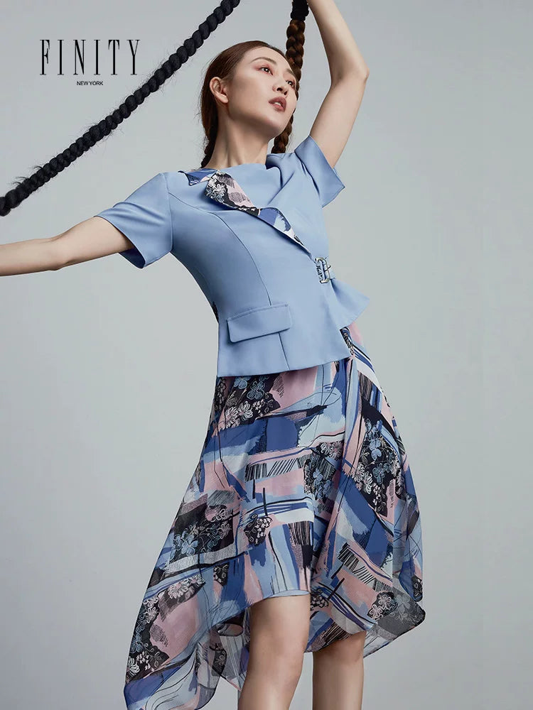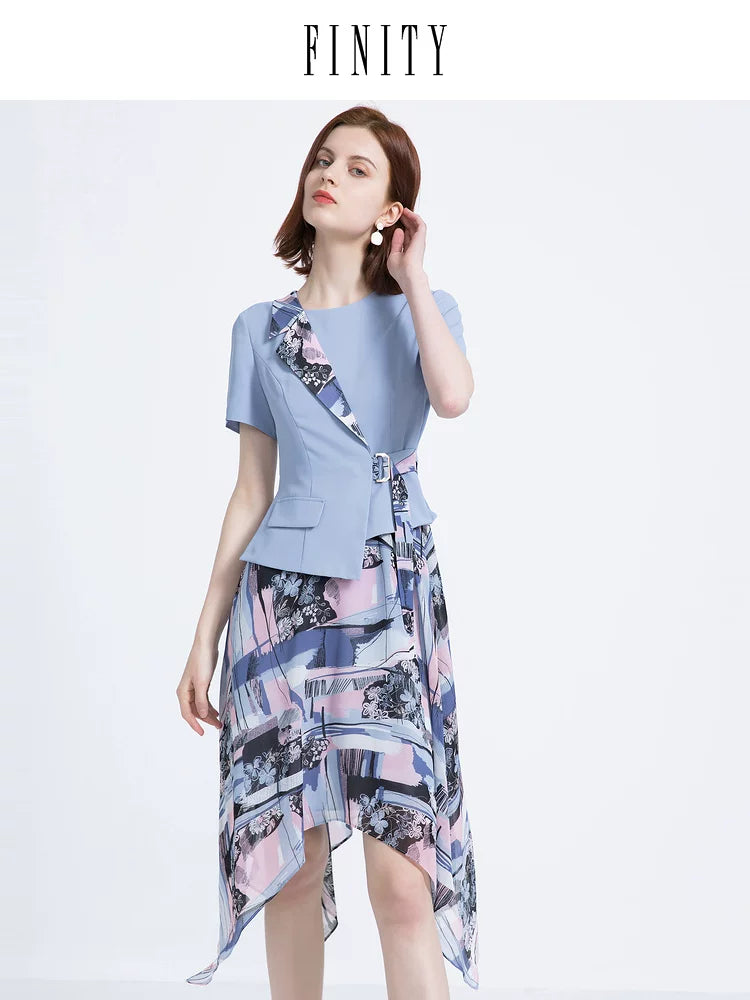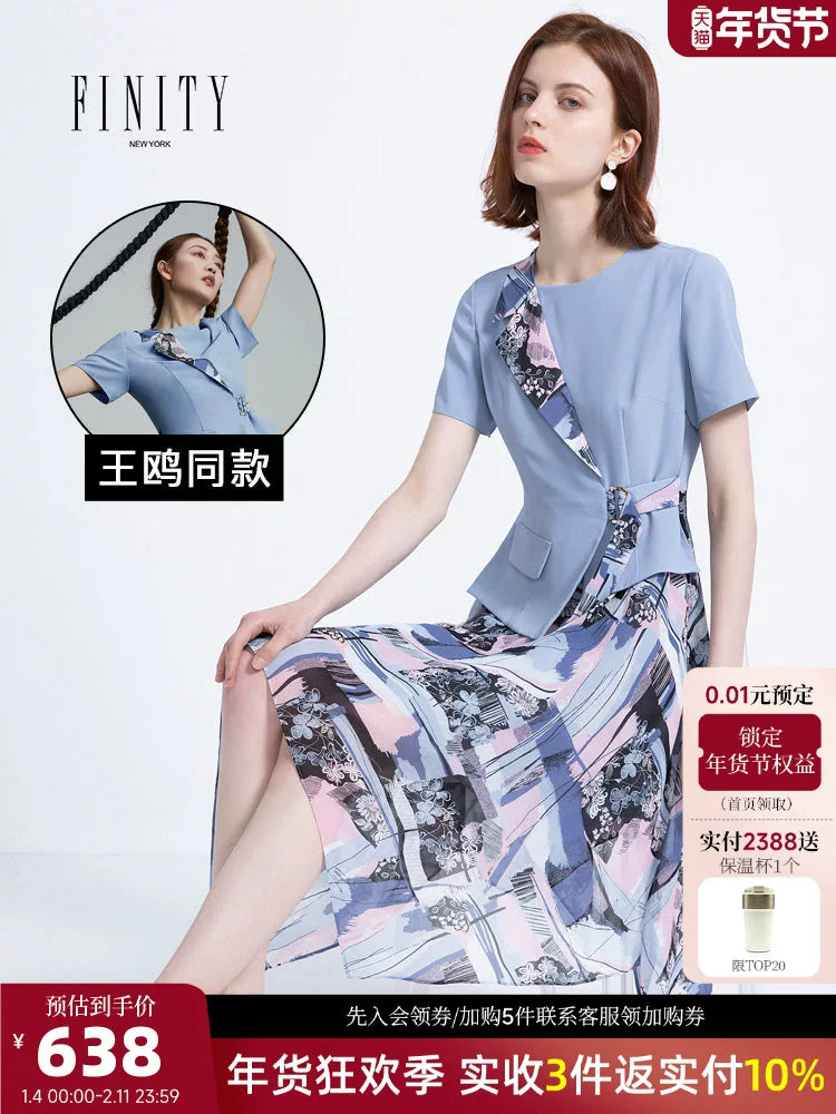 FINITY Erkən Yaz Qadınlar üçün Yeni QısaQollu Süni İki Hissəli Don, Dəbli və Zərif Uzun Don