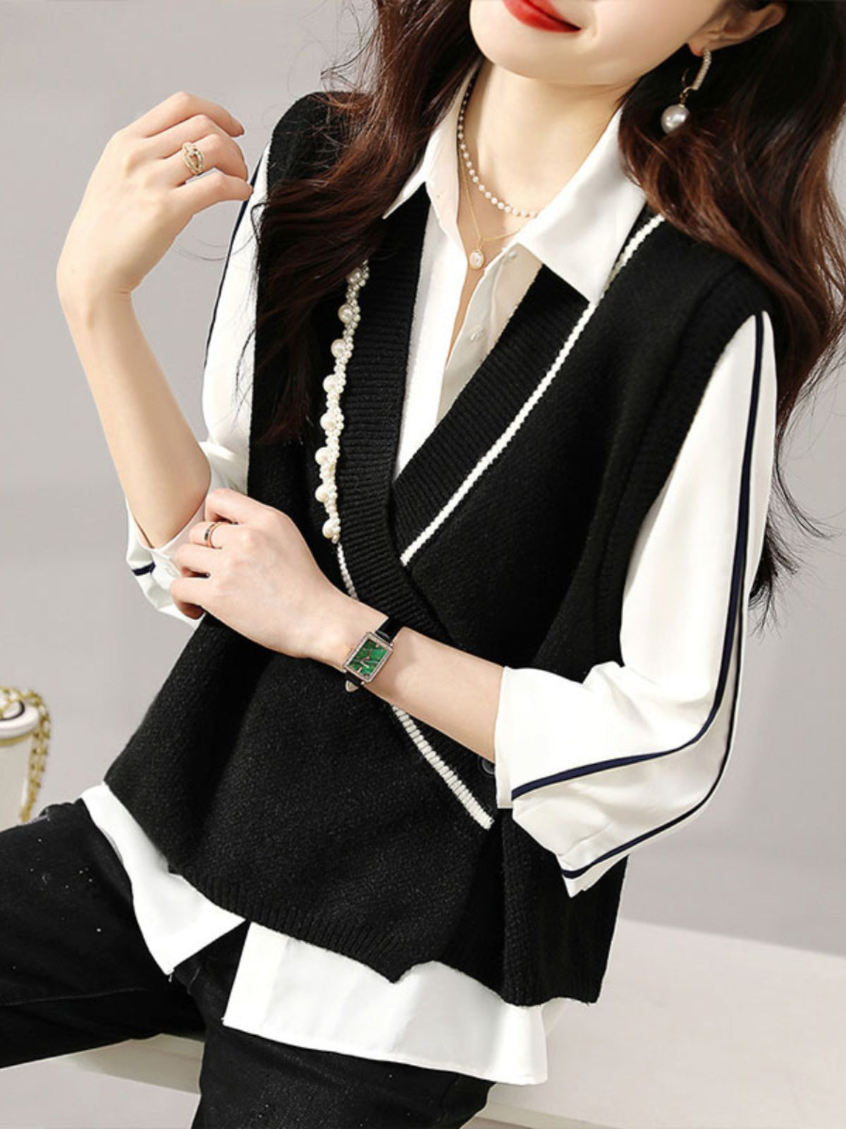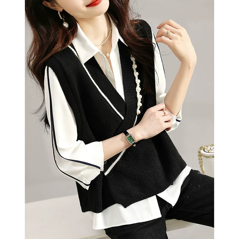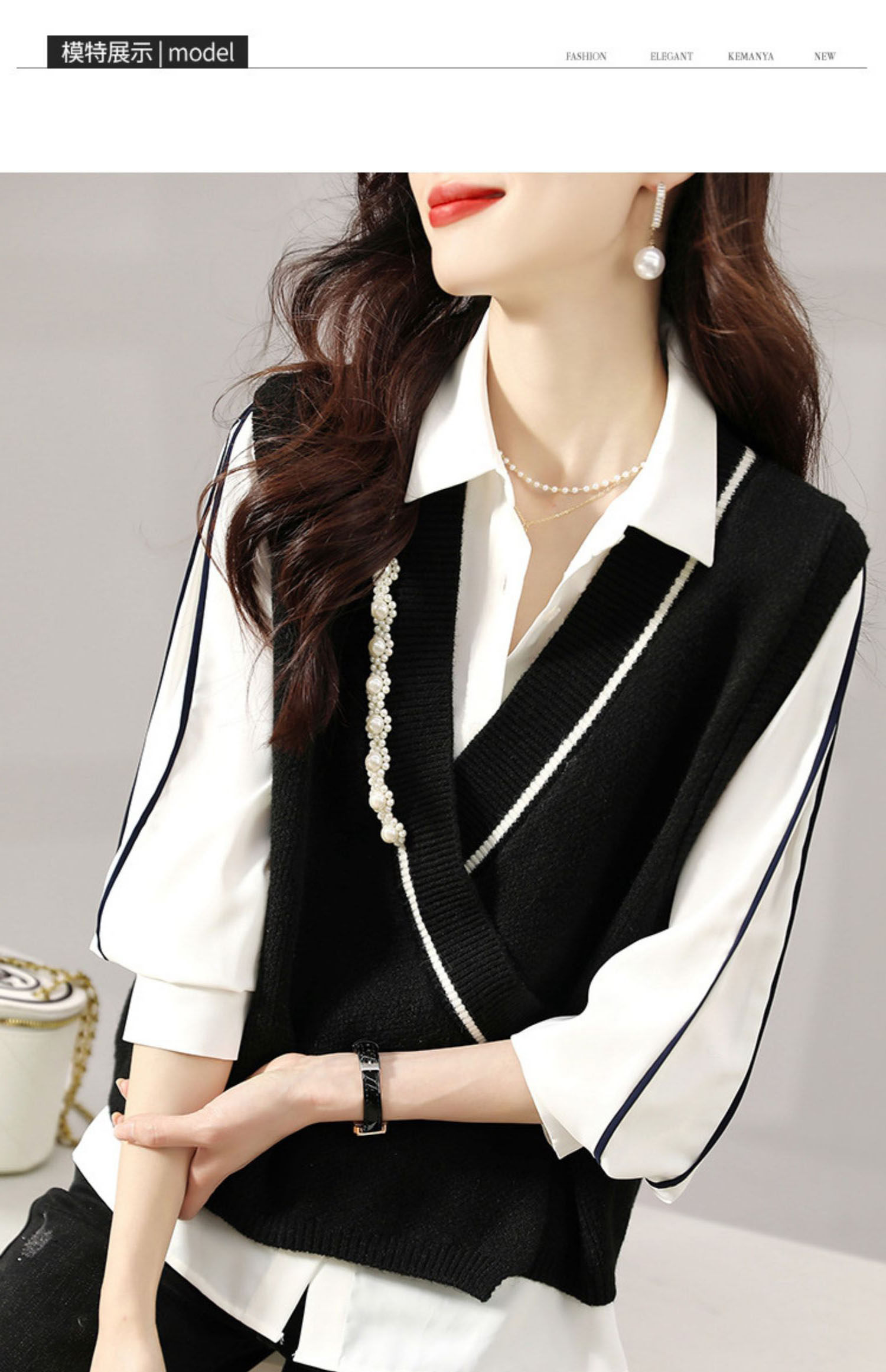 Fransız overstock qadın geyimləri, yüksək səviyyəli brend endirimləri, orijinal overstock, geniş yamaqlı jilet, V-yaxalı toxunma jilet.