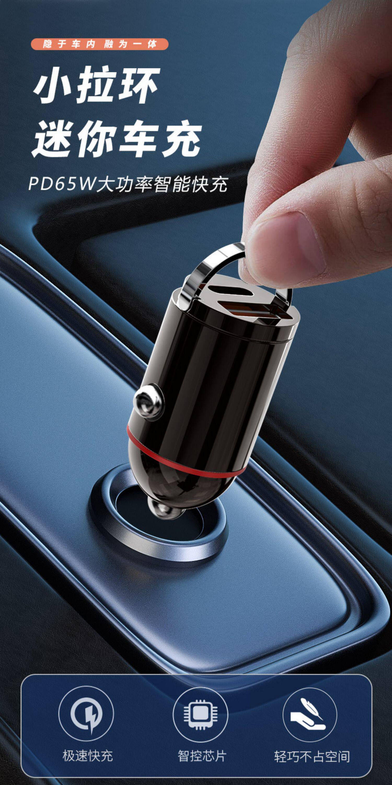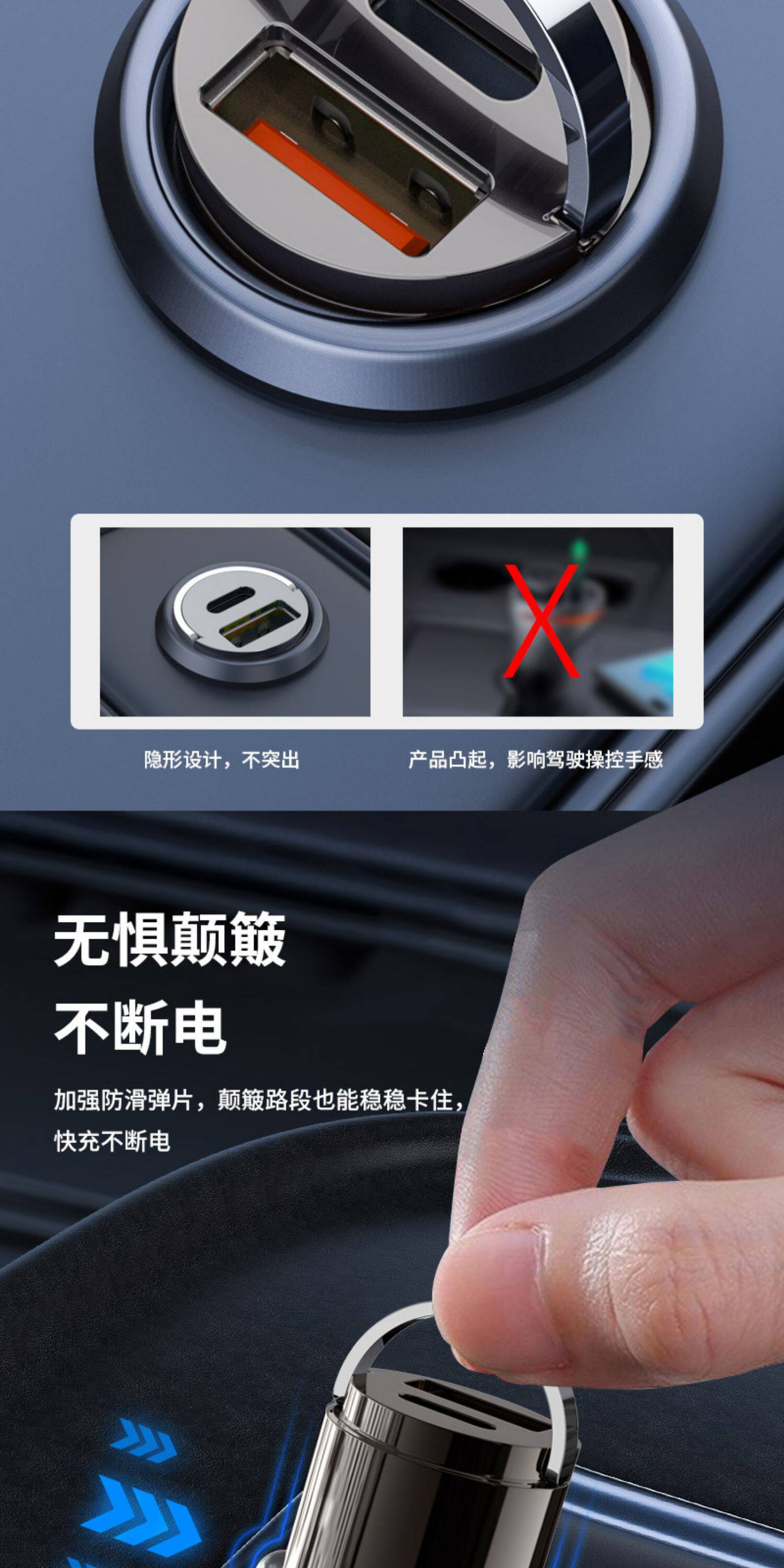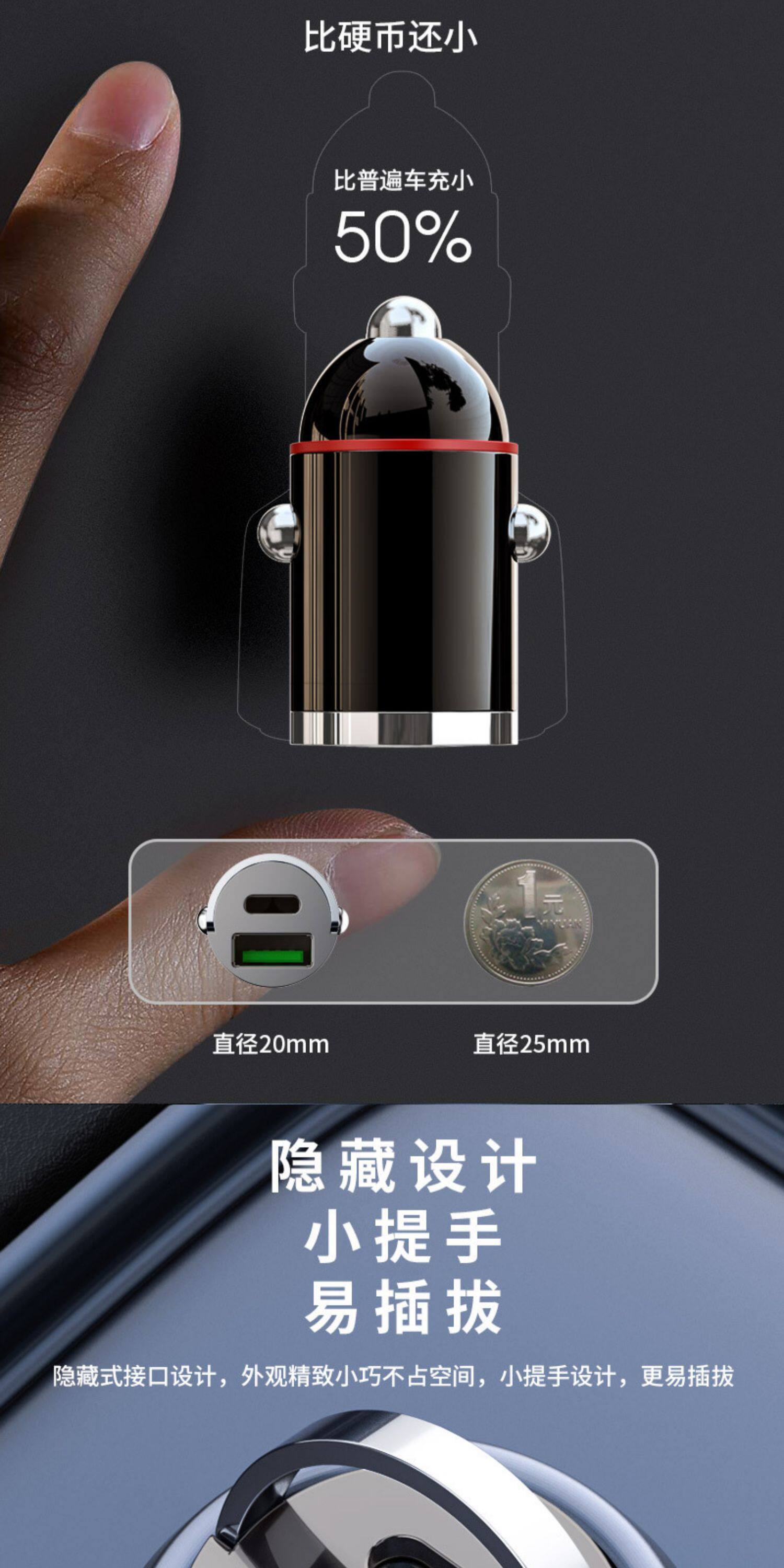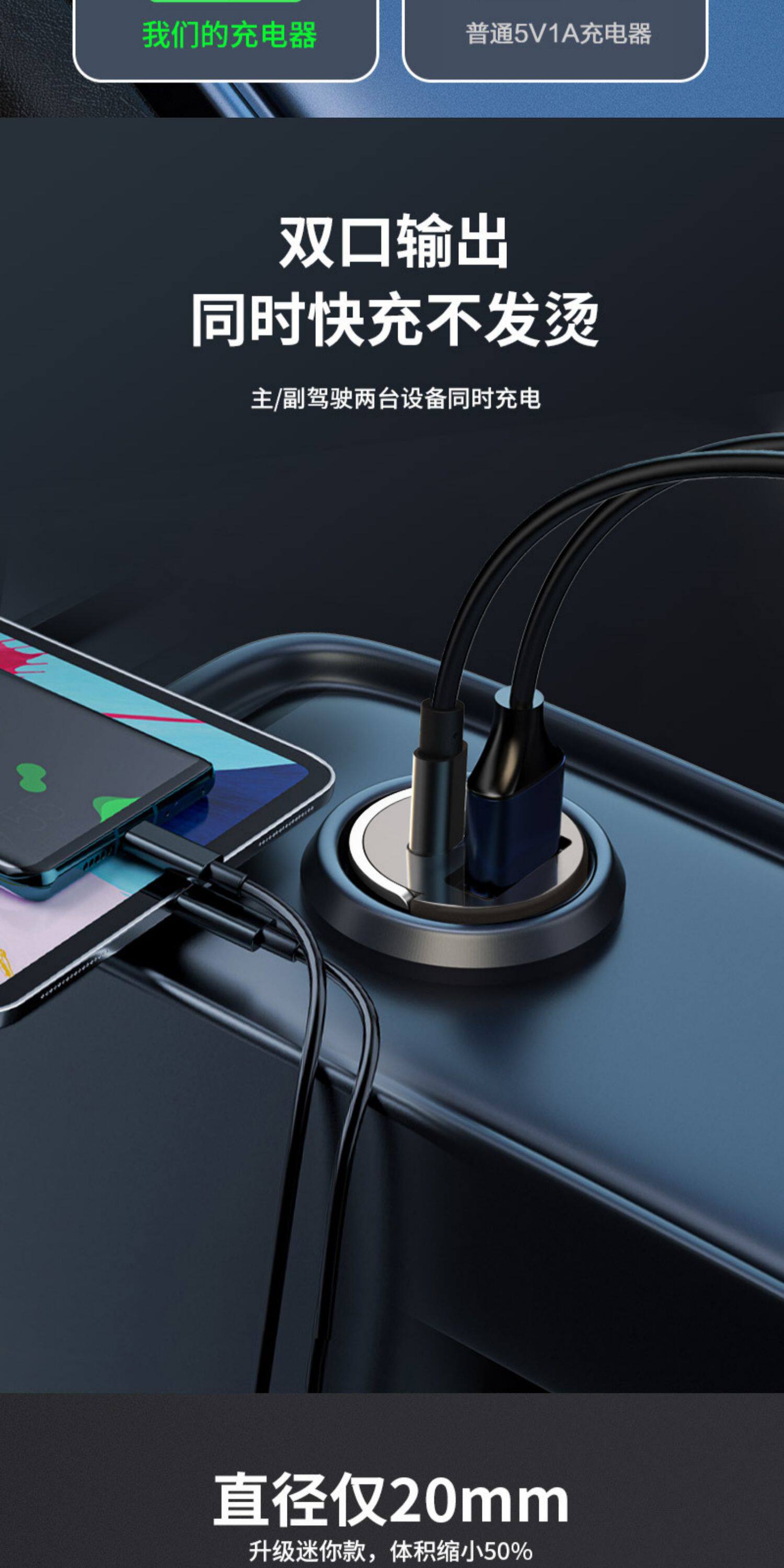 Gizli Avtomobil Şarj Cihazı 120W Super Sürətli Şarj Başlığı, Fləş Şarj üçün Görünməz Avtomobil Siqaret Çaxmağı Mini Adapteri