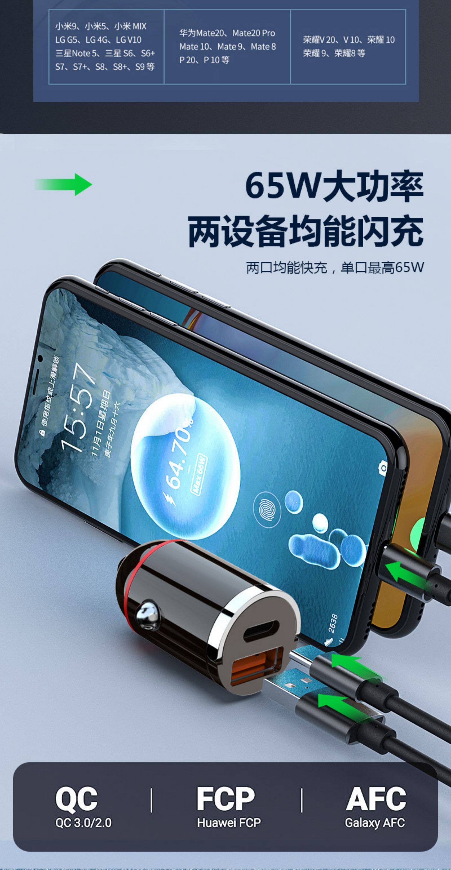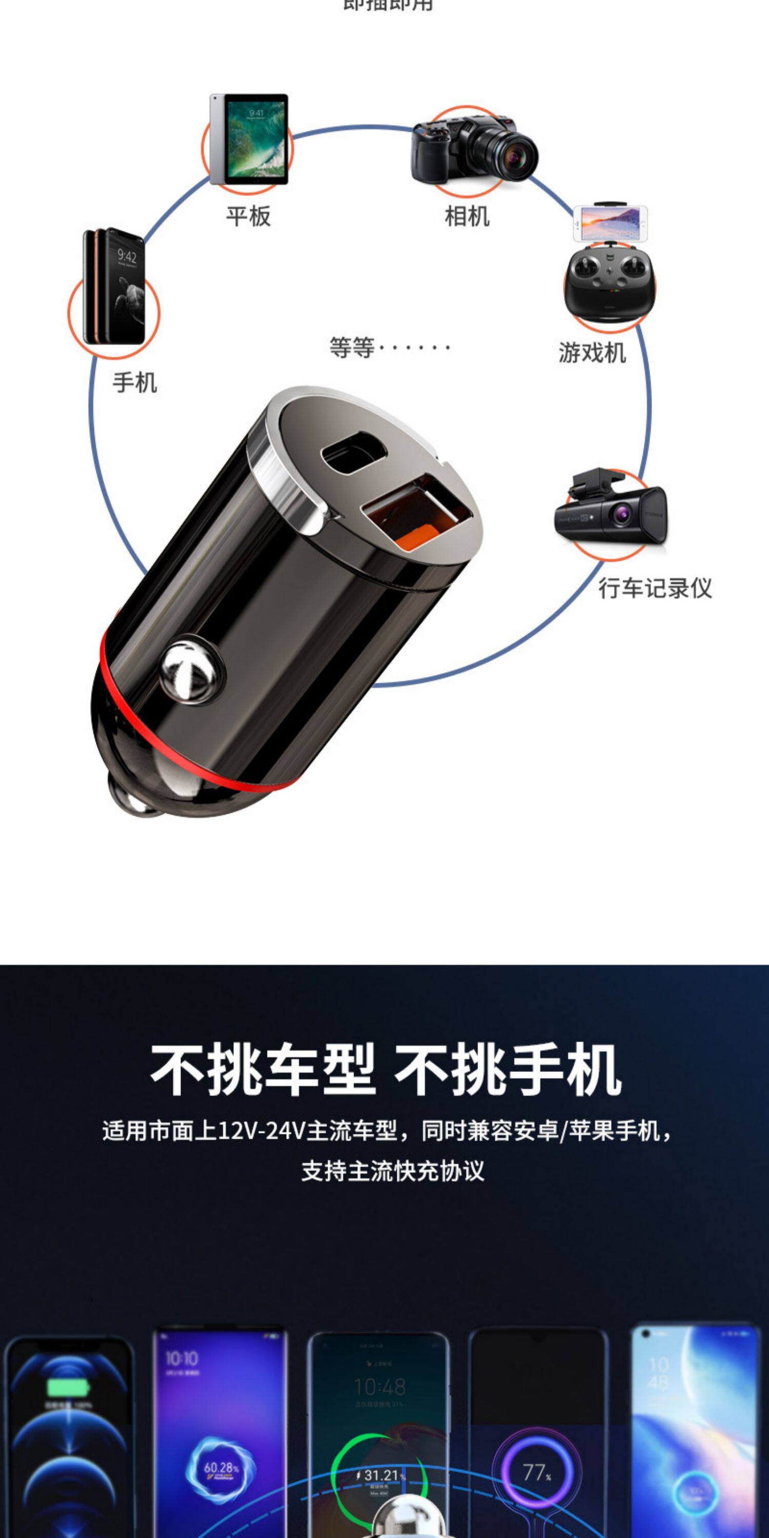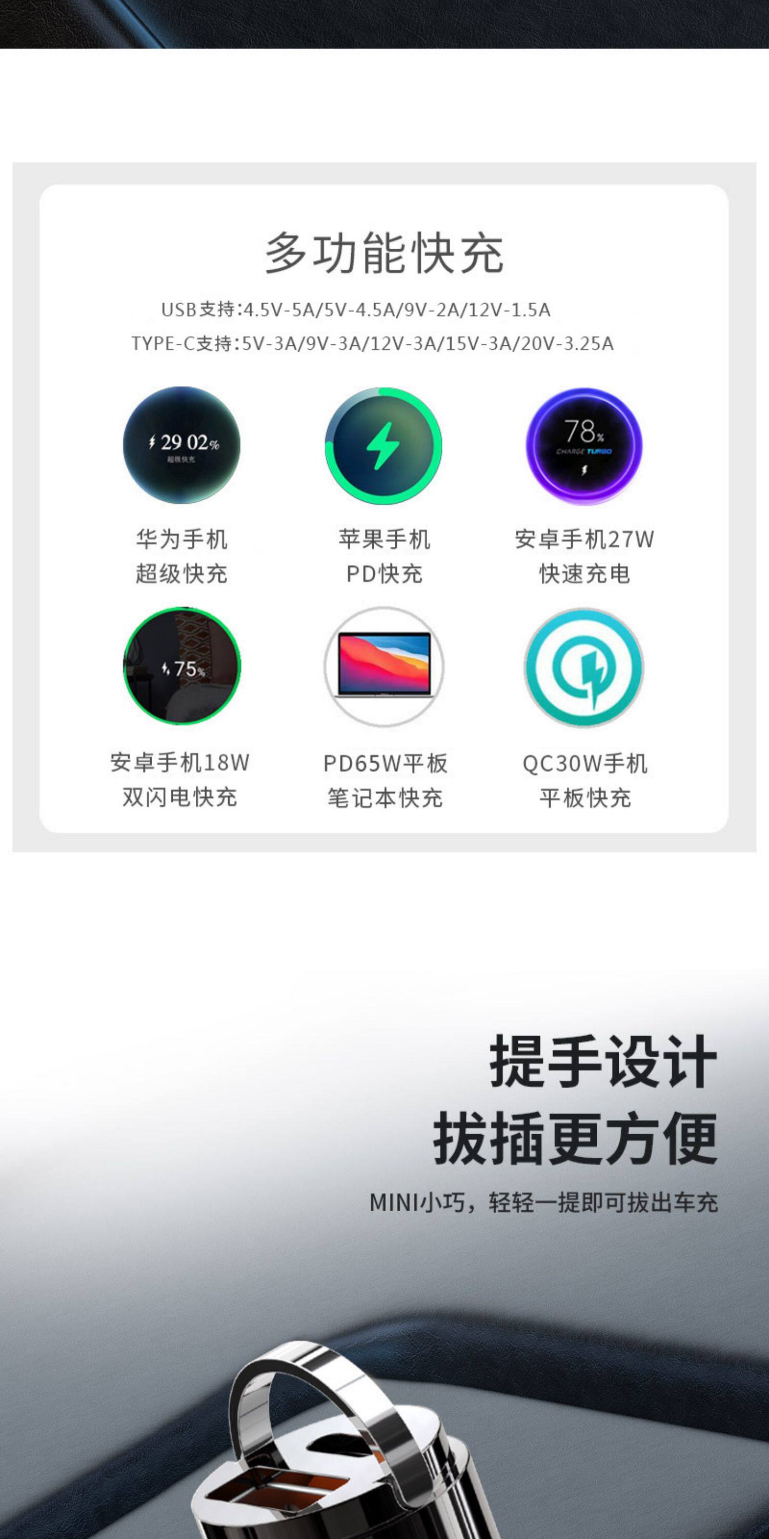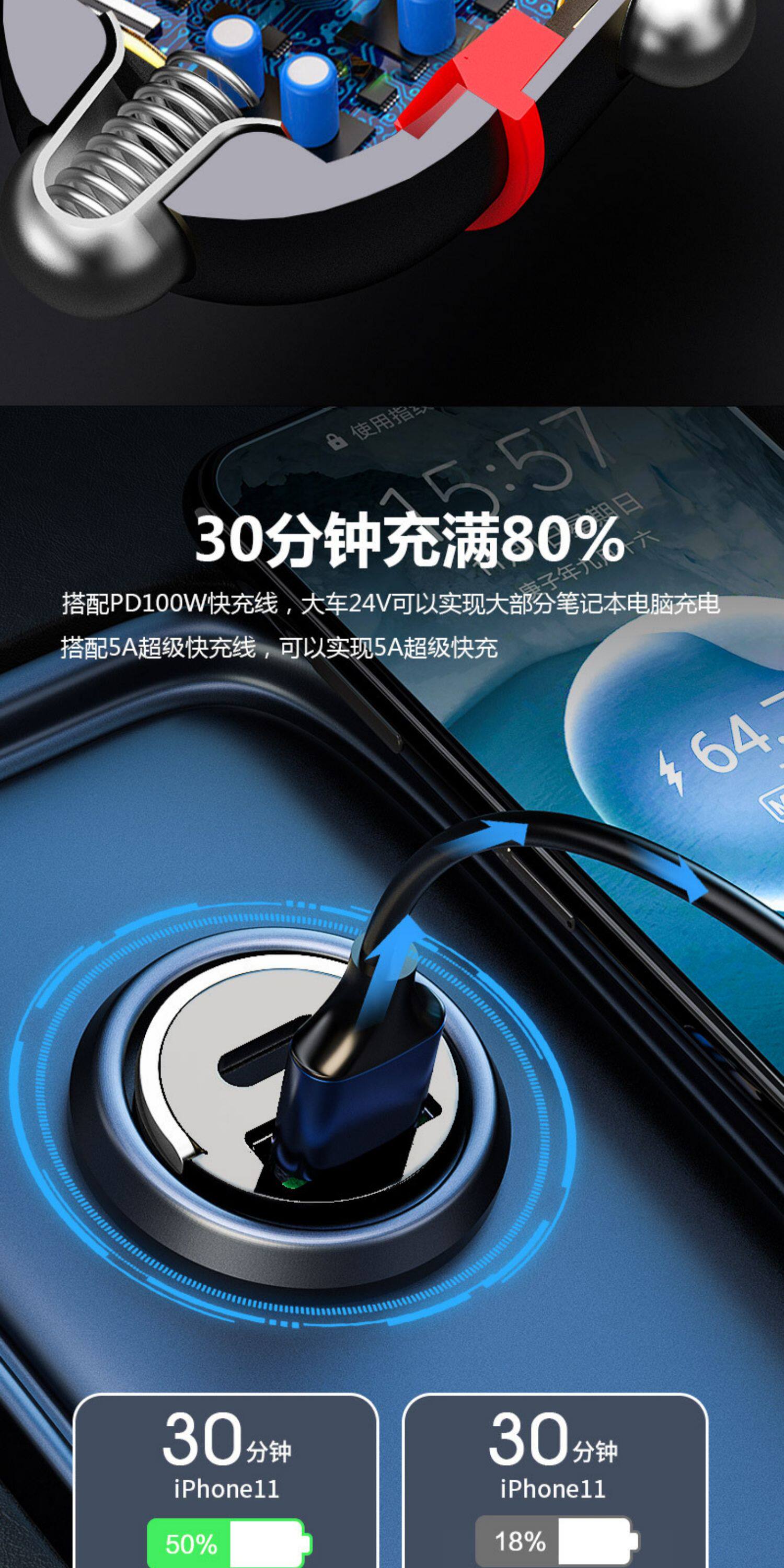 Gizli Avtomobil Şarj Cihazı 120W Super Sürətli Şarj Başlığı, Fləş Şarj üçün Görünməz Avtomobil Siqaret Çaxmağı Mini Adapteri