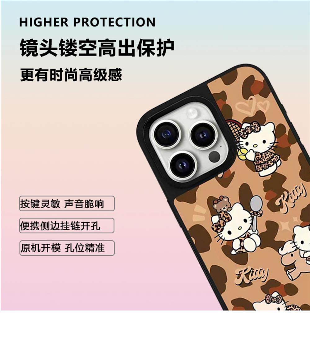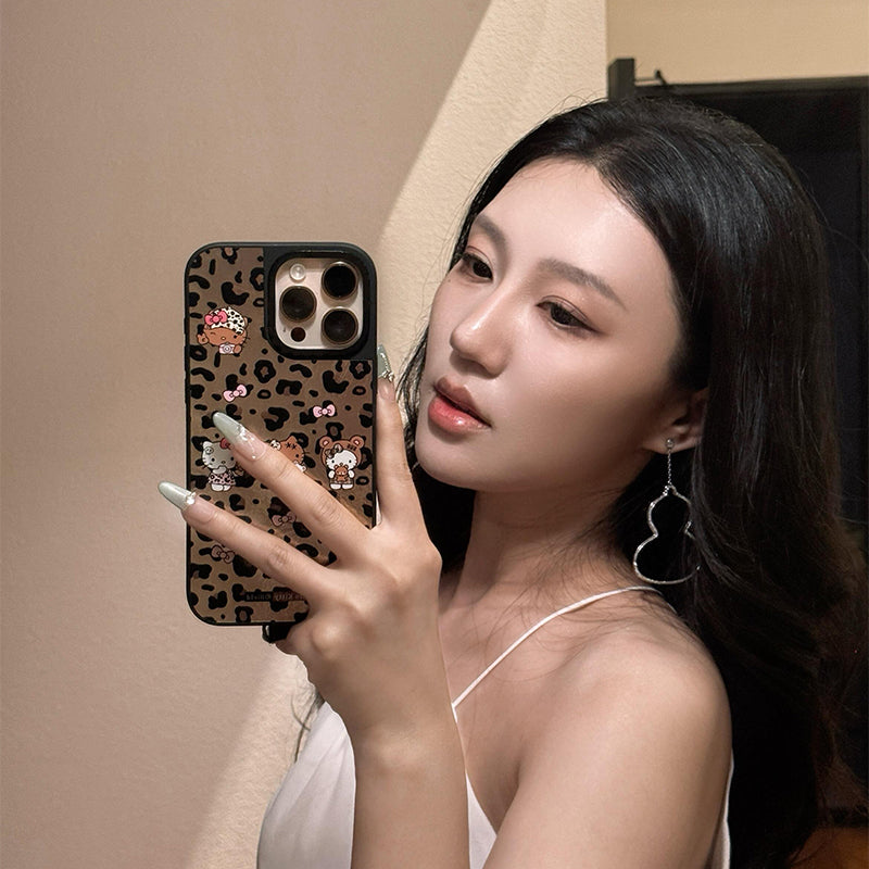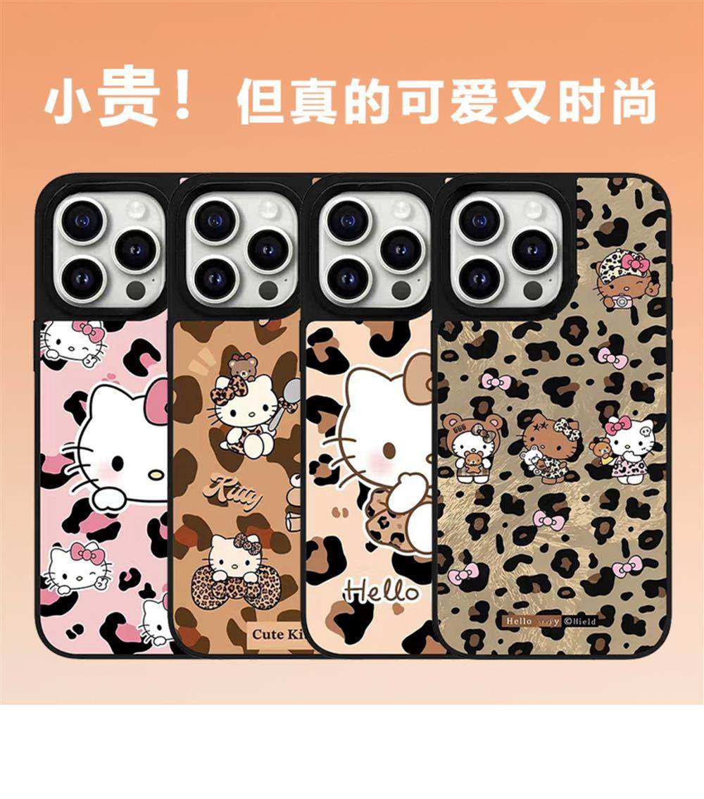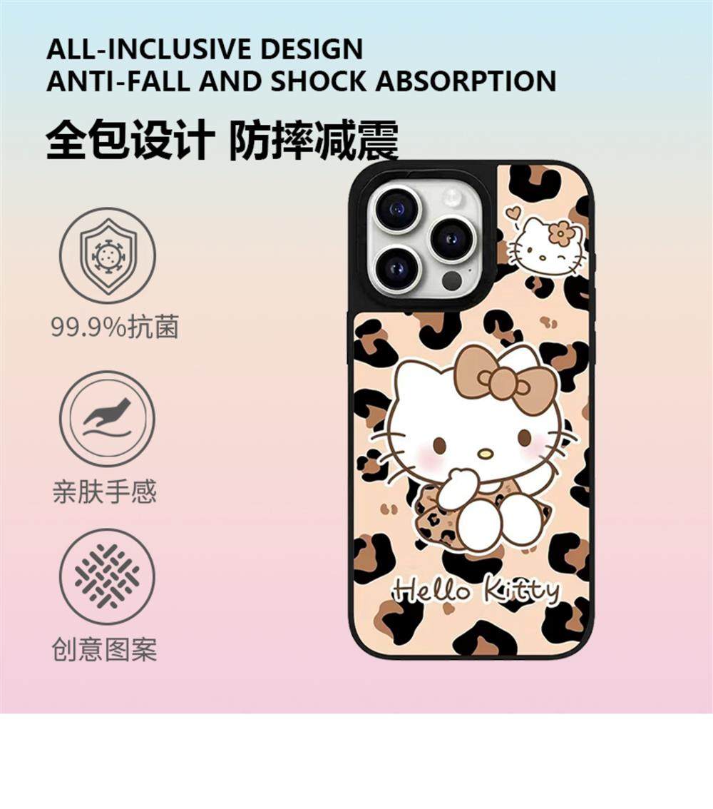 | iPhone 17 Air, 16 Pro Max və 15/14/13/12 seriyaları ilə eyni stildə olan Apple iPhone-ları üçün fərdiləşdirilmiş çəhrayı leopard naxışlı Hello Kitty güzgü maqnit qutusu.