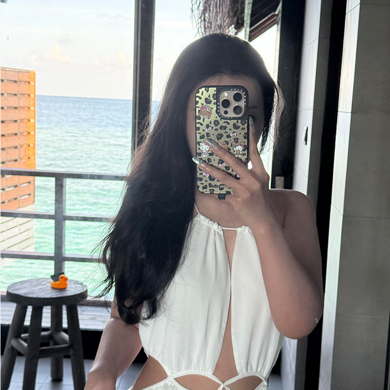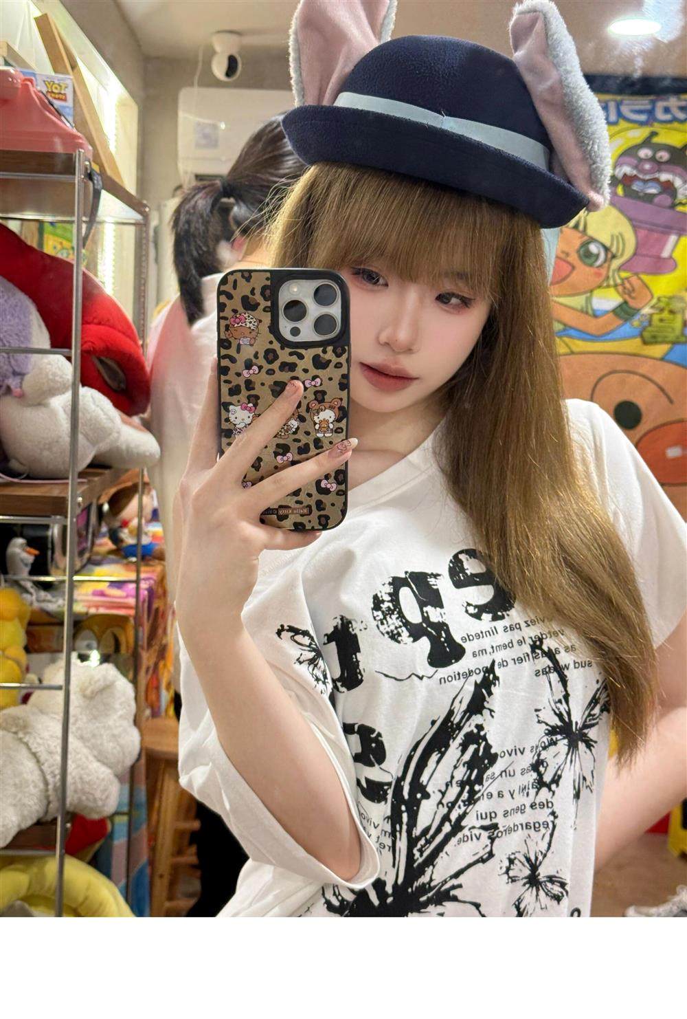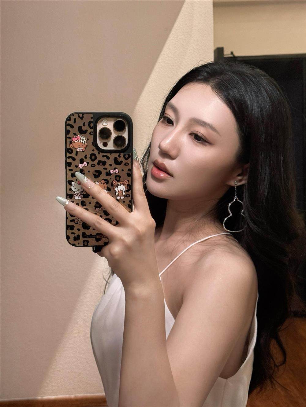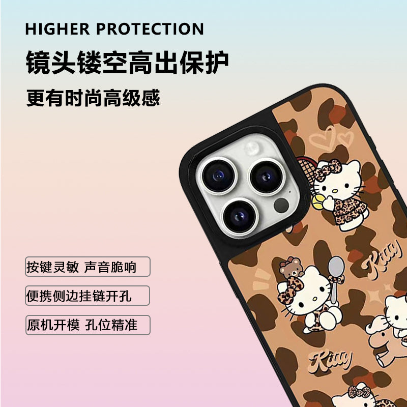 | iPhone 17 Air, 16 Pro Max və 15/14/13/12 seriyaları ilə eyni stildə olan Apple iPhone-ları üçün fərdiləşdirilmiş çəhrayı leopard naxışlı Hello Kitty güzgü maqnit qutusu.