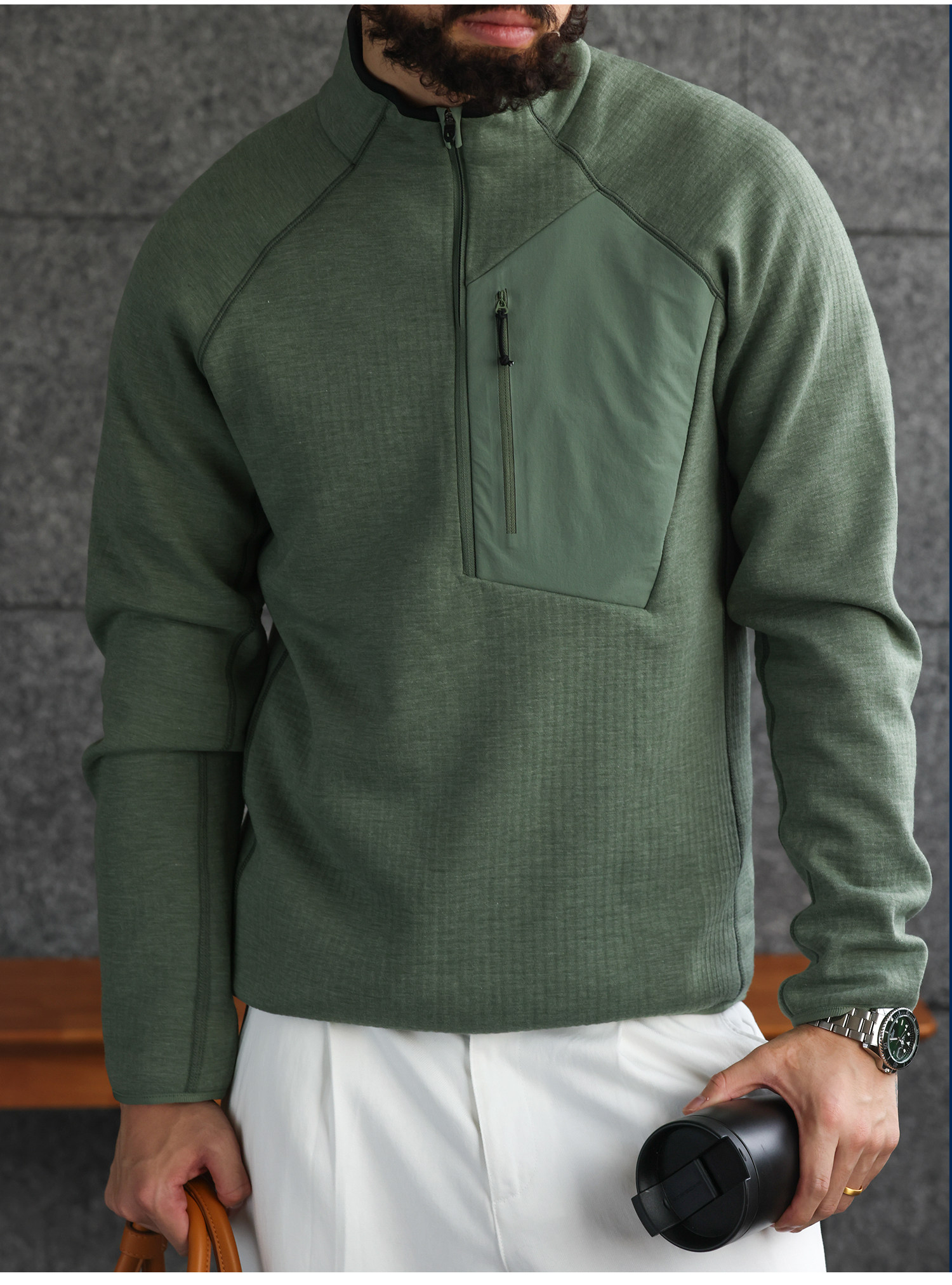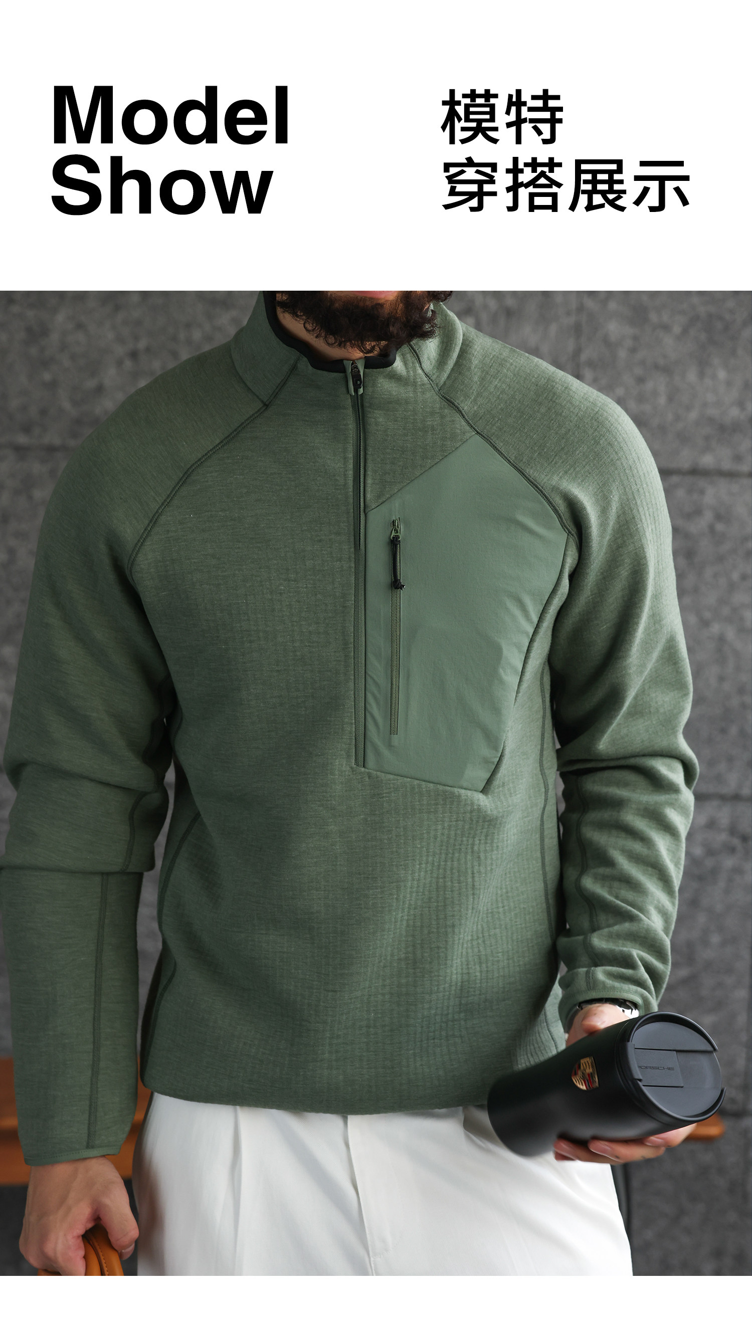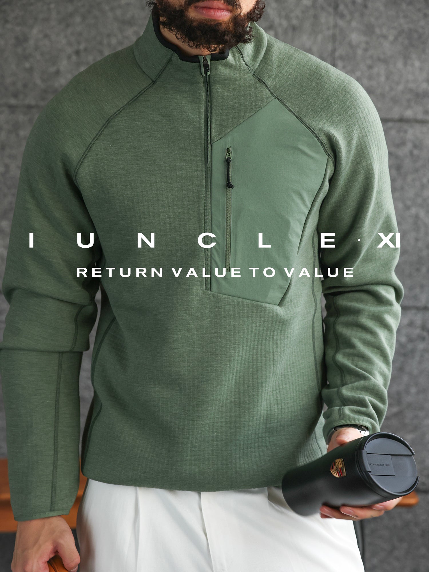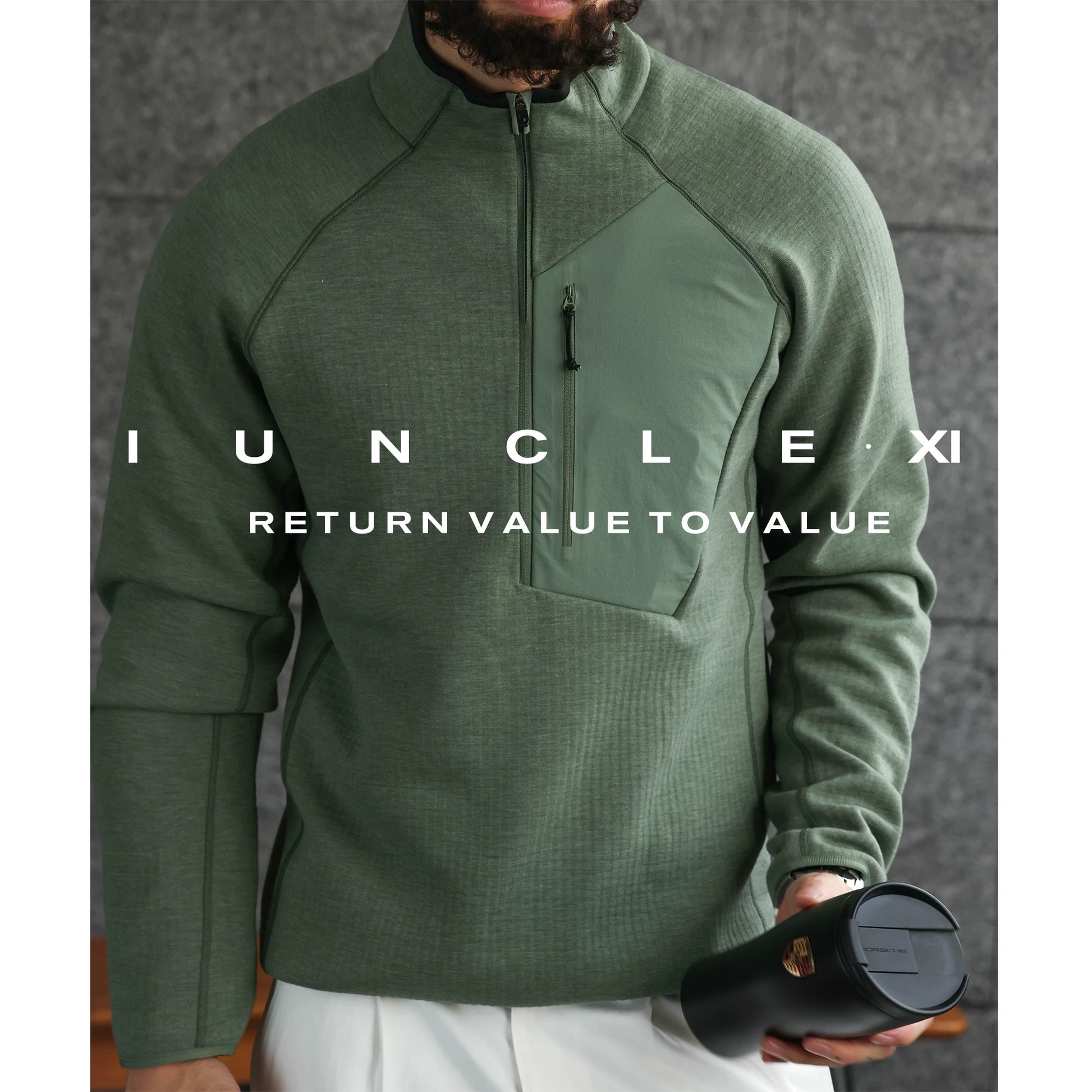 IUNCLEXI [Sərhədsiz Stil] Kişilər üçün İsti Flis Yaxalıqlı Fitnes İdman Yarım Fermuarlı Uzun Qollu Sviter, Payız və Qış İstiliyi