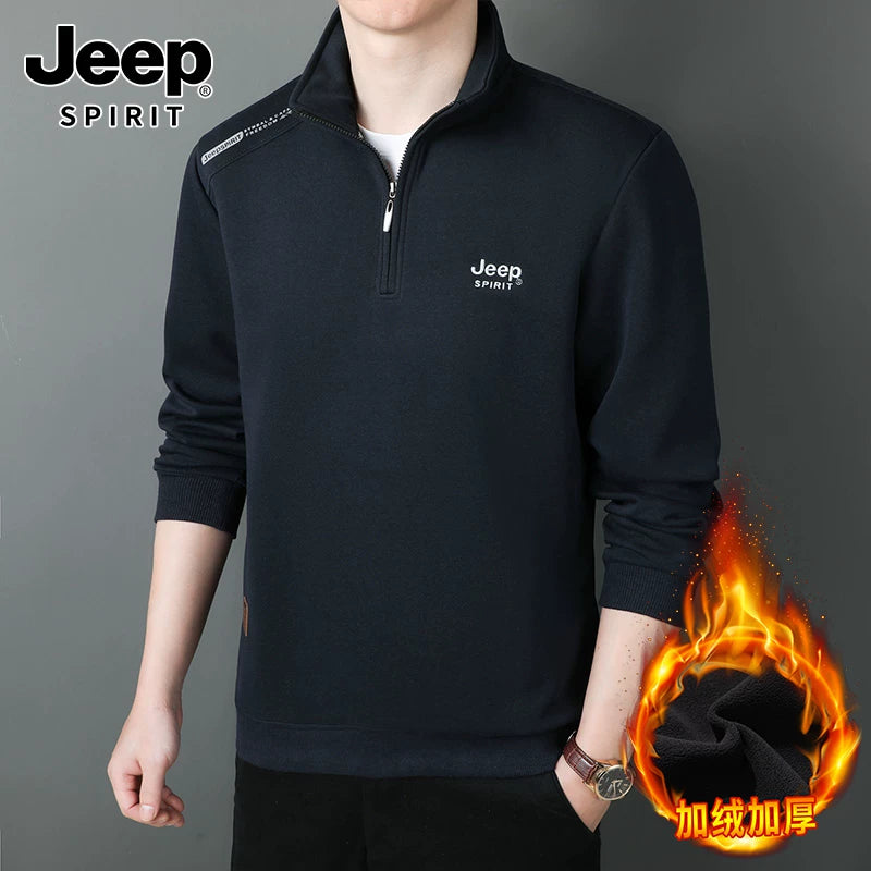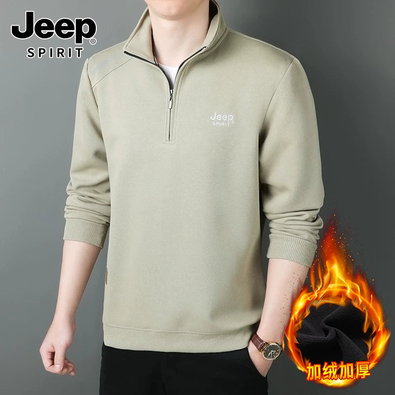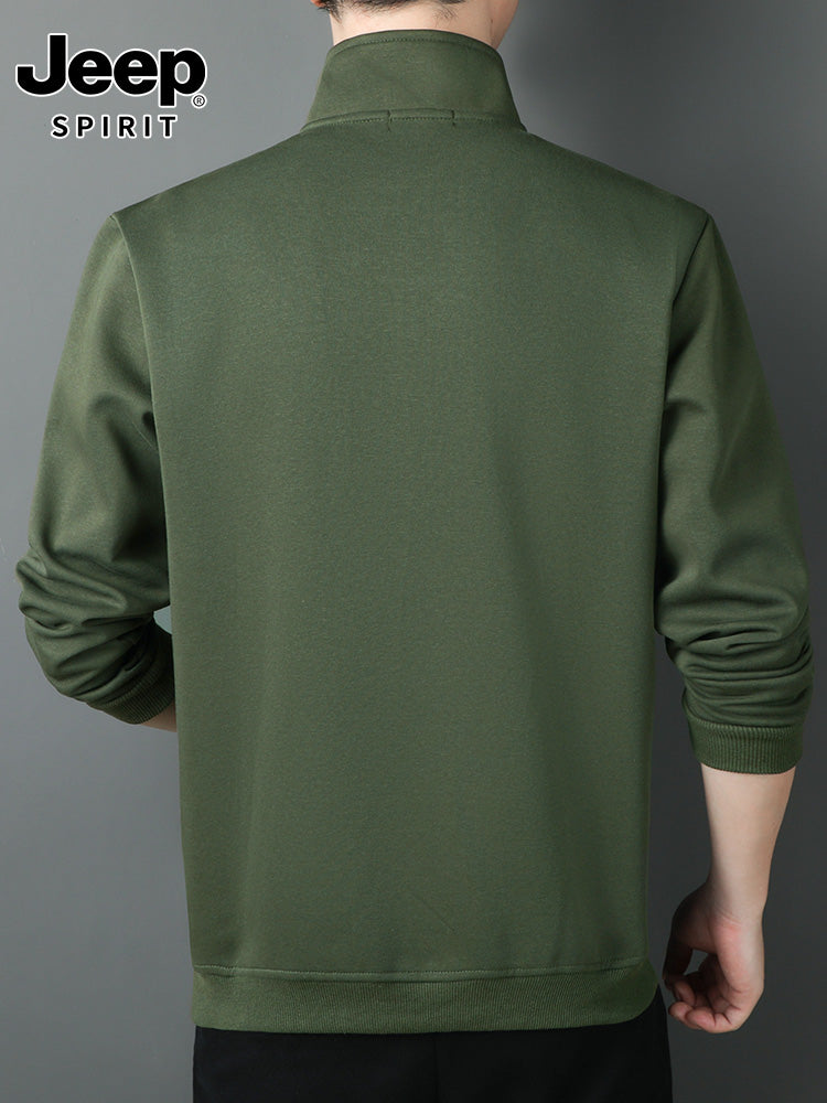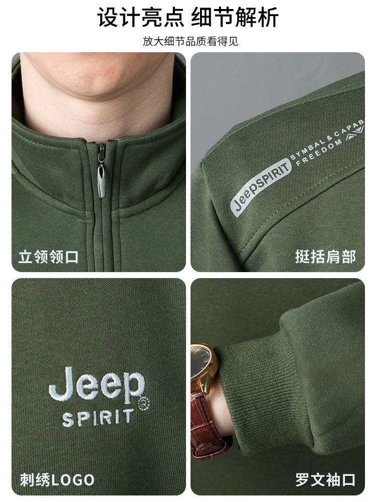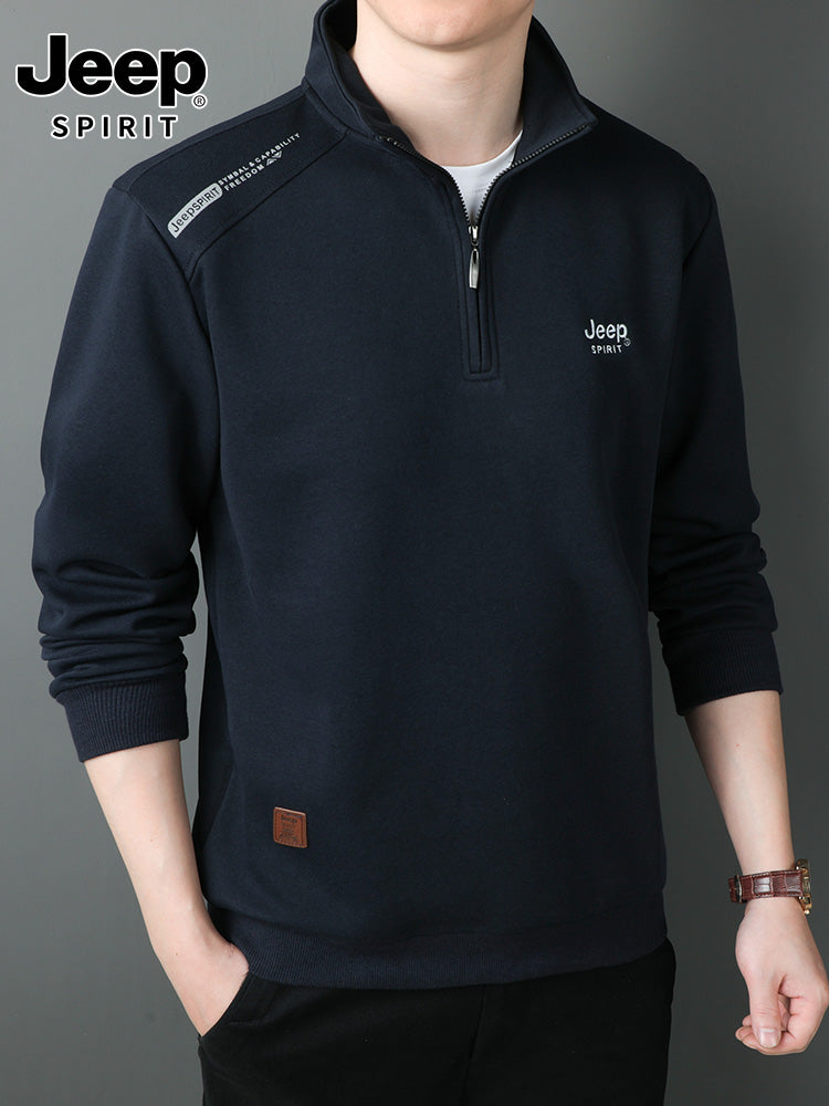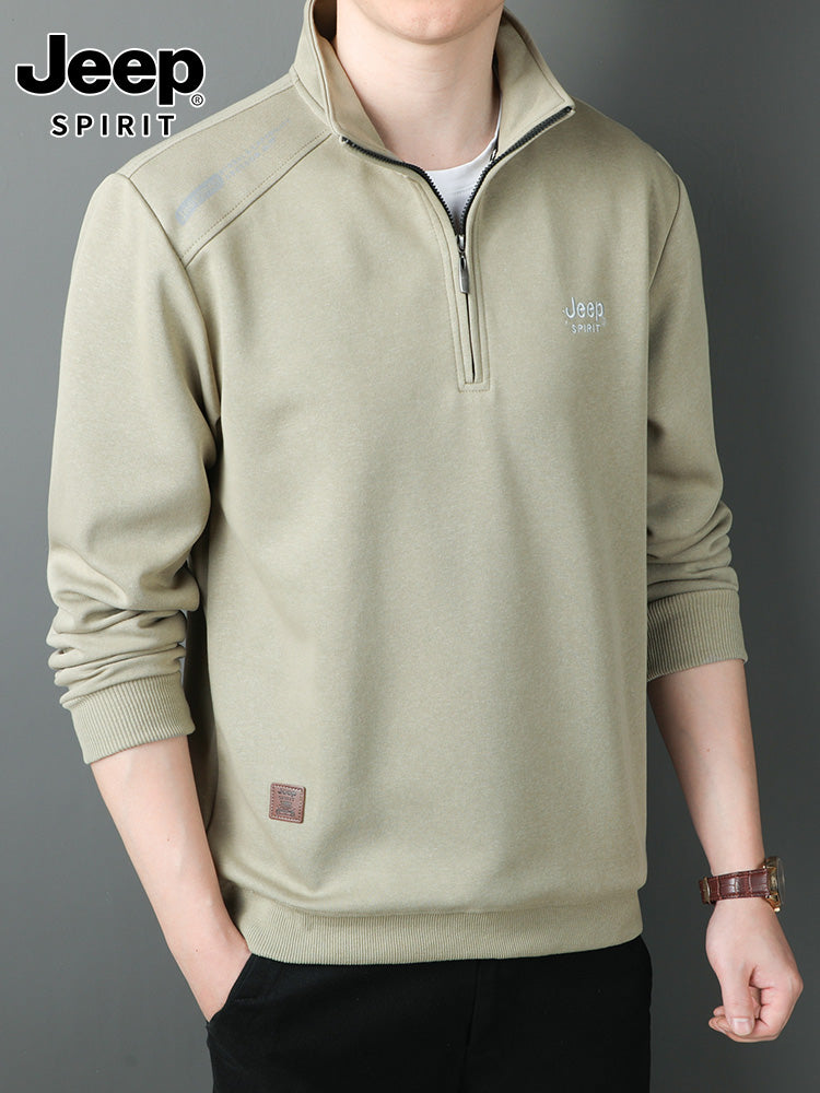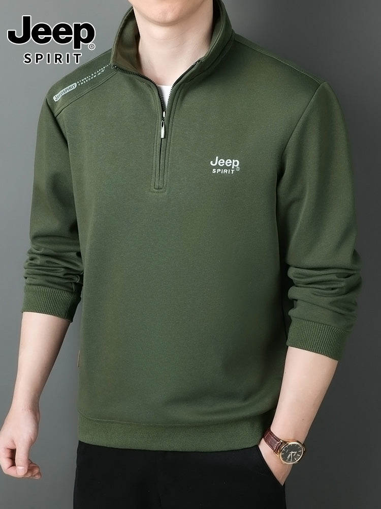 JEEP 2025 Payız Kişi Sviteri, Boş Forma, Dayaqlı Yaxalıq, Uzun Qol, Əsas Qat, Yarım Fermuarlı Top