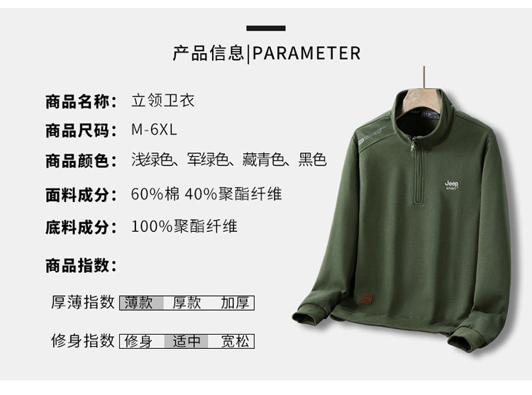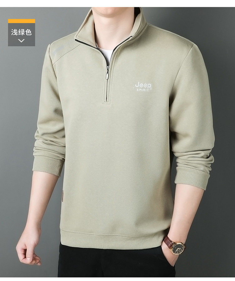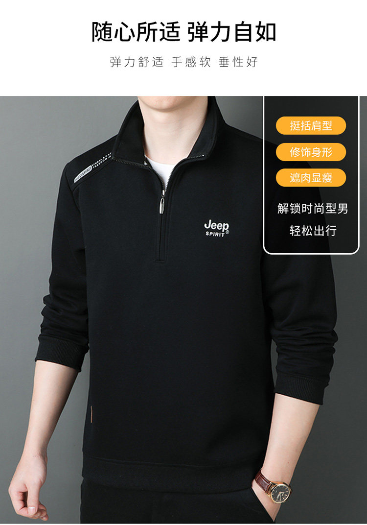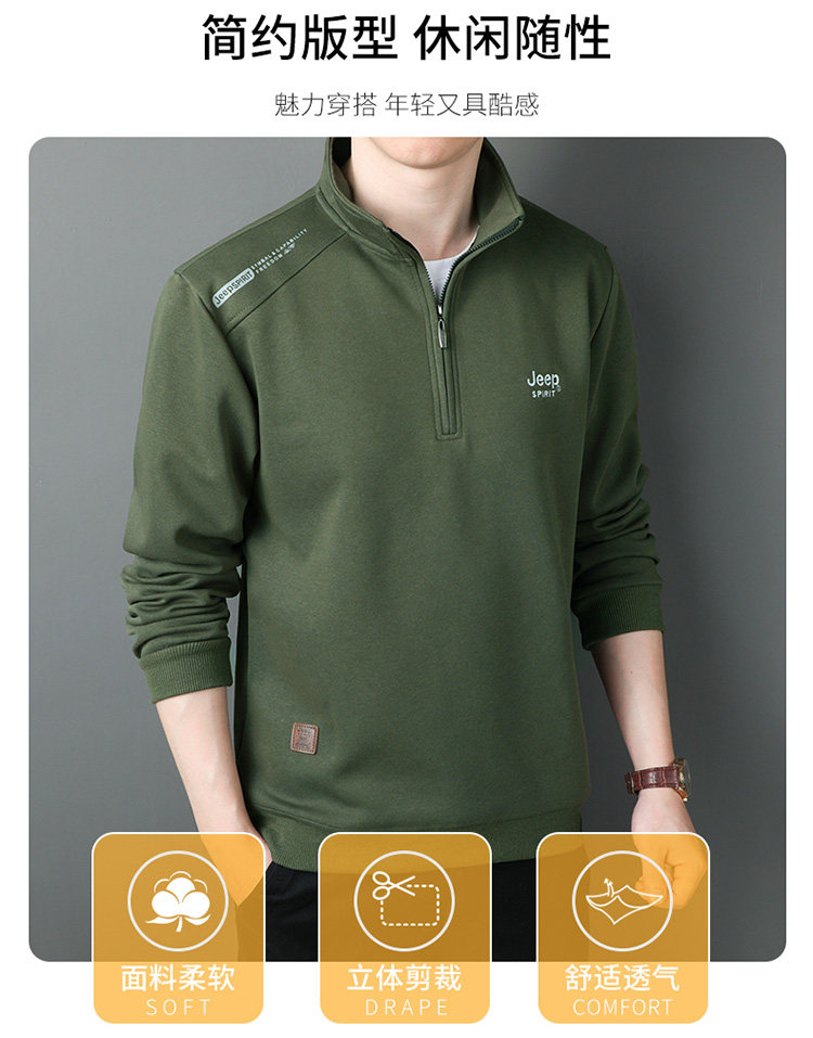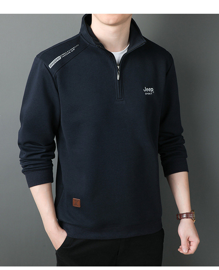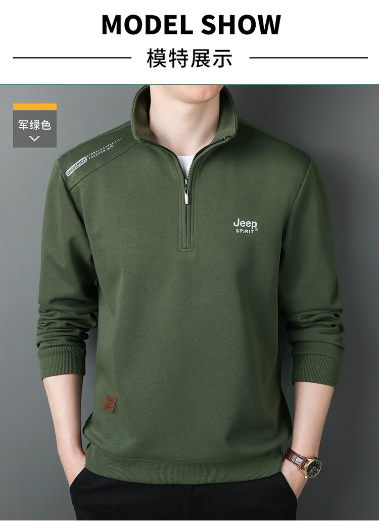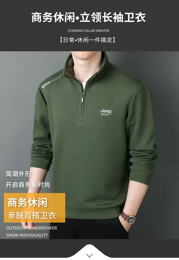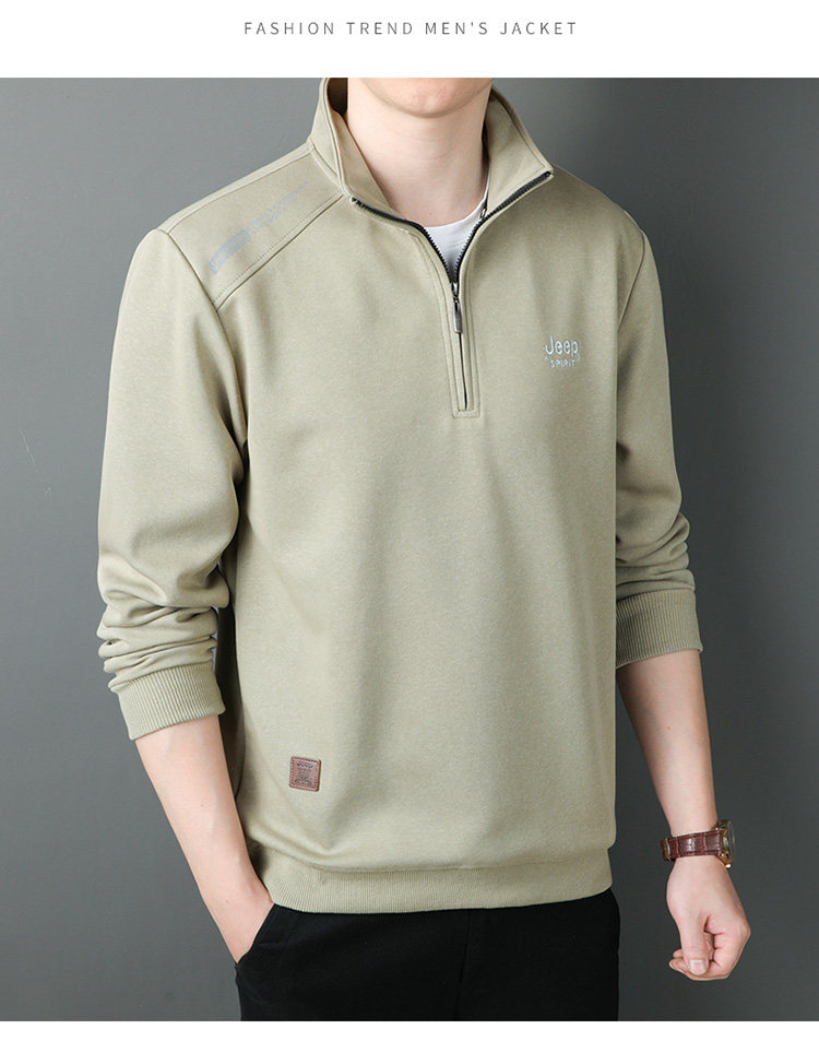 JEEP 2025 Payız Kişi Sviteri, Boş Forma, Dayaqlı Yaxalıq, Uzun Qol, Əsas Qat, Yarım Fermuarlı Top
