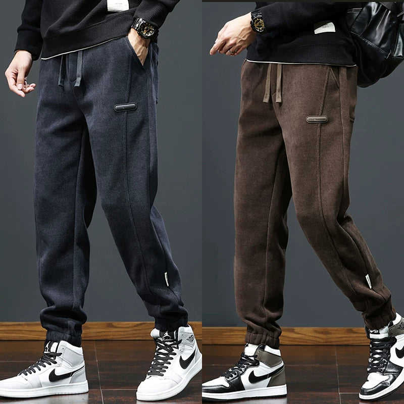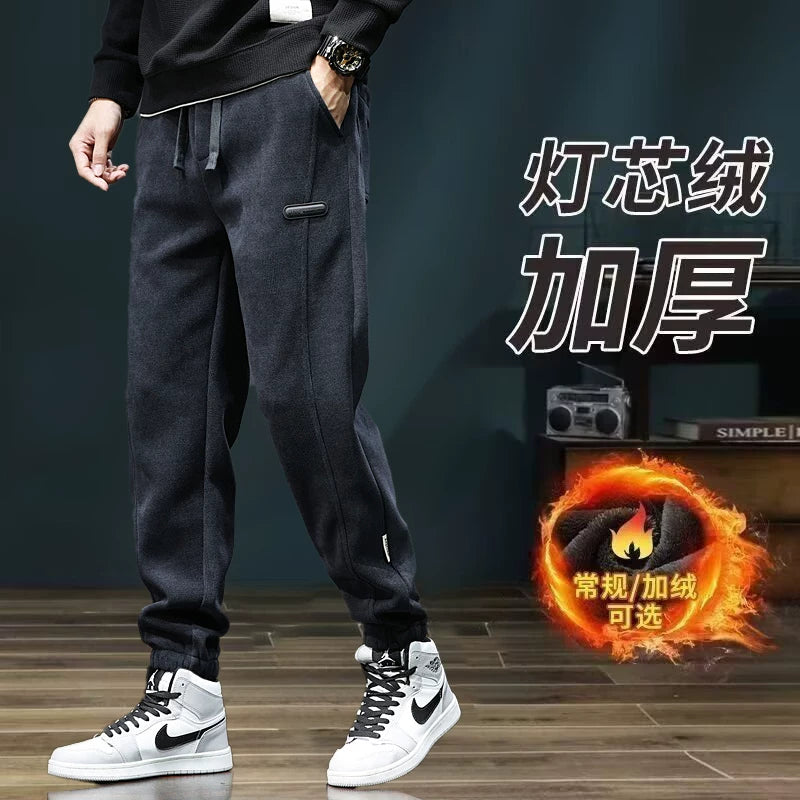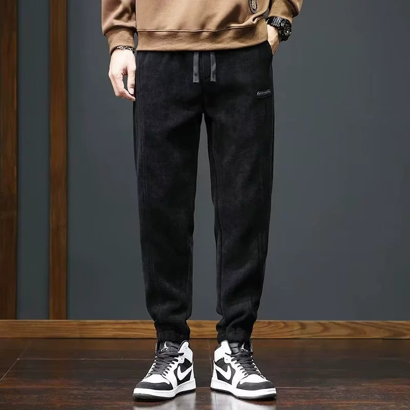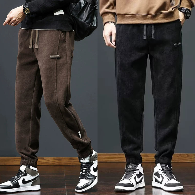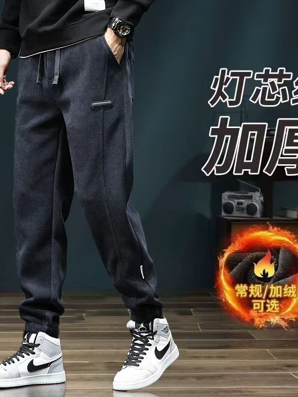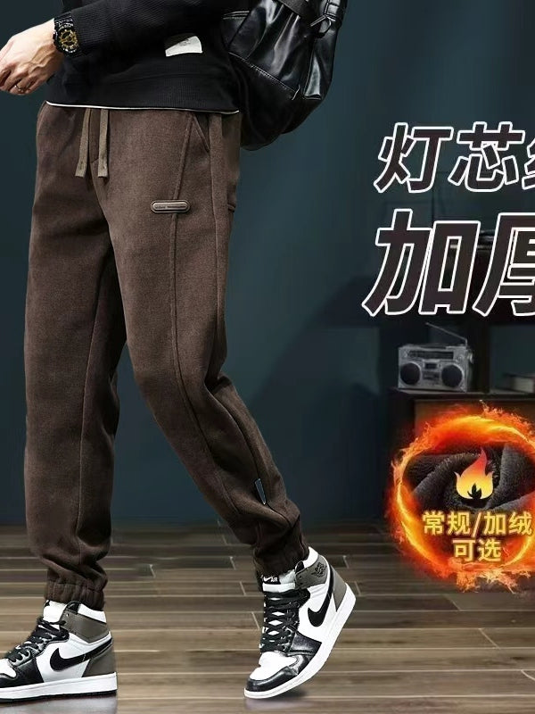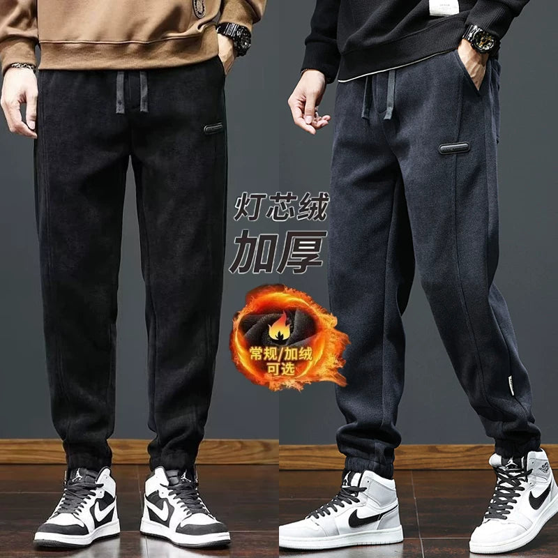 Kişilər üçün 2025-ci ilin yaz və payız şalvarları Yeni Stil, Yun astarlı məxmər gündəlik şalvarlar, Boş Fit, İdman şalvarları, Uzun şalvarlar, Dəbli