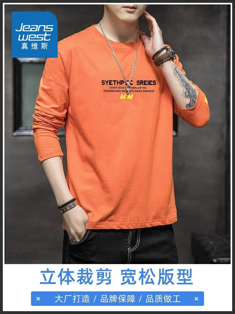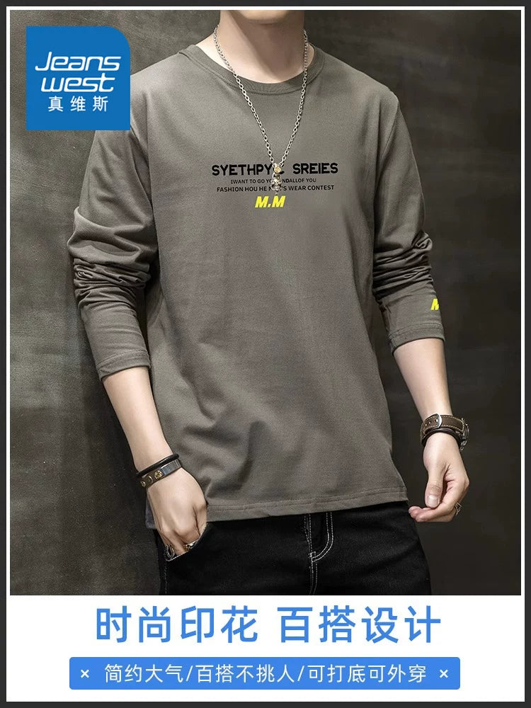Kişilər üçün Jeanswest uzunqol köynək, 2025-ci ilin yaz və payız mövsümü, dəbli, boş və naxışlı gündəlik alt qat, nəfəs alan təmiz pambıq üst hissə.