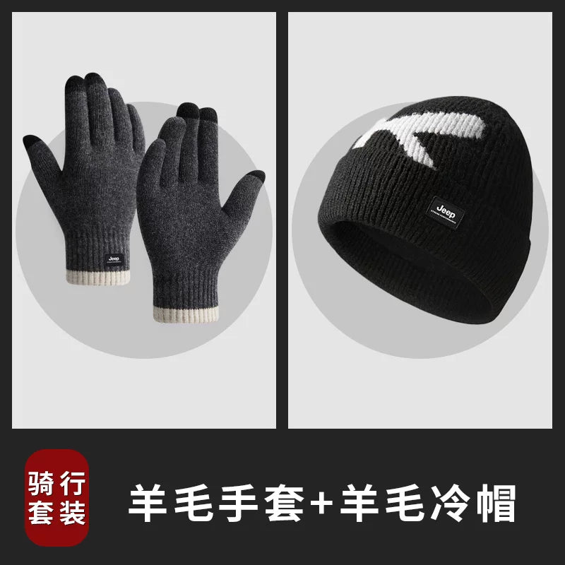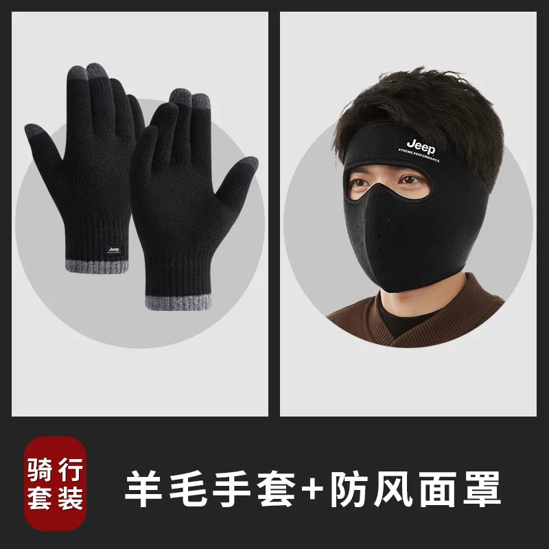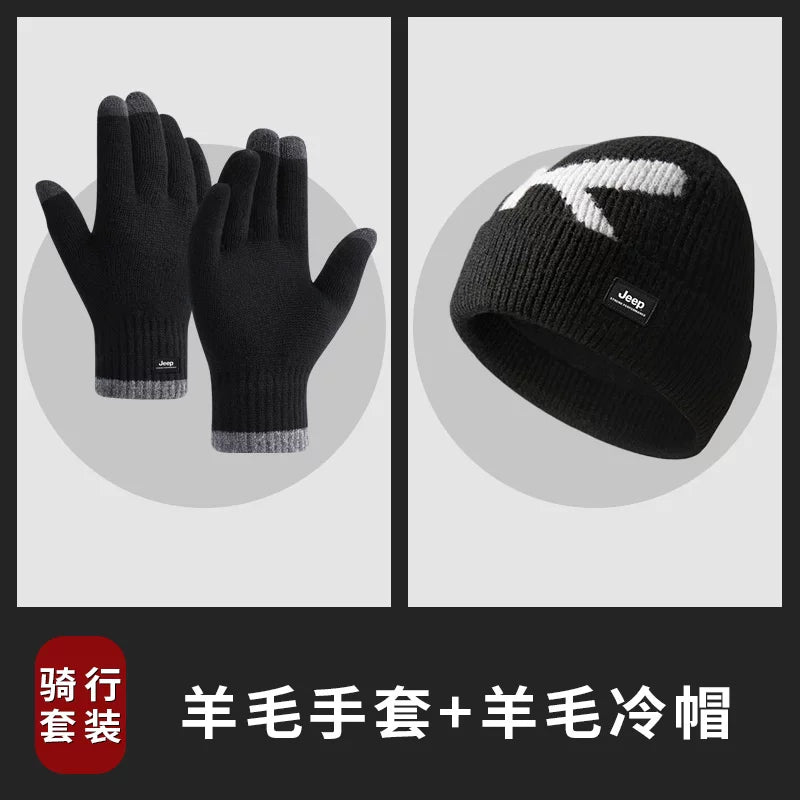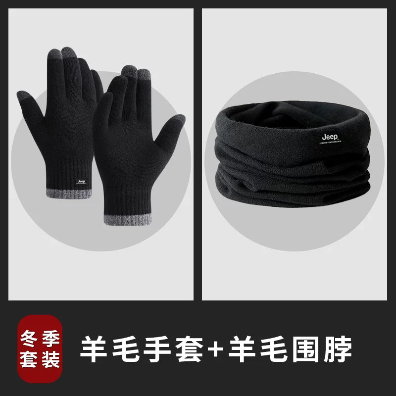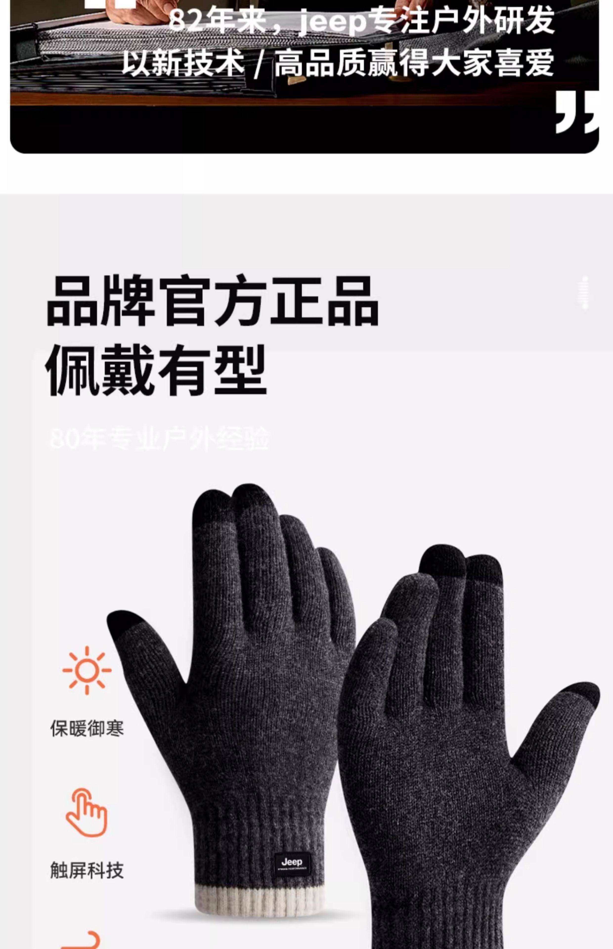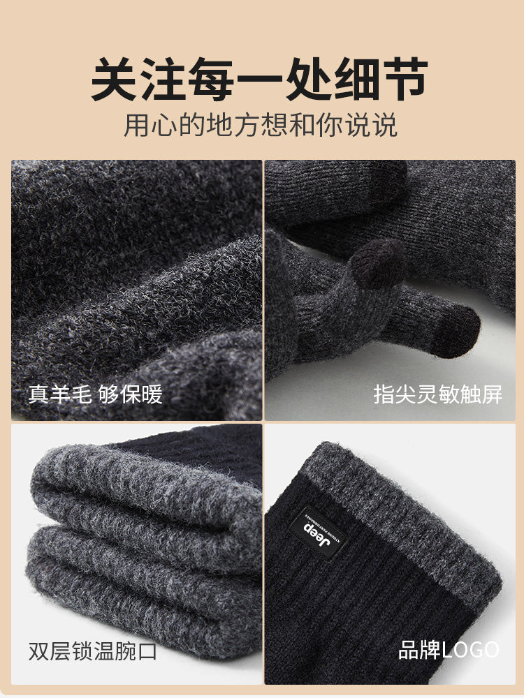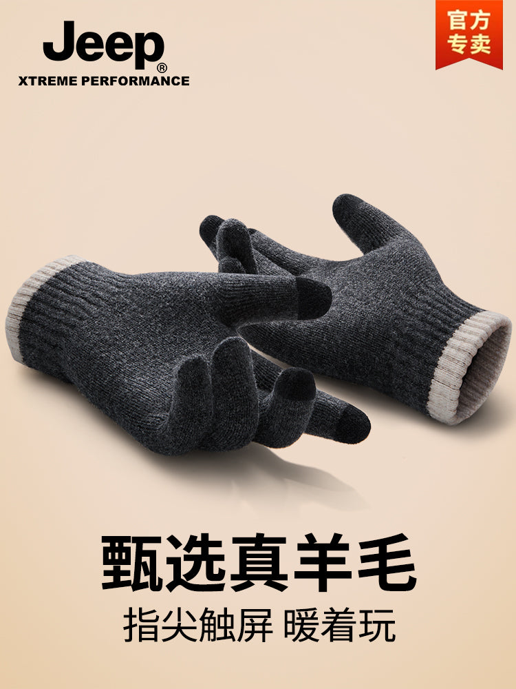 Kişilər üçün Jeep yun qarışığı əlcəkləri, qış üçün daha qalın və isti, toxunma ekranı ilə uyğun, velosiped sürmək üçün küləkdən qoruyur.