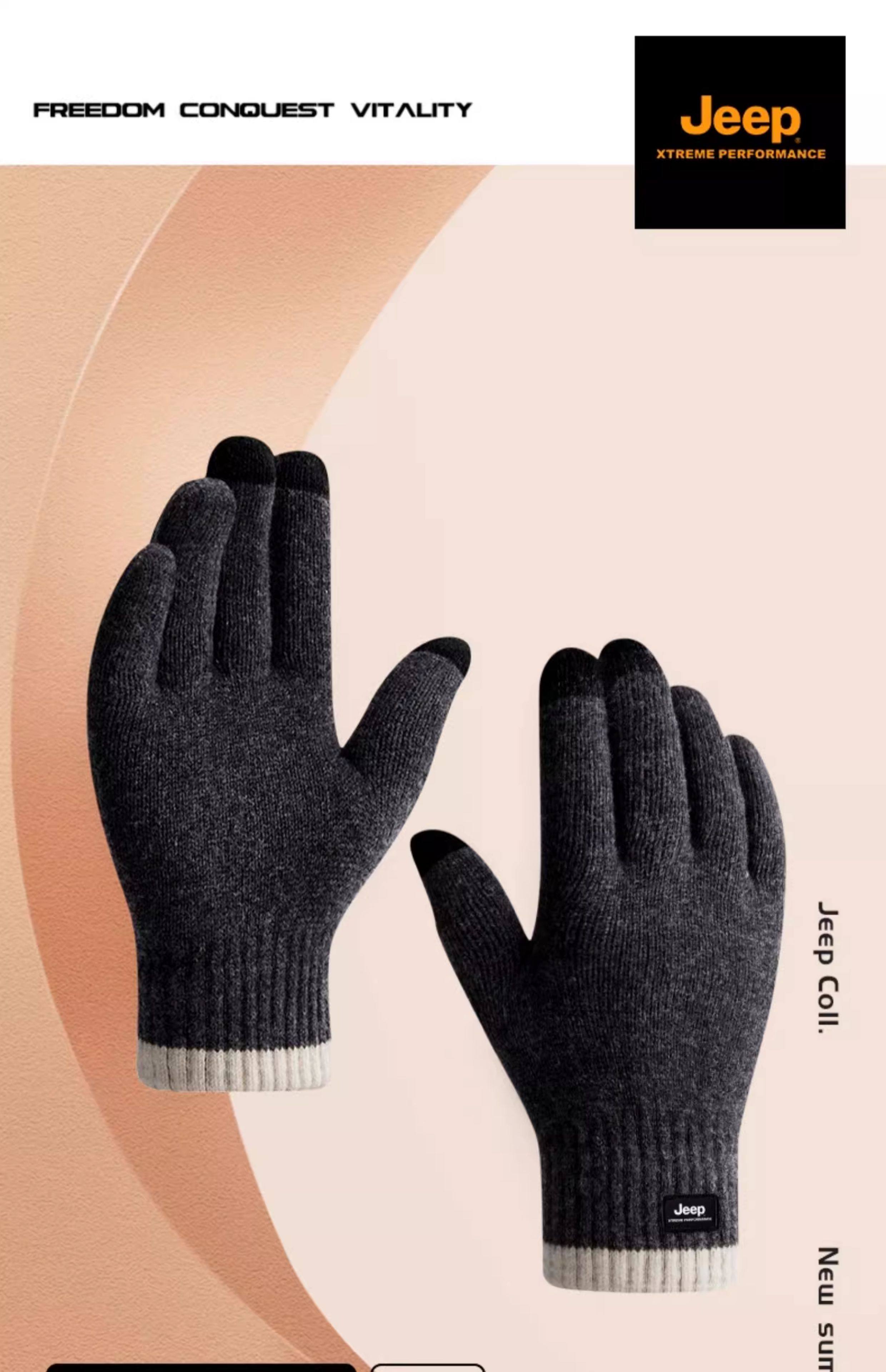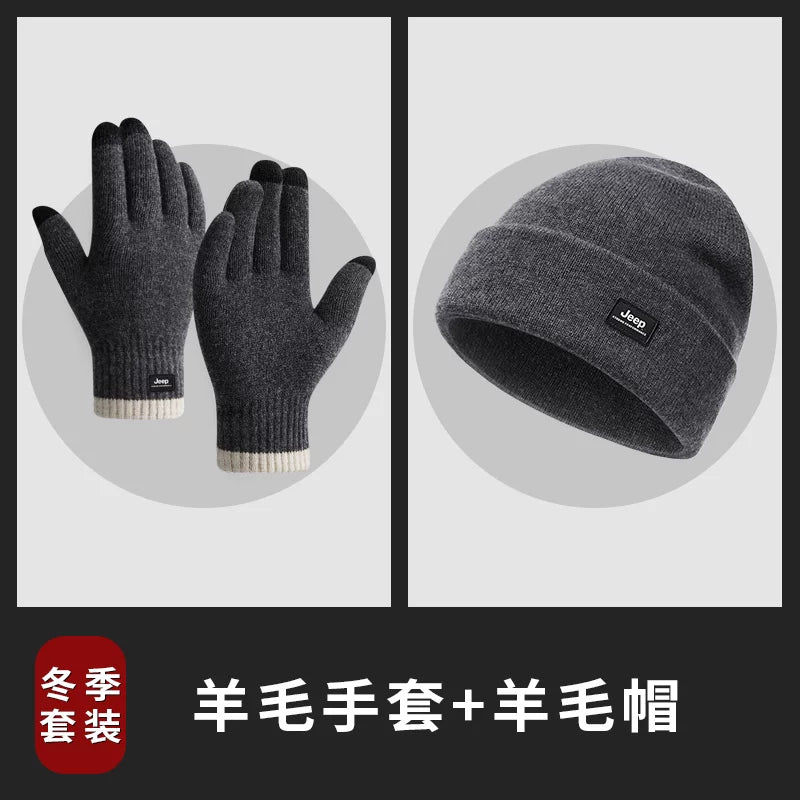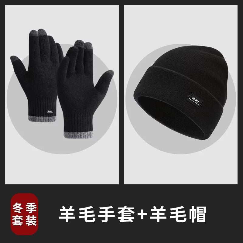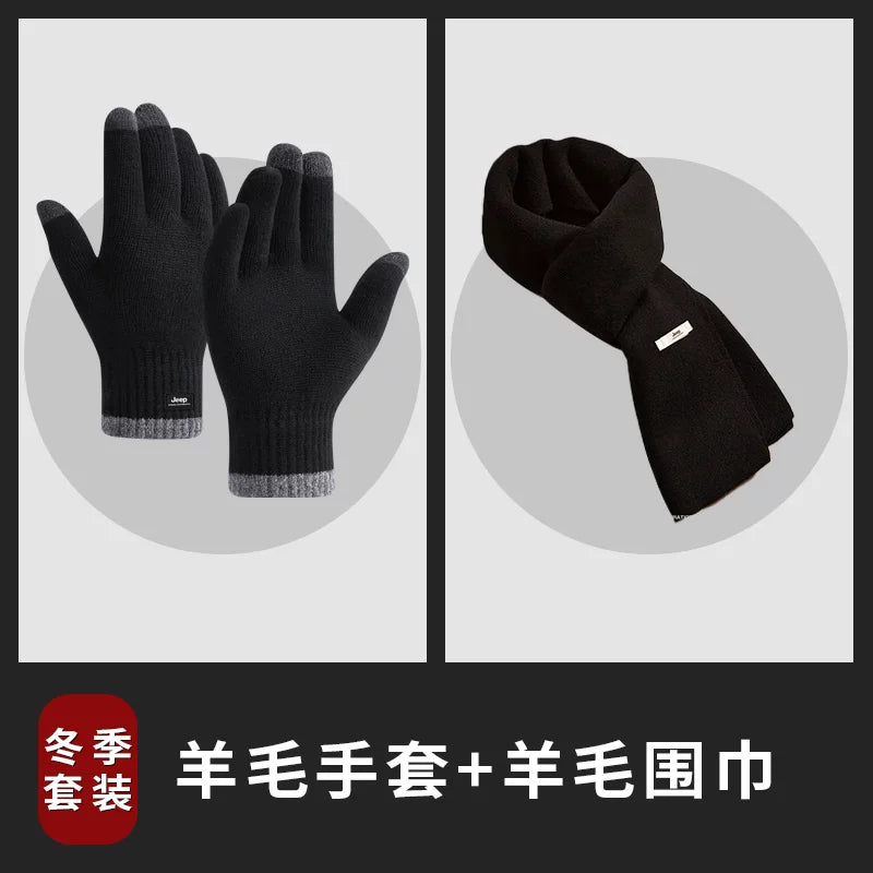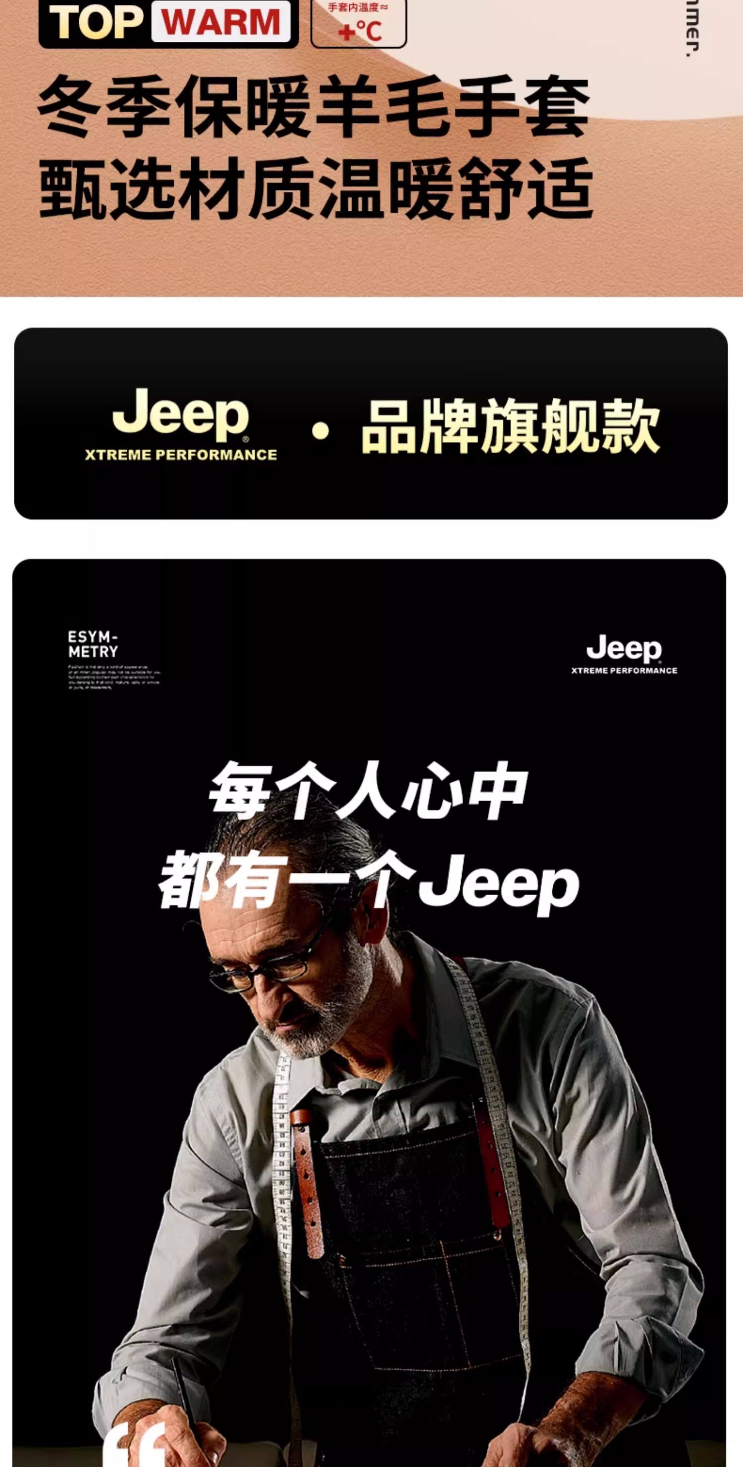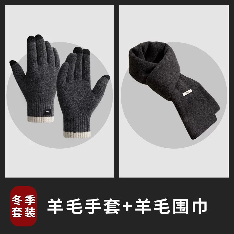 Kişilər üçün Jeep yun qarışığı əlcəkləri, qış üçün daha qalın və isti, toxunma ekranı ilə uyğun, velosiped sürmək üçün küləkdən qoruyur.