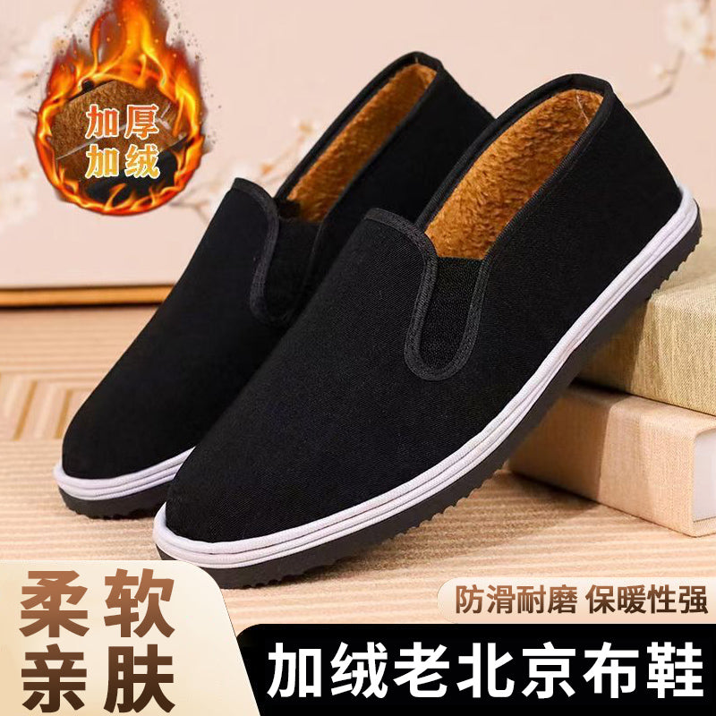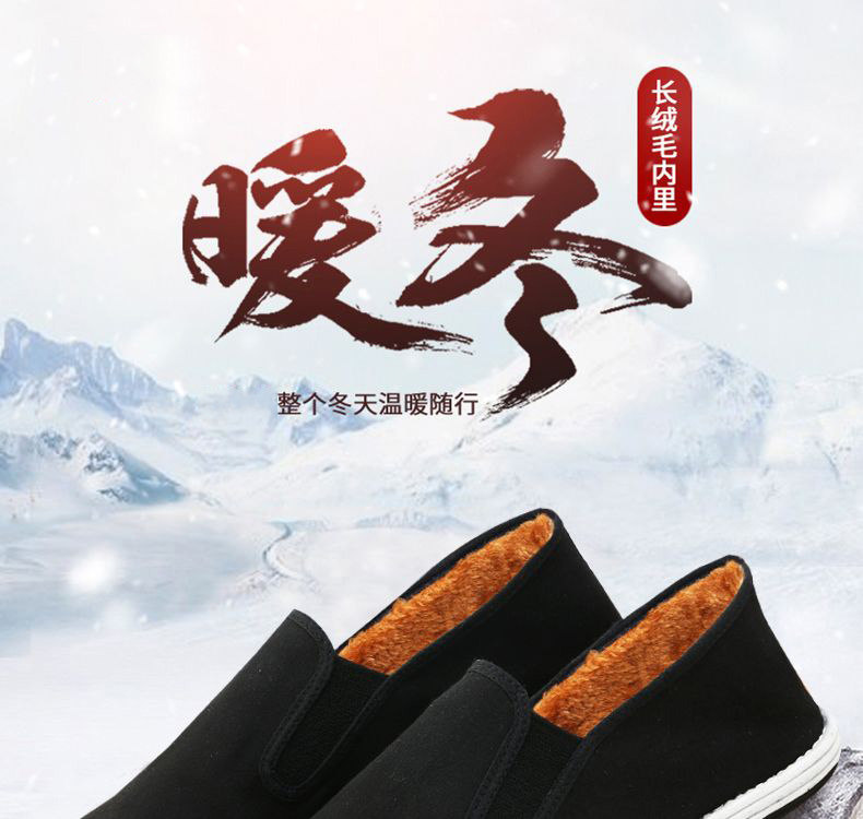 Kişilər üçün qış yun astarlı və qalınlaşdırılmış ənənəvi Pekin parça ayaqqabıları, isti pambıq ayaqqabılar, sürüşən iş ayaqqabıları, geyinməsi asan pambıq parça ayaqqabılar