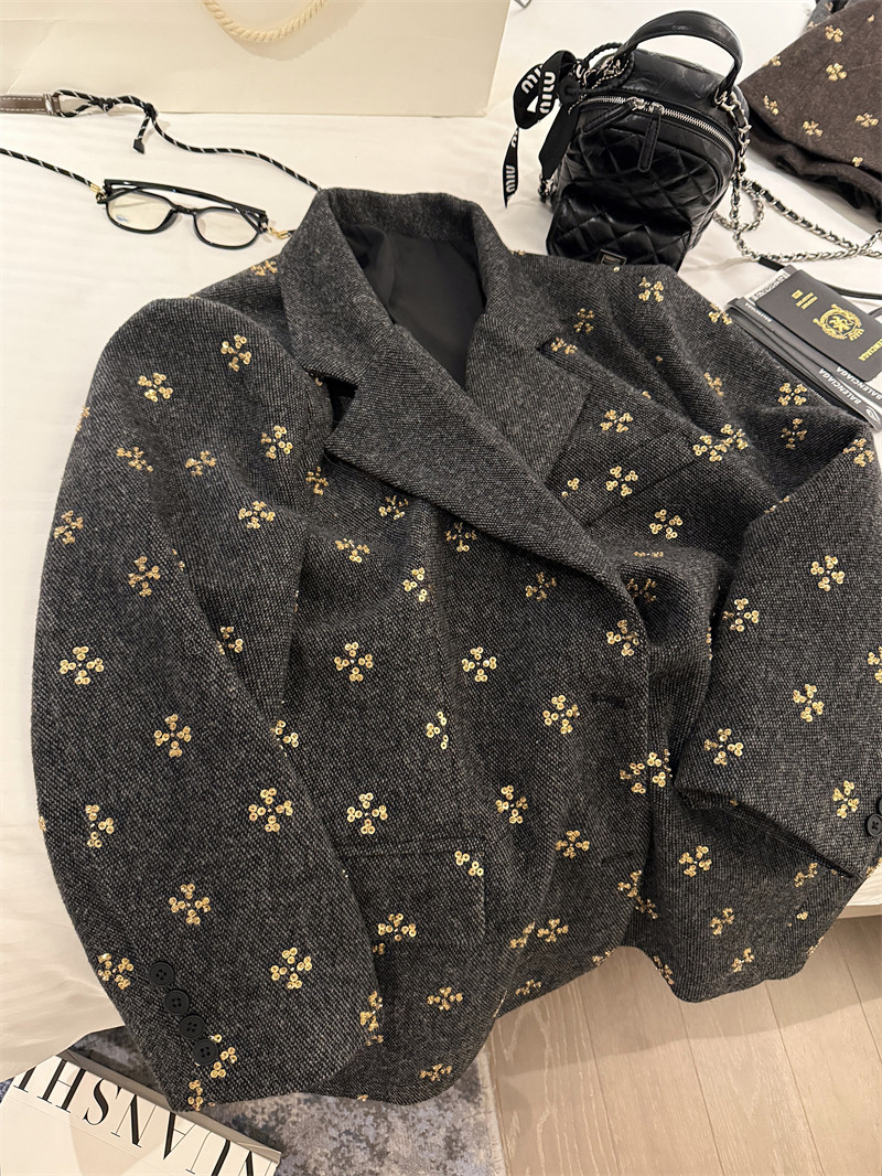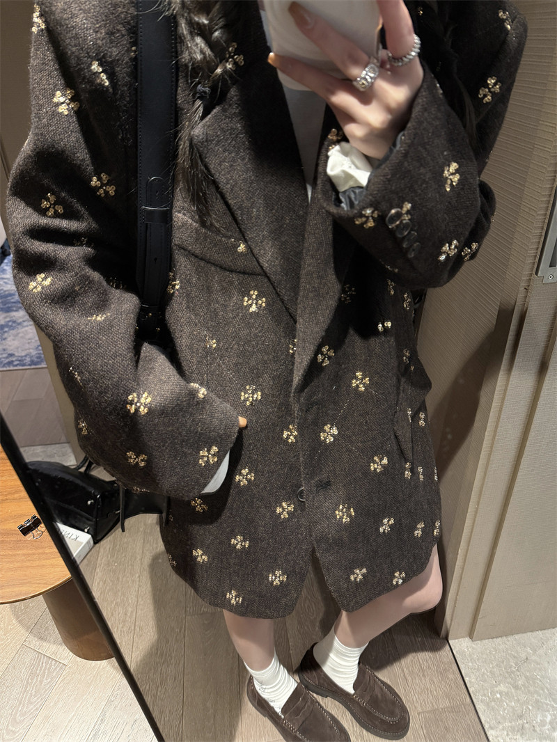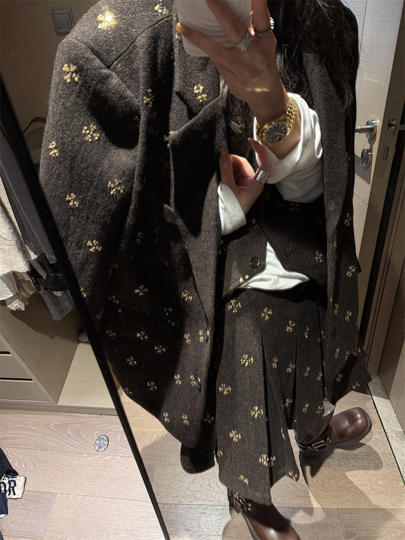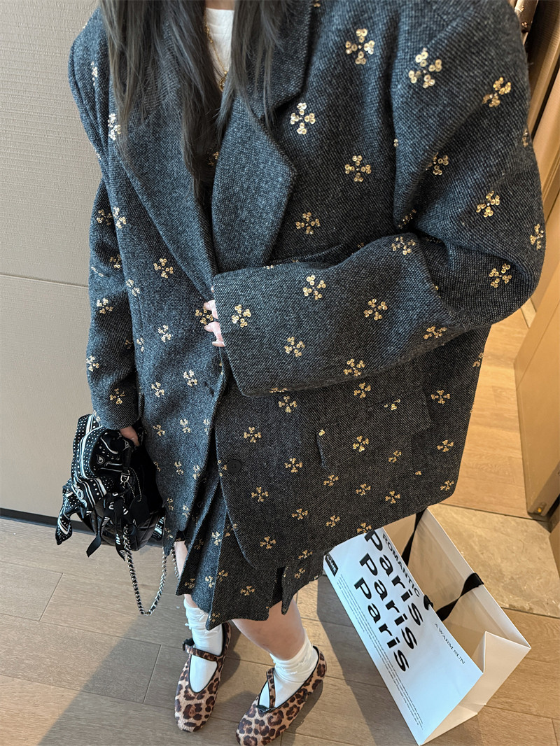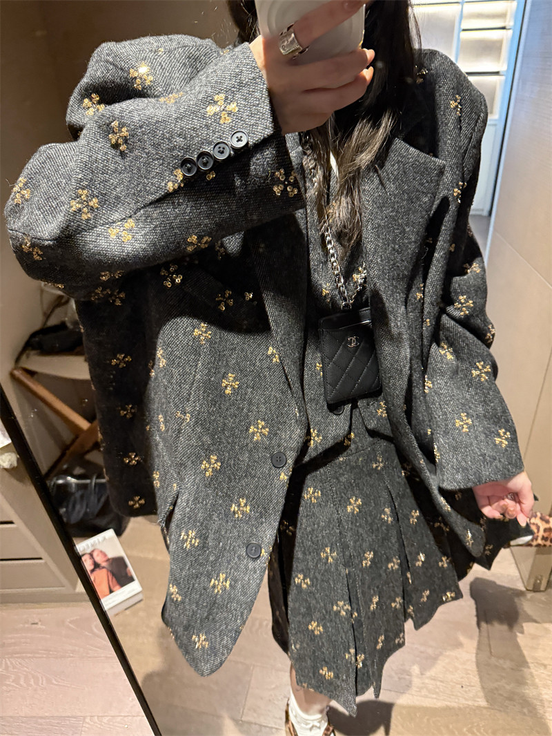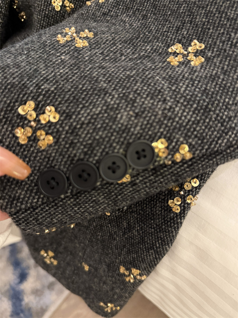 KKSTUDIO Qadınlar üçün Yüksək Səviyyəli Muncuqlu Böyük Ölçülü Yun Blazer, Payız Koreya Üslubunda, Nişli Gündəlik Kostyum