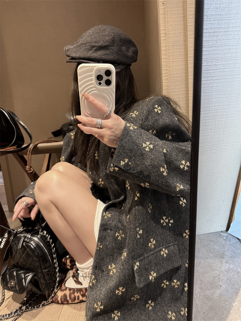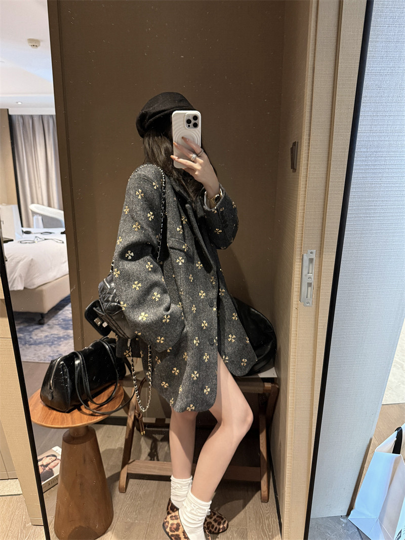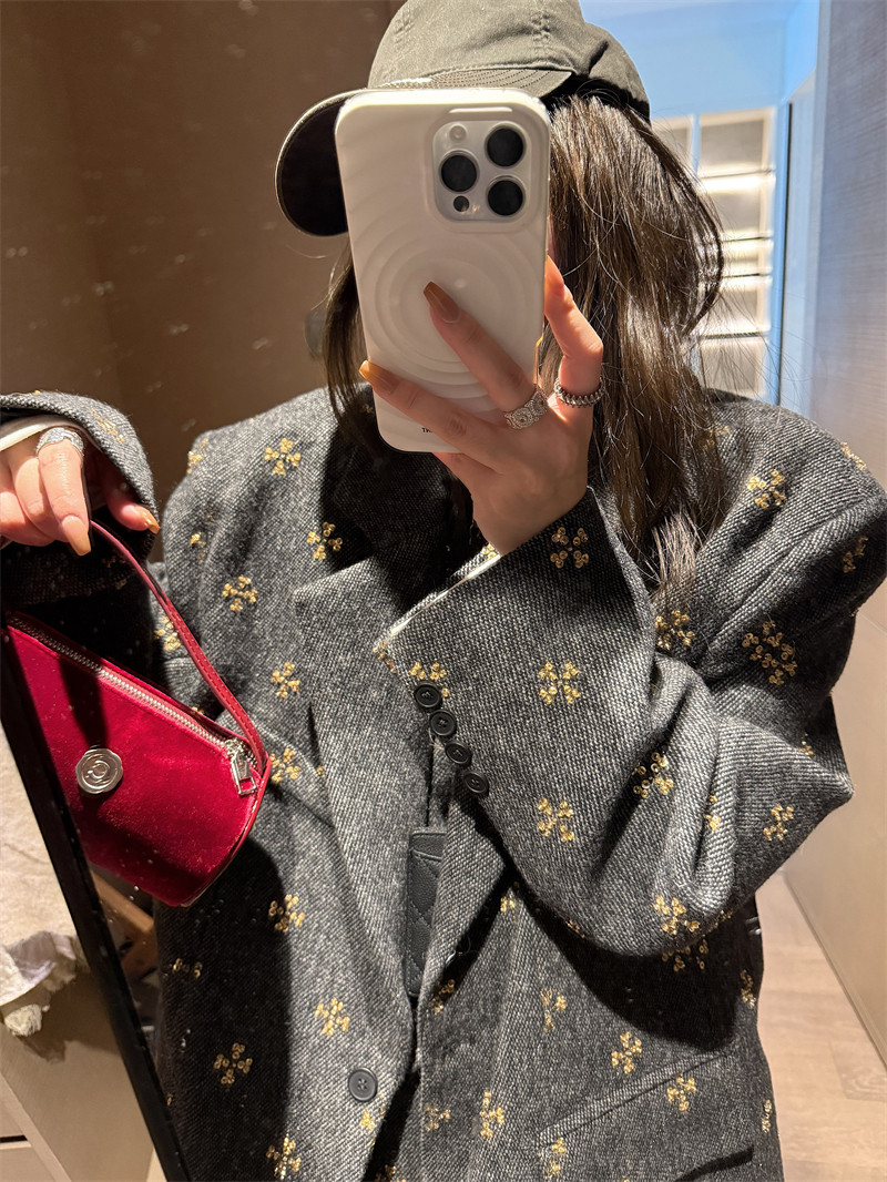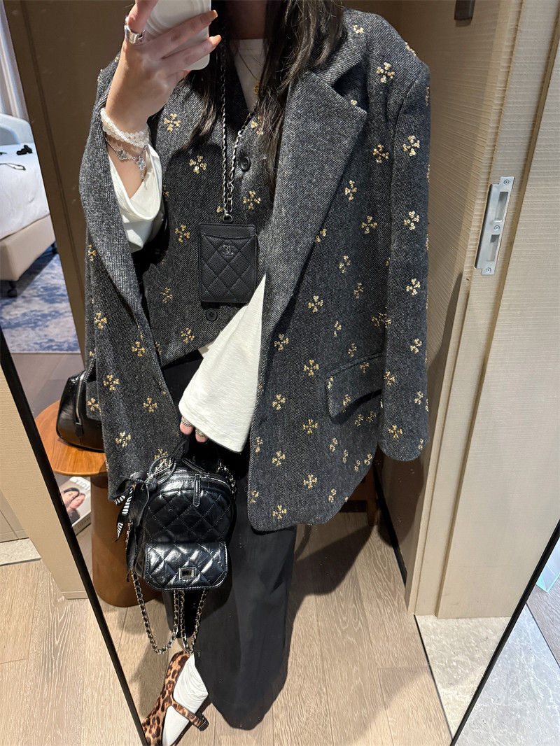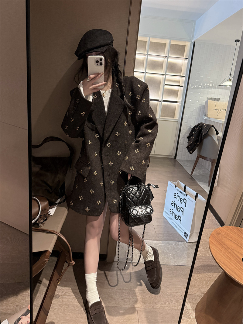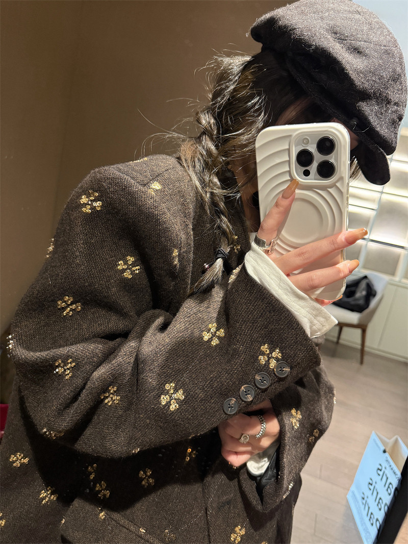 KKSTUDIO Qadınlar üçün Yüksək Səviyyəli Muncuqlu Böyük Ölçülü Yun Blazer, Payız Koreya Üslubunda, Nişli Gündəlik Kostyum