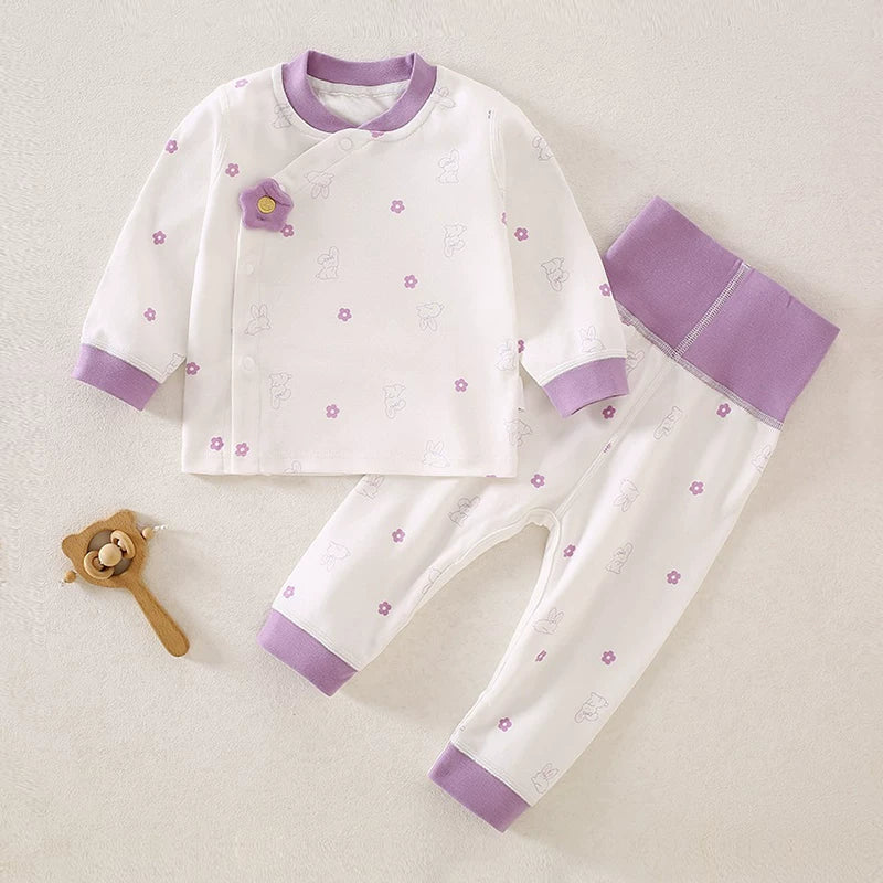 Körpə və yeniyetmələr üçün erkən payız geyimləri, oğlan və qızlar üçün A sinif təmiz pambıqdan yüksək belli pijamalar dəsti