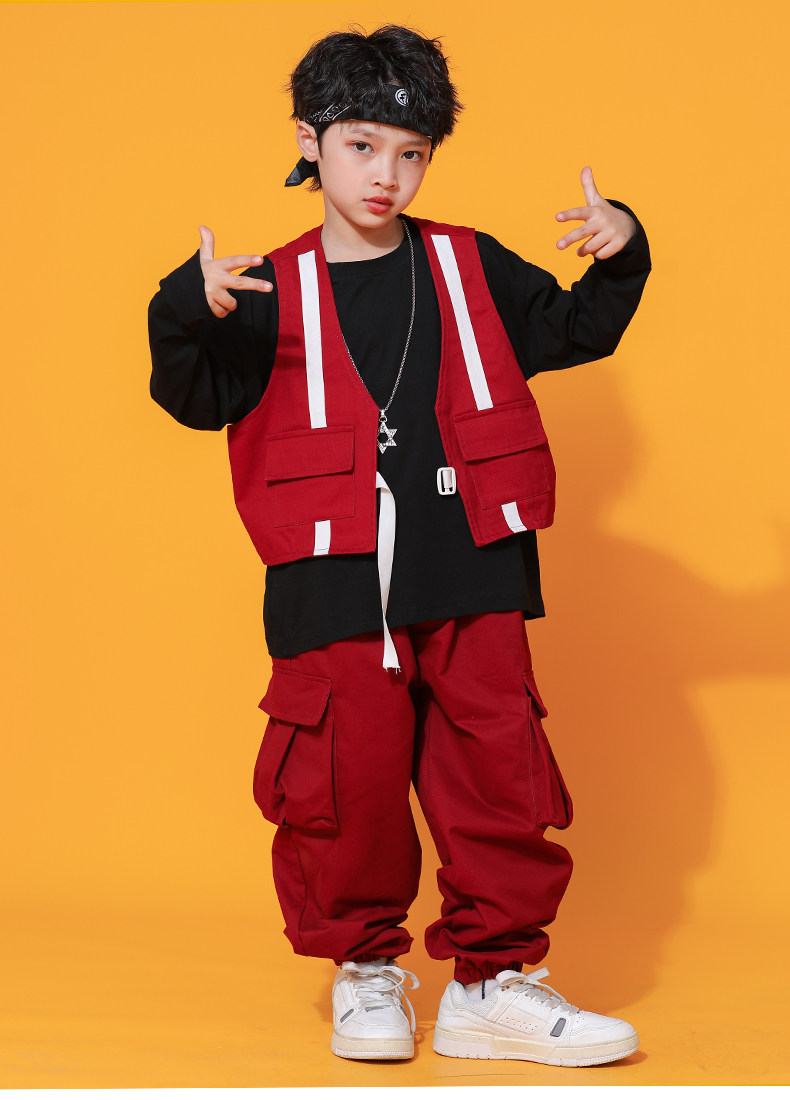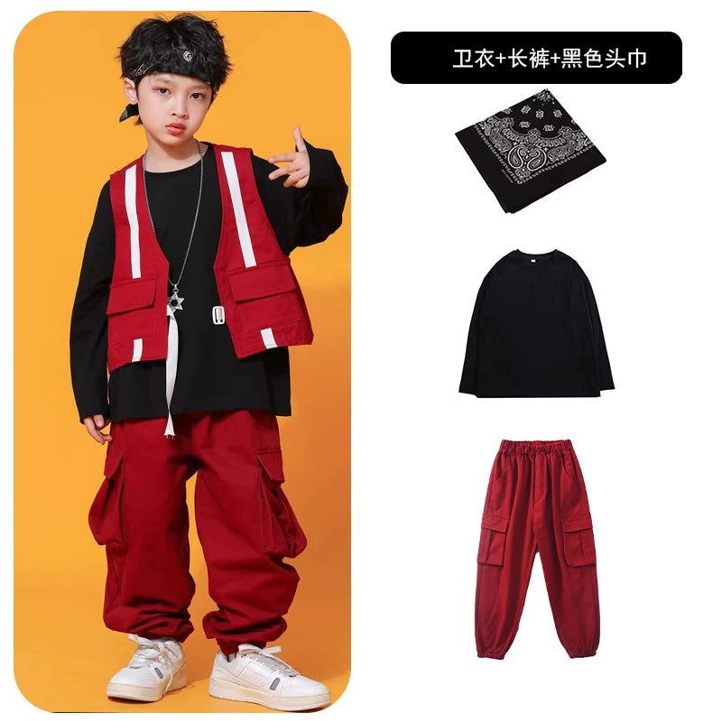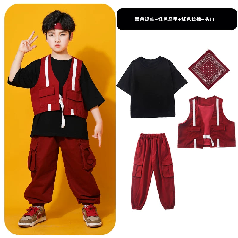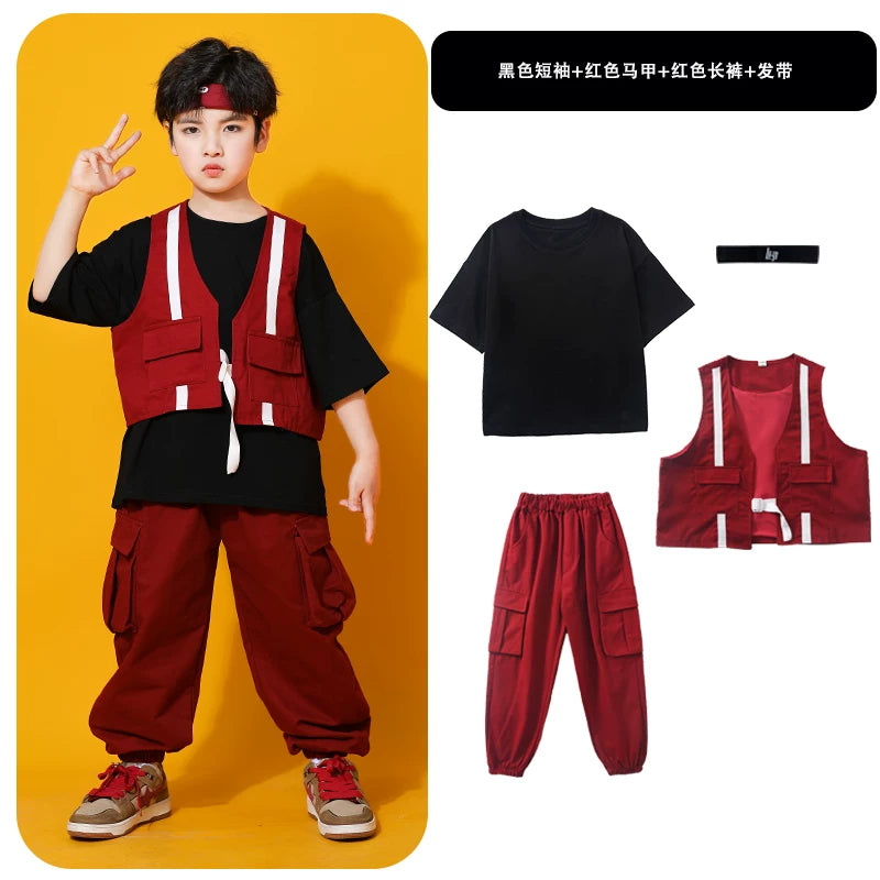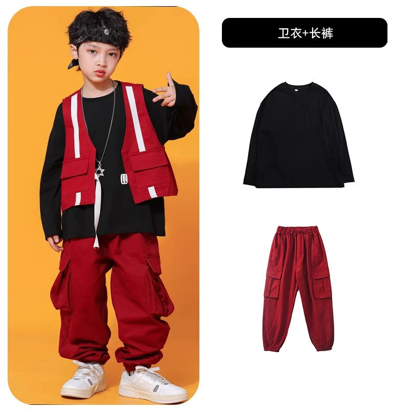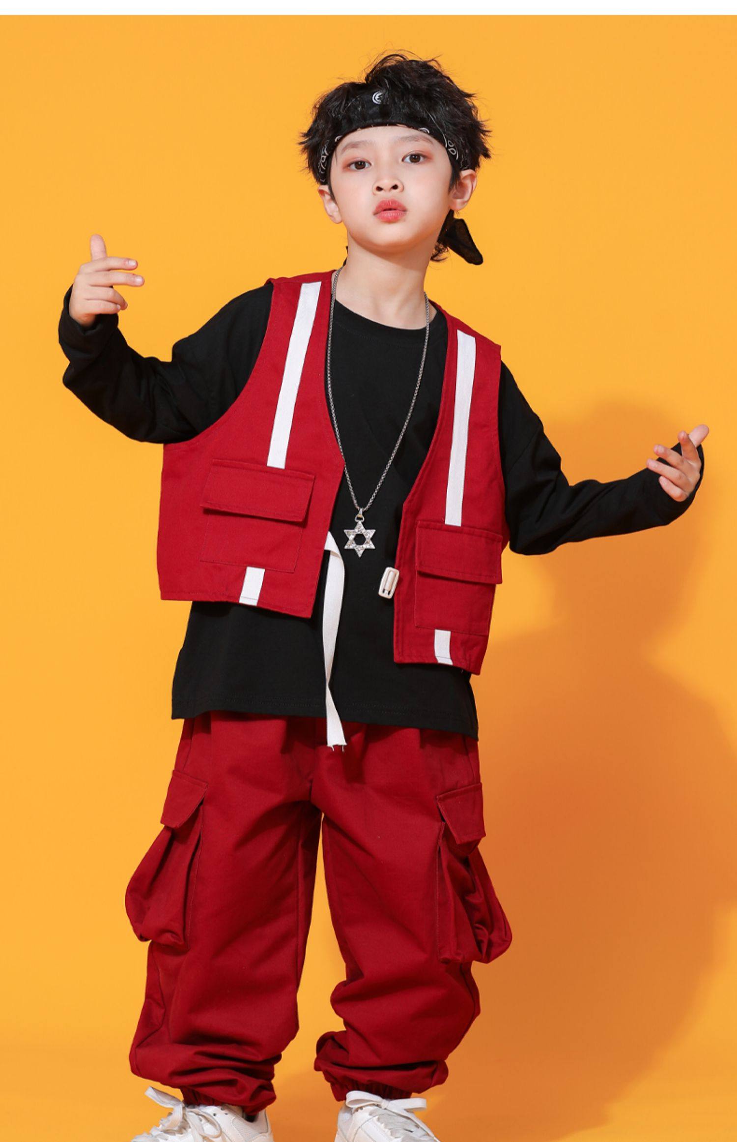 Küçə rəqsləri uşaqlar üçün dəbli, gözəl oğlanlar üçün hip-hop performansı jileti, üç hissəli hip-hop küçə performansı kostyumu.
