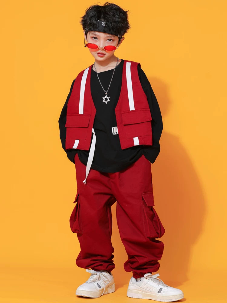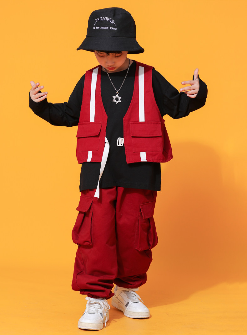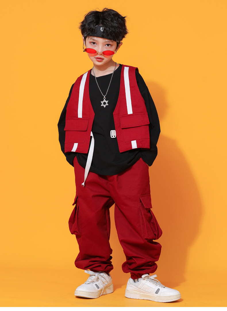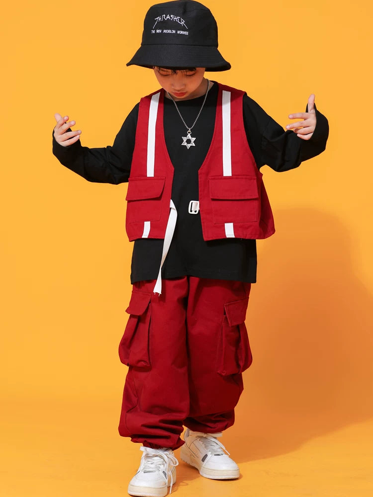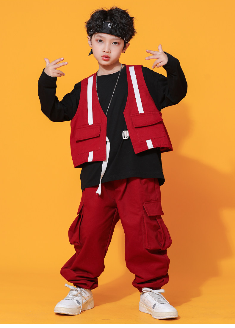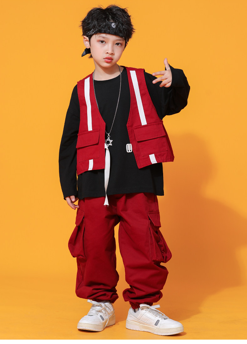 Küçə rəqsləri uşaqlar üçün dəbli, gözəl oğlanlar üçün hip-hop performansı jileti, üç hissəli hip-hop küçə performansı kostyumu.