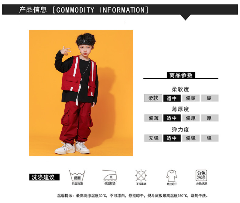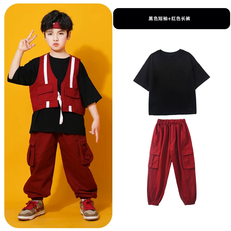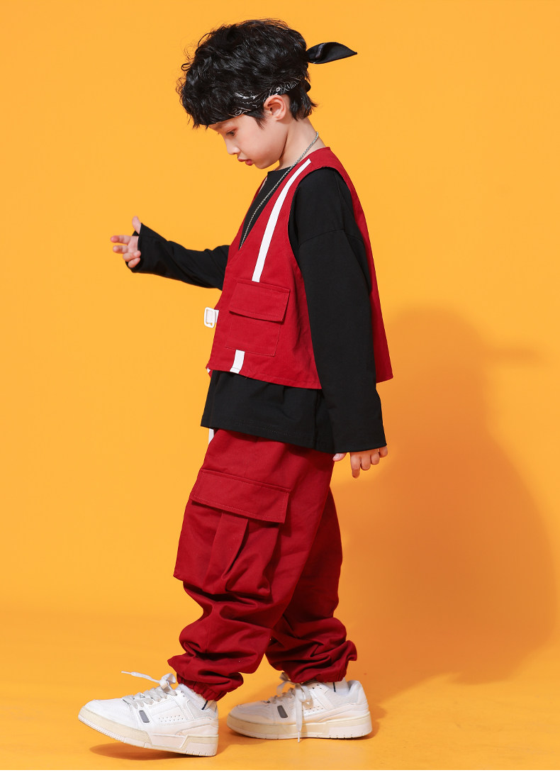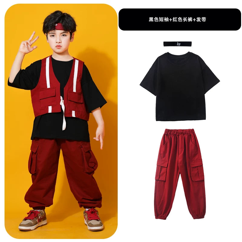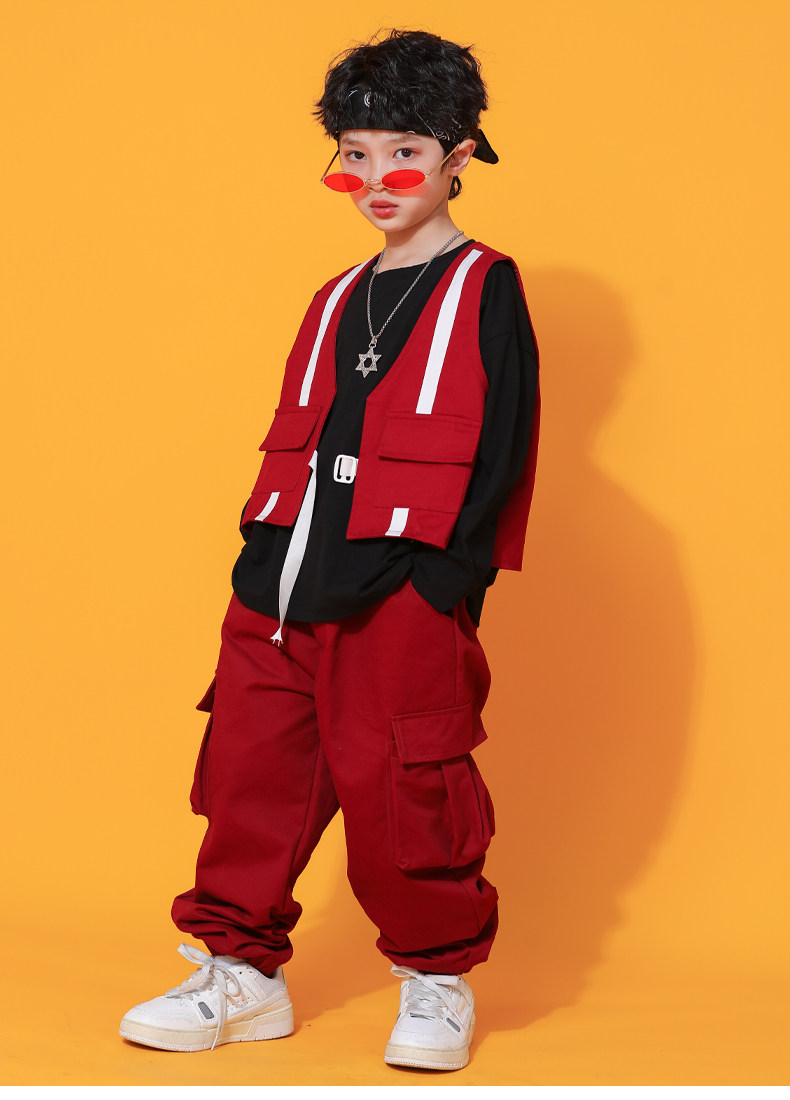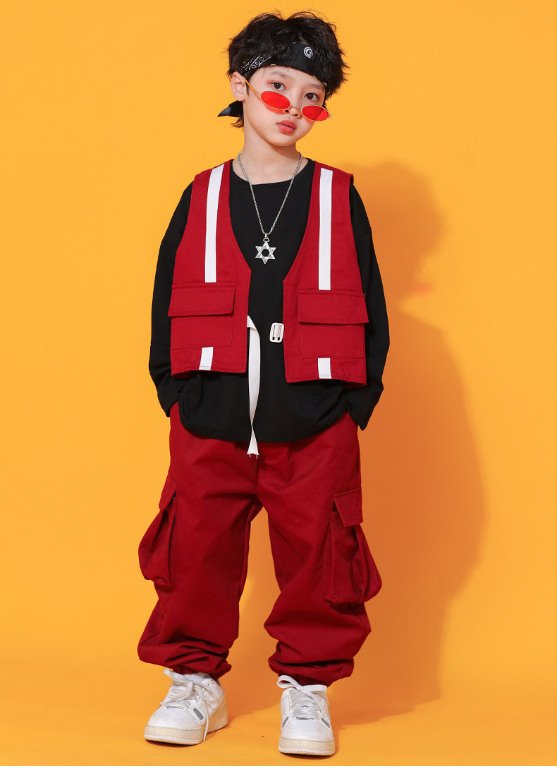 Küçə rəqsləri uşaqlar üçün dəbli, gözəl oğlanlar üçün hip-hop performansı jileti, üç hissəli hip-hop küçə performansı kostyumu.