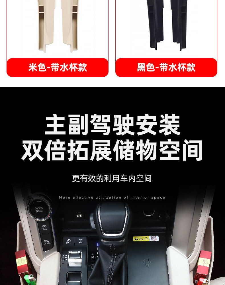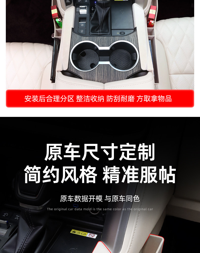 Land Cruiser LC300 oturacaq boşluğu saxlama qutuları, daxili mərkəzi konsol saxlama qutuları və yük bölmələri üçün uyğundur. Land Cruiser modifikasiyası.
