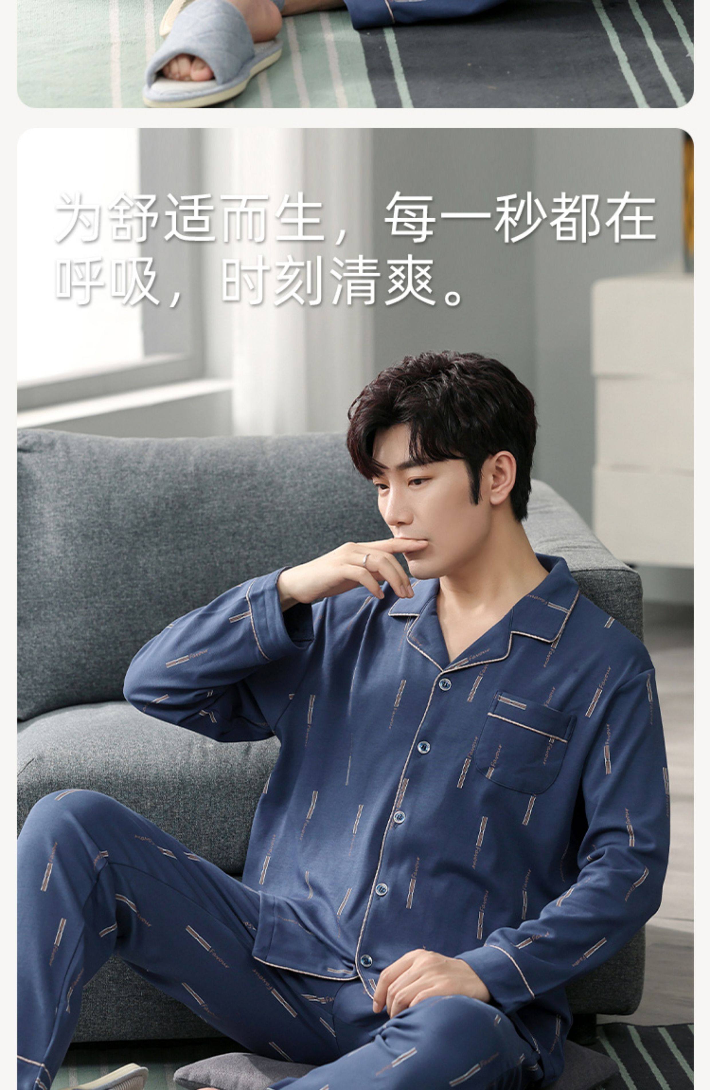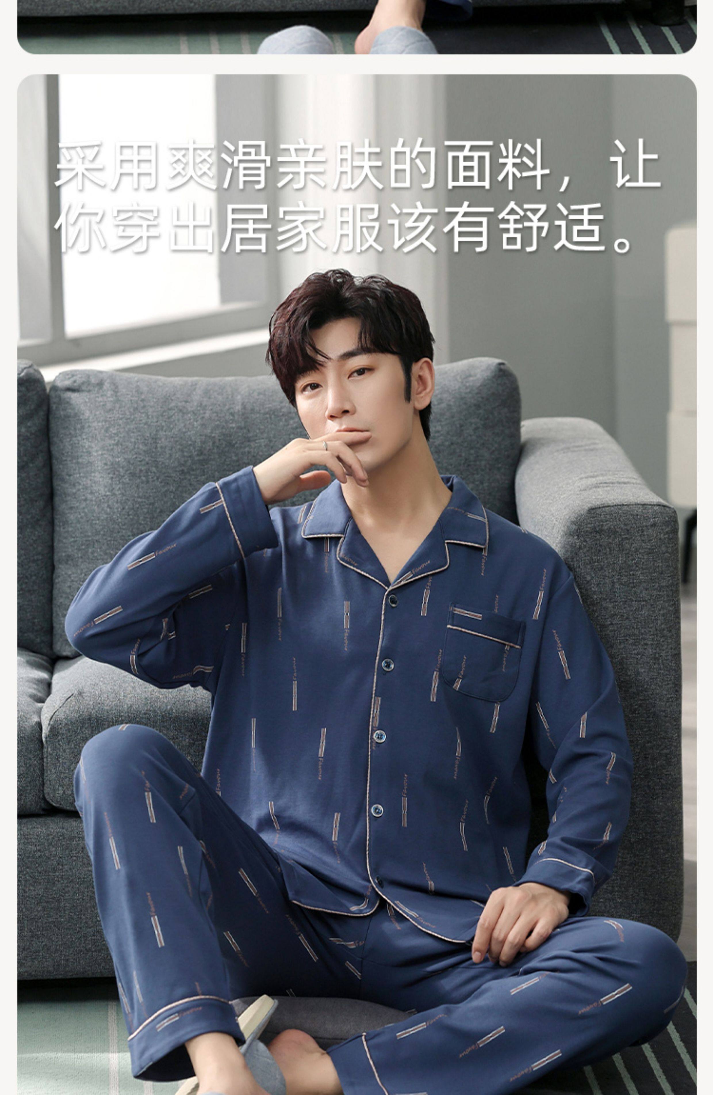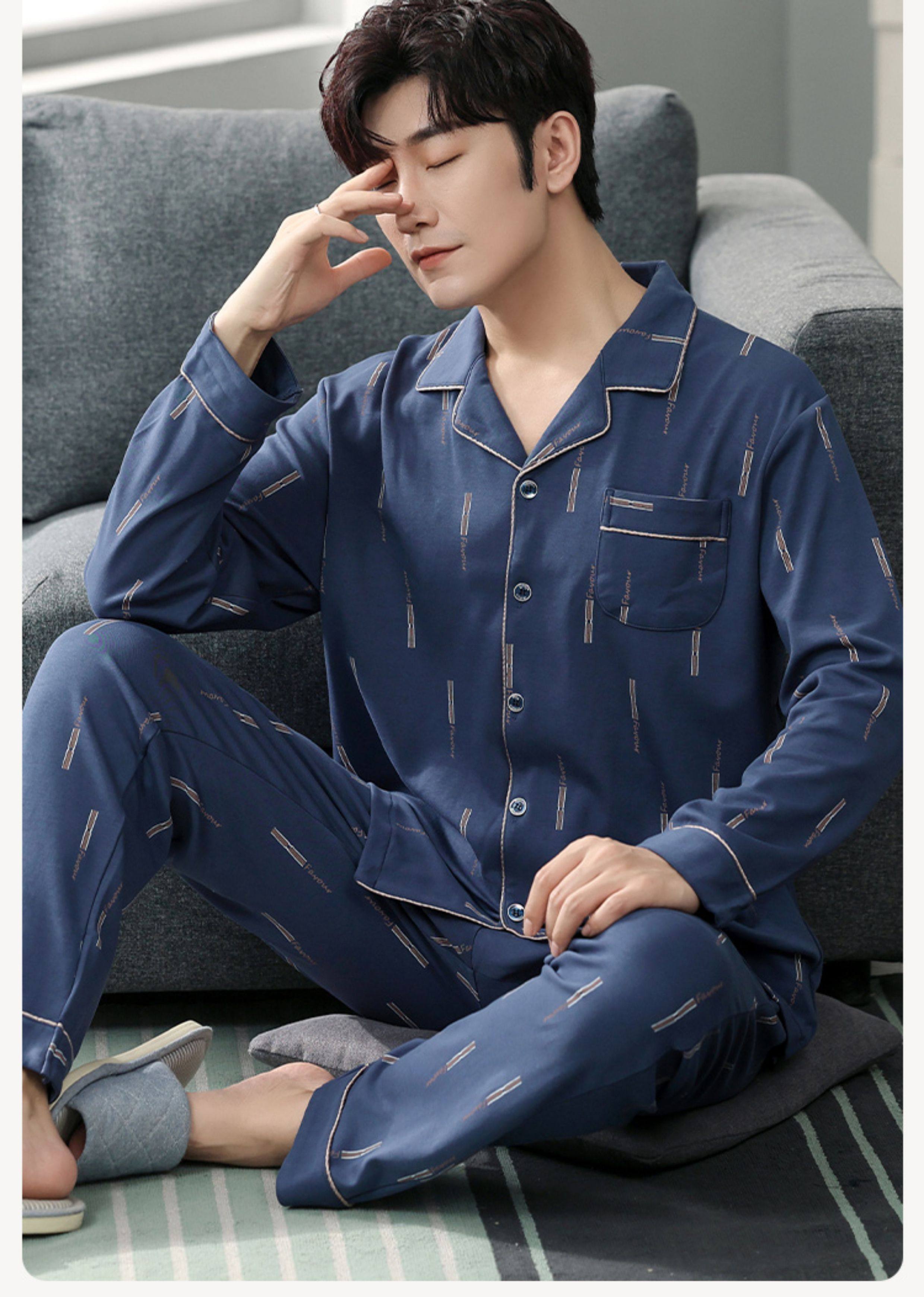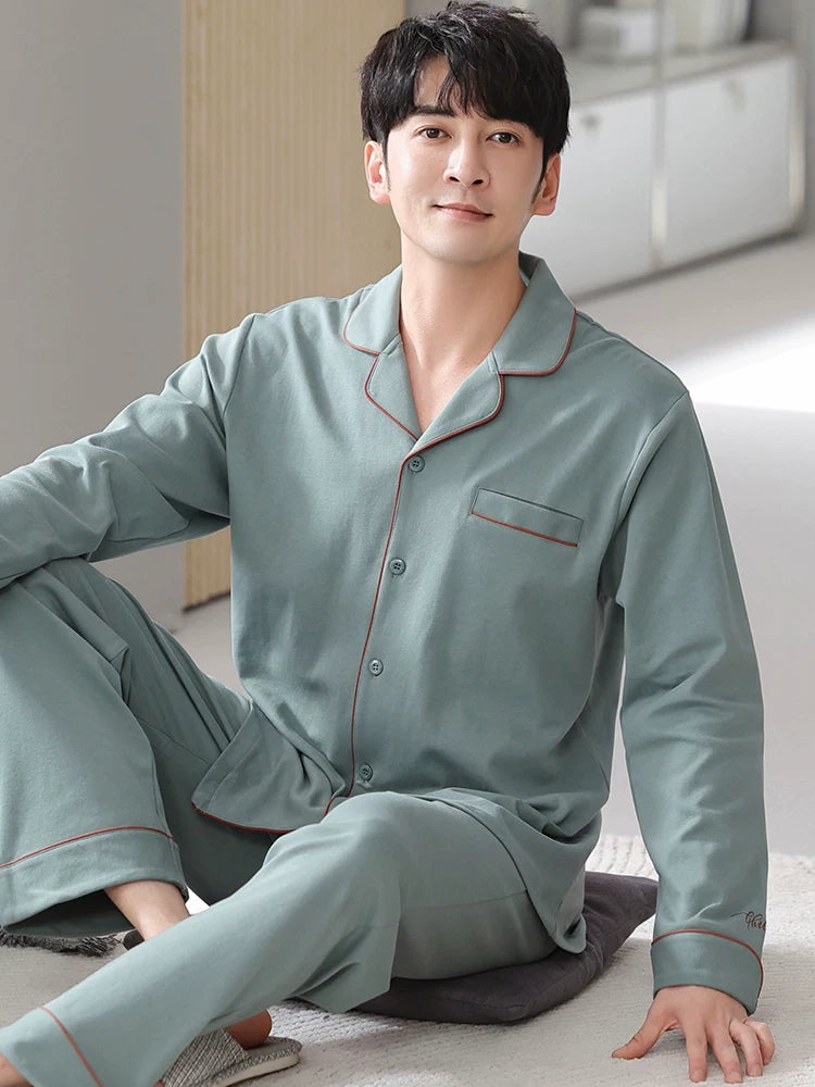 Langsha Kişilər üçün Təmiz Pambıq Pijama 2025 Yeni Yaz və Payız Nazik Uzunqollu Böyük Ölçülü Payız və Qış Kişilər üçün Ev Geyimləri Dəsti