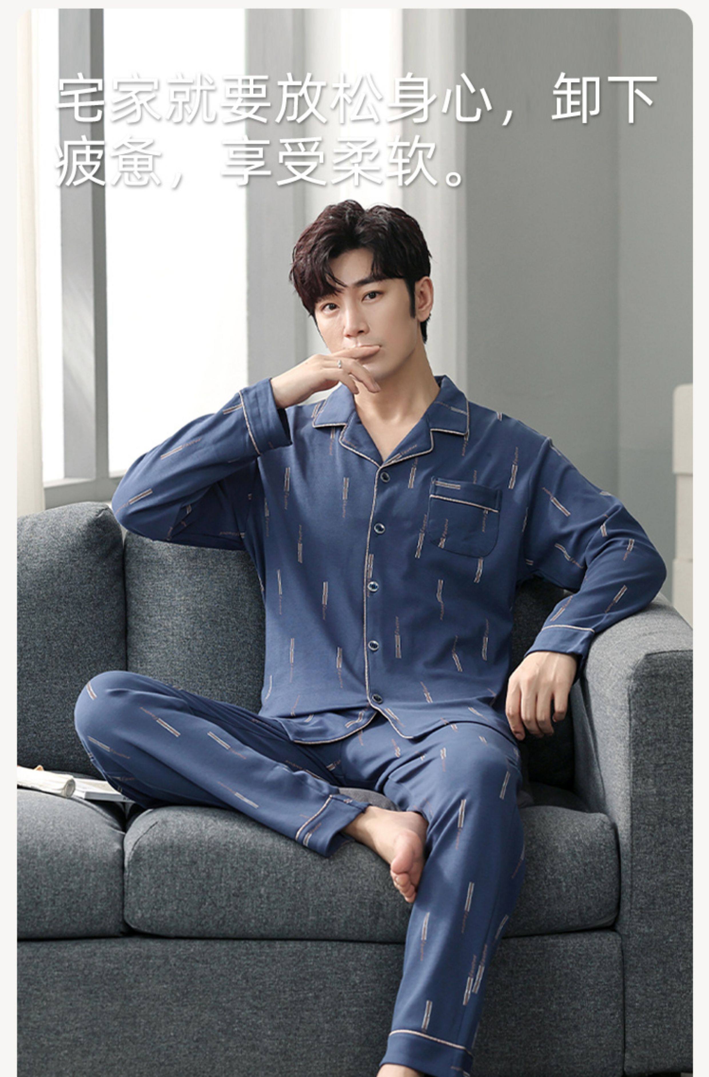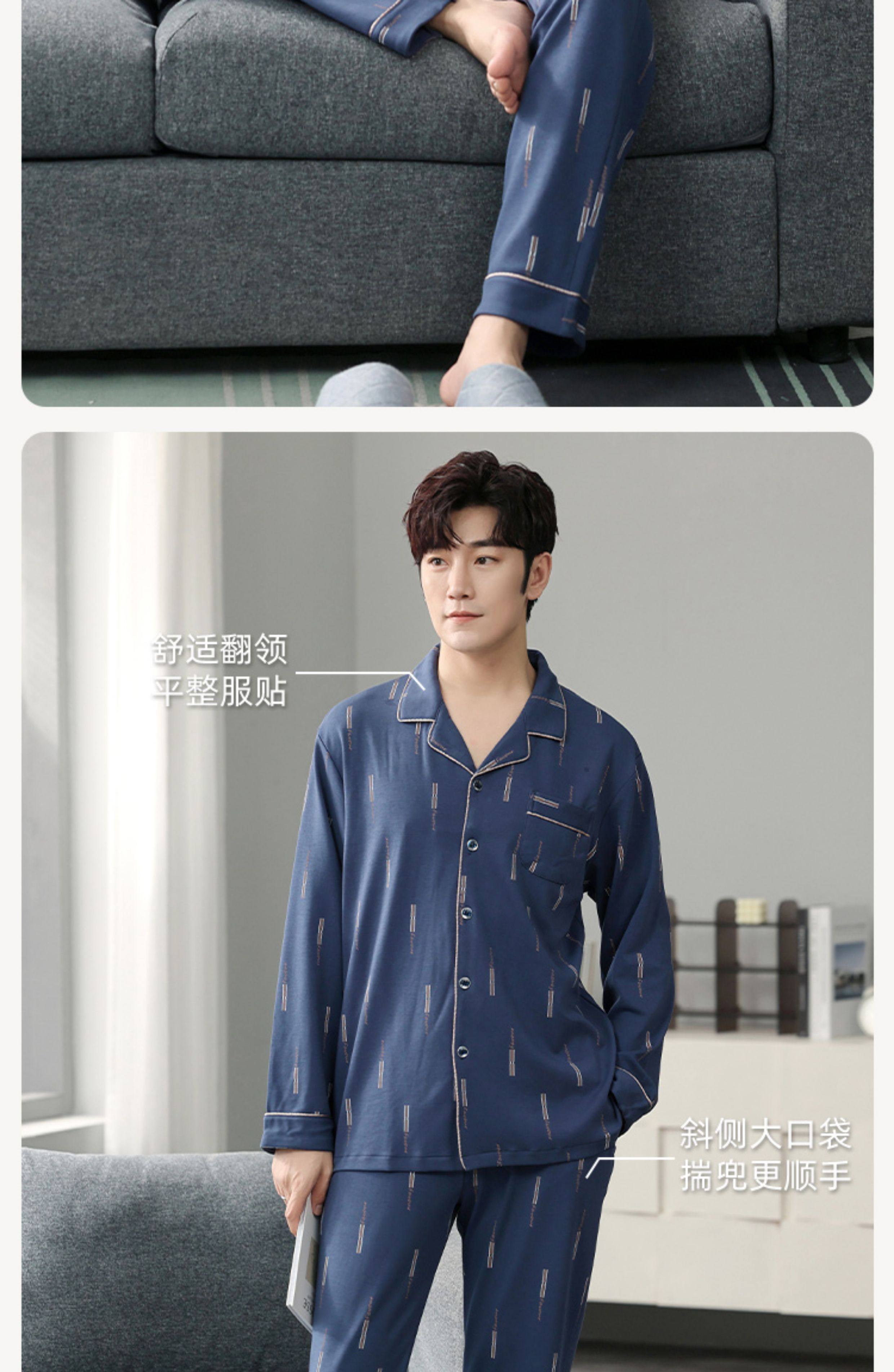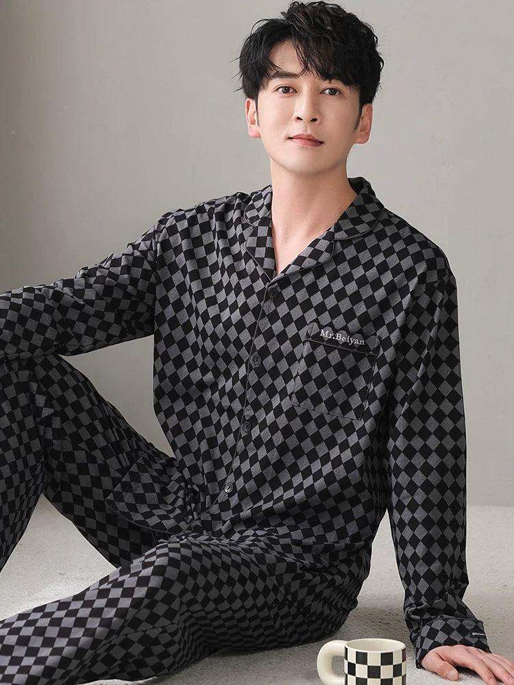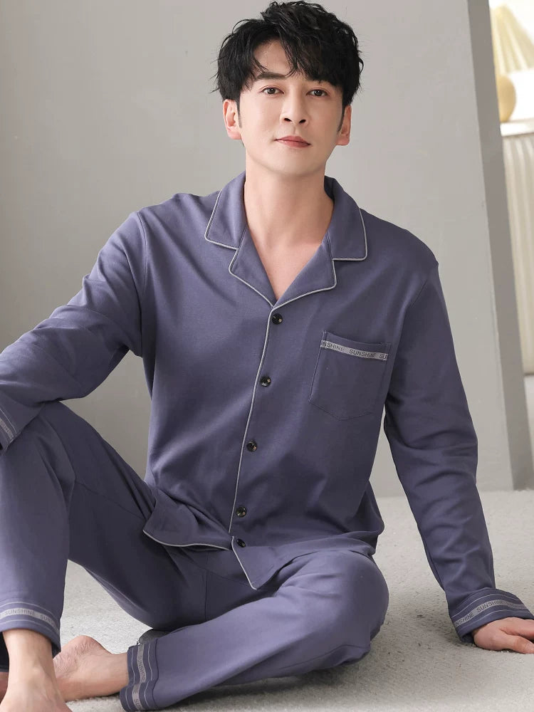 Langsha Kişilər üçün Təmiz Pambıq Pijama 2025 Yeni Yaz və Payız Nazik Uzunqollu Böyük Ölçülü Payız və Qış Kişilər üçün Ev Geyimləri Dəsti