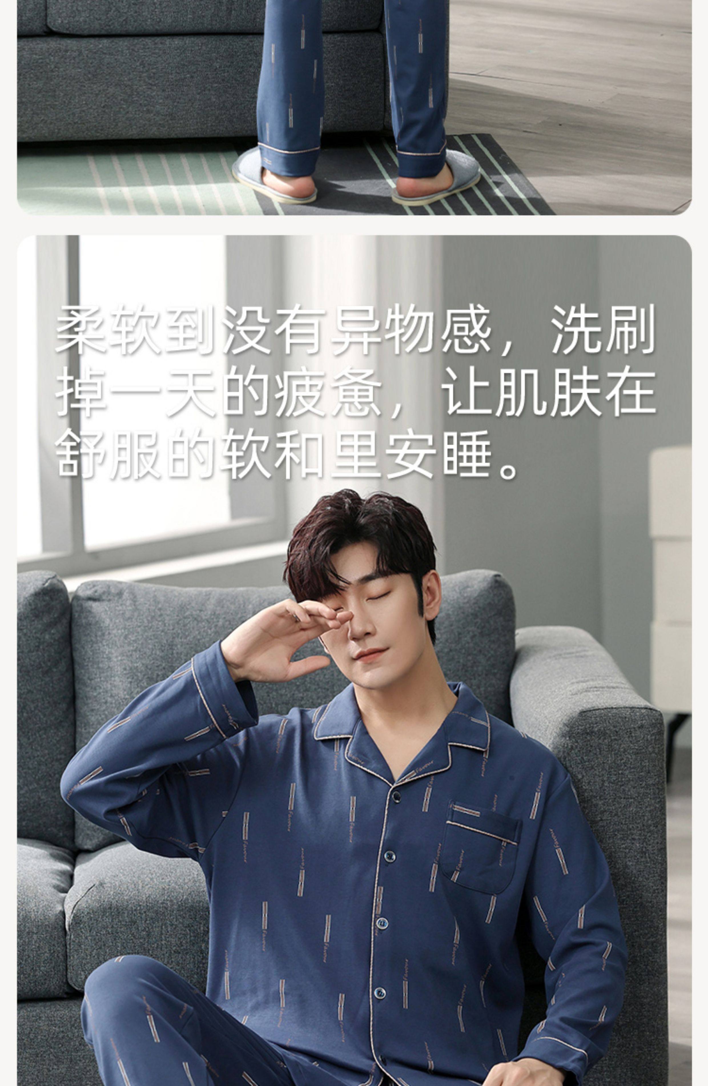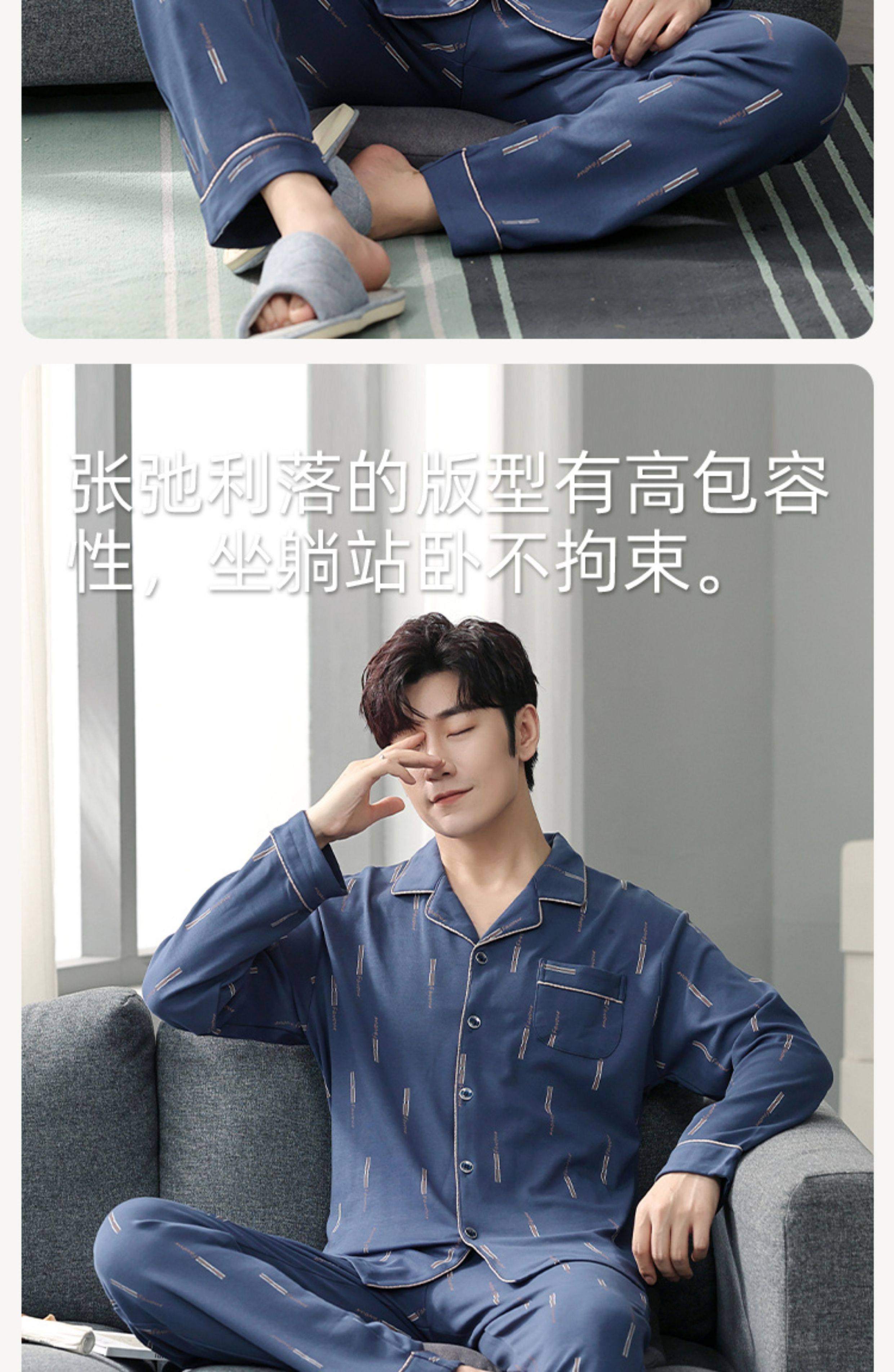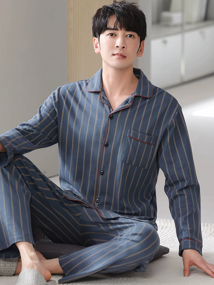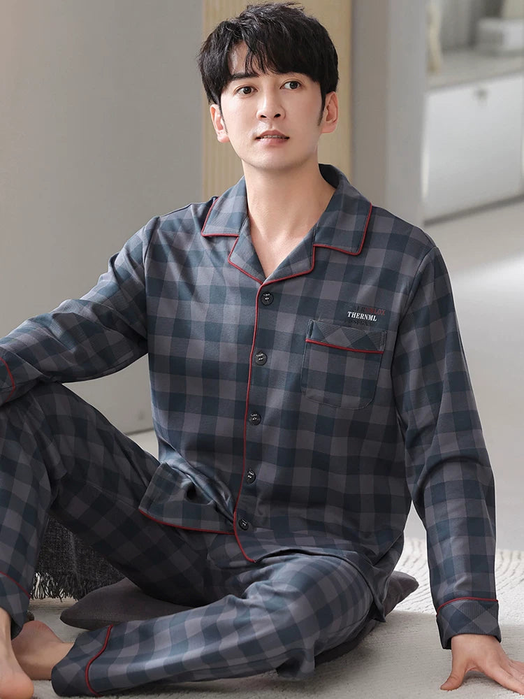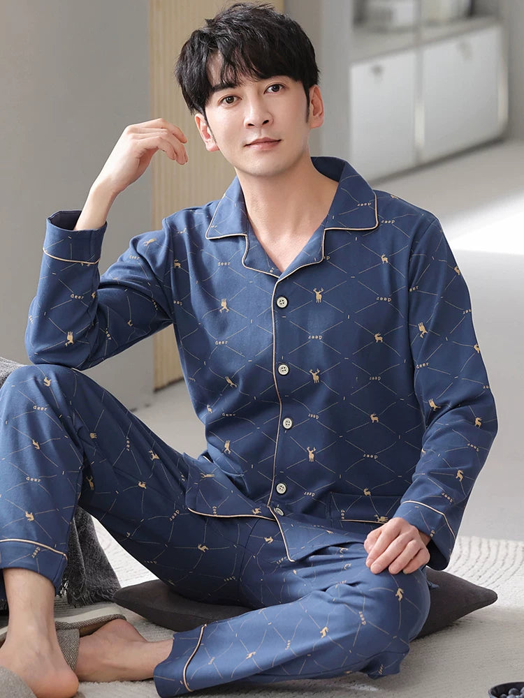 Langsha Kişilər üçün Təmiz Pambıq Pijama 2025 Yeni Yaz və Payız Nazik Uzunqollu Böyük Ölçülü Payız və Qış Kişilər üçün Ev Geyimləri Dəsti
