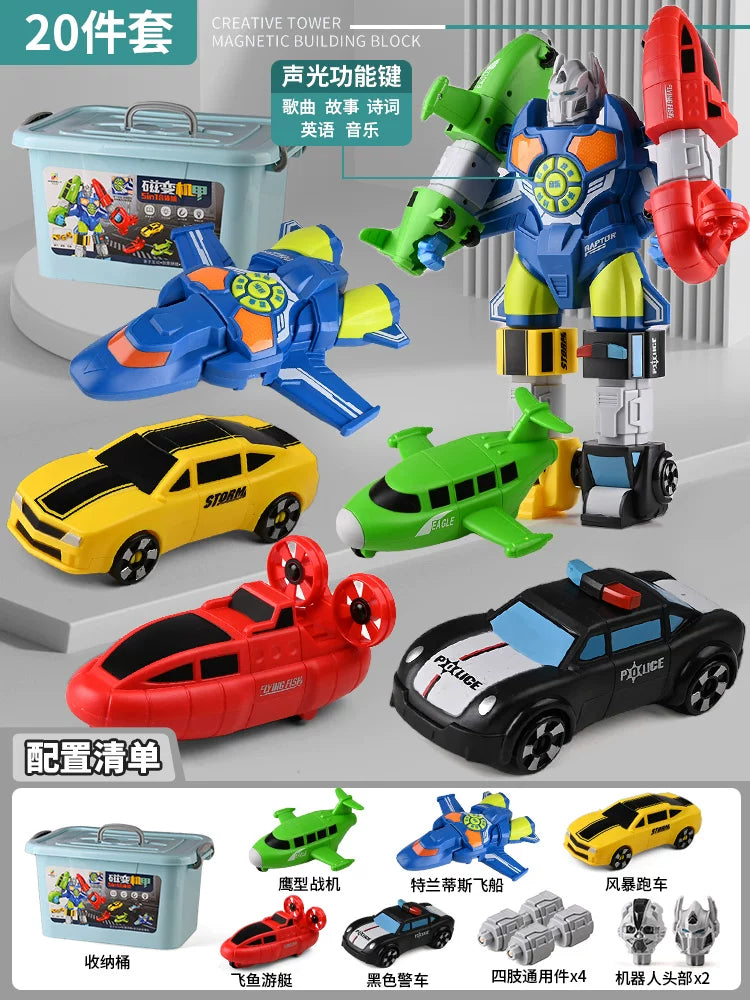 Maqnit tikinti blokları, uşaq oyuncaqları, təhsil, transformasiya, montaj, mühəndislik vasitəsi, robot, 6 yaşlı uşaqlar üçün Milad hədiyyəsi.