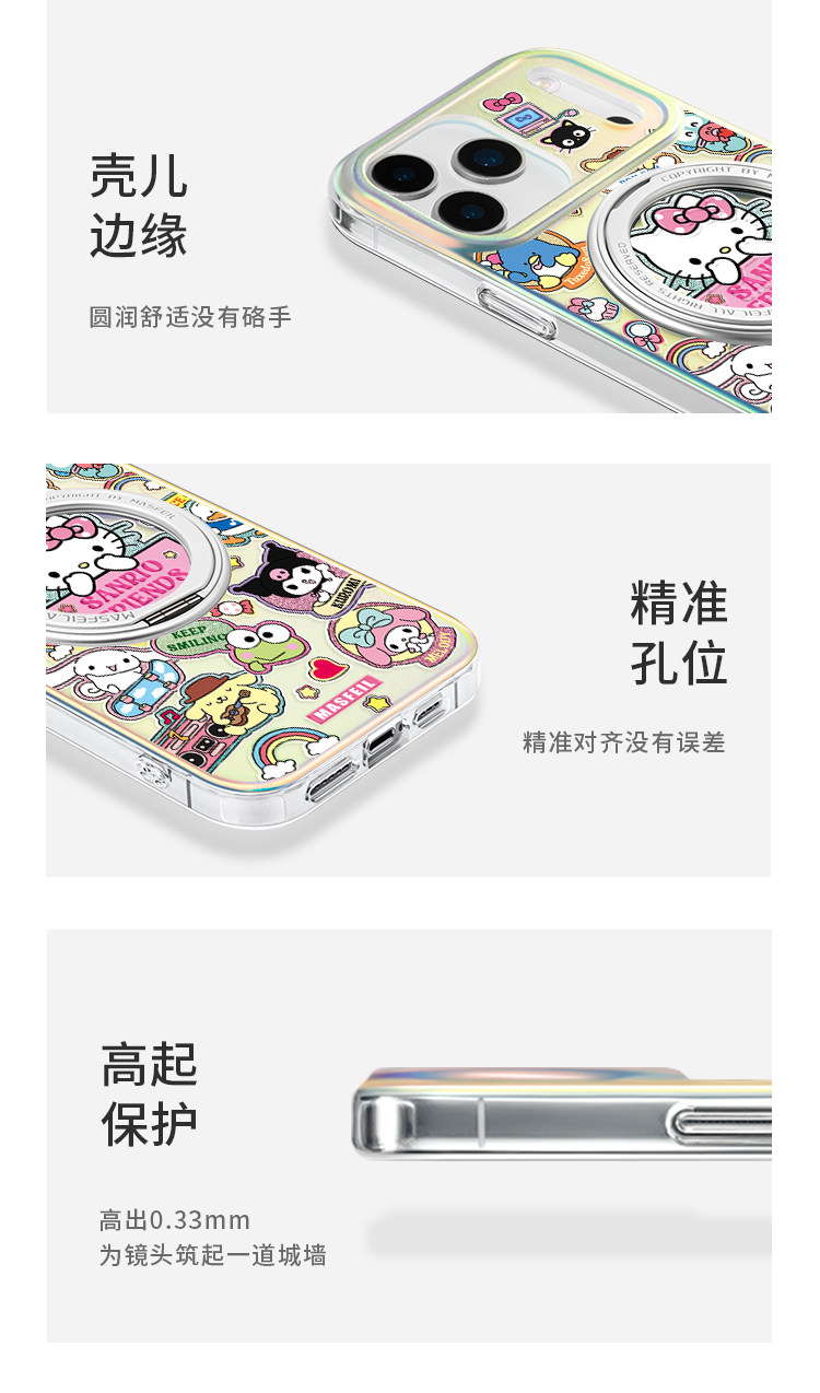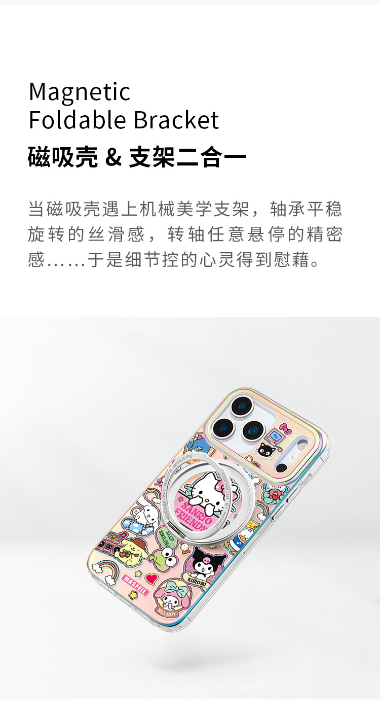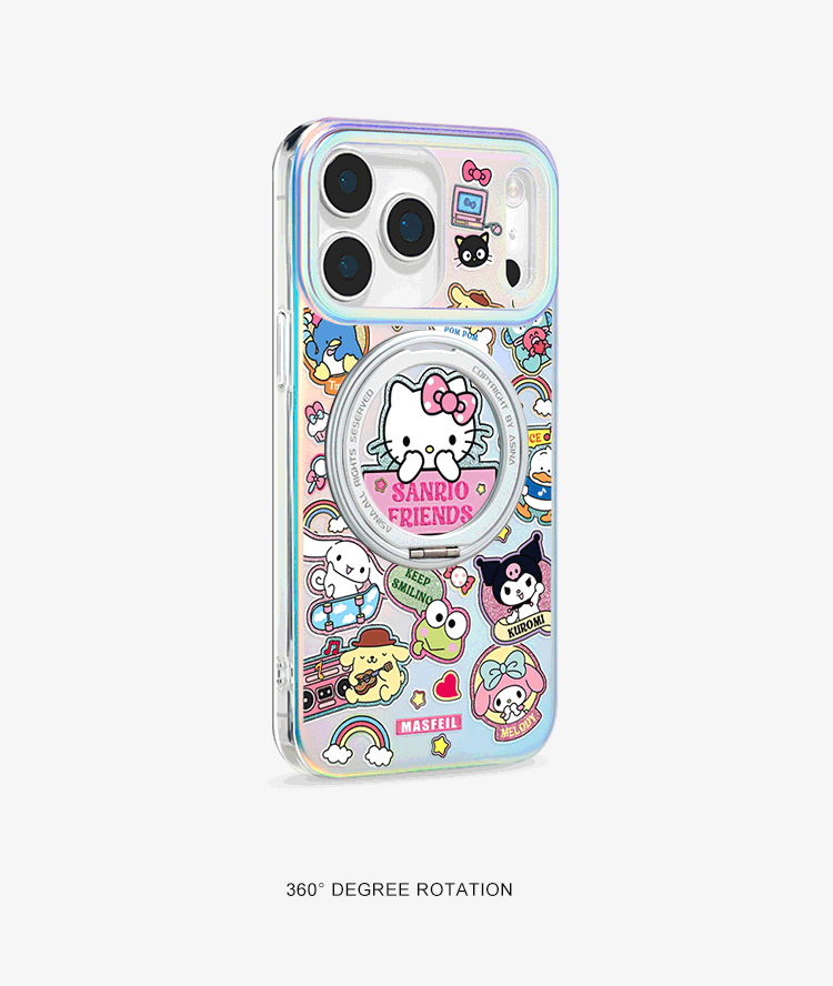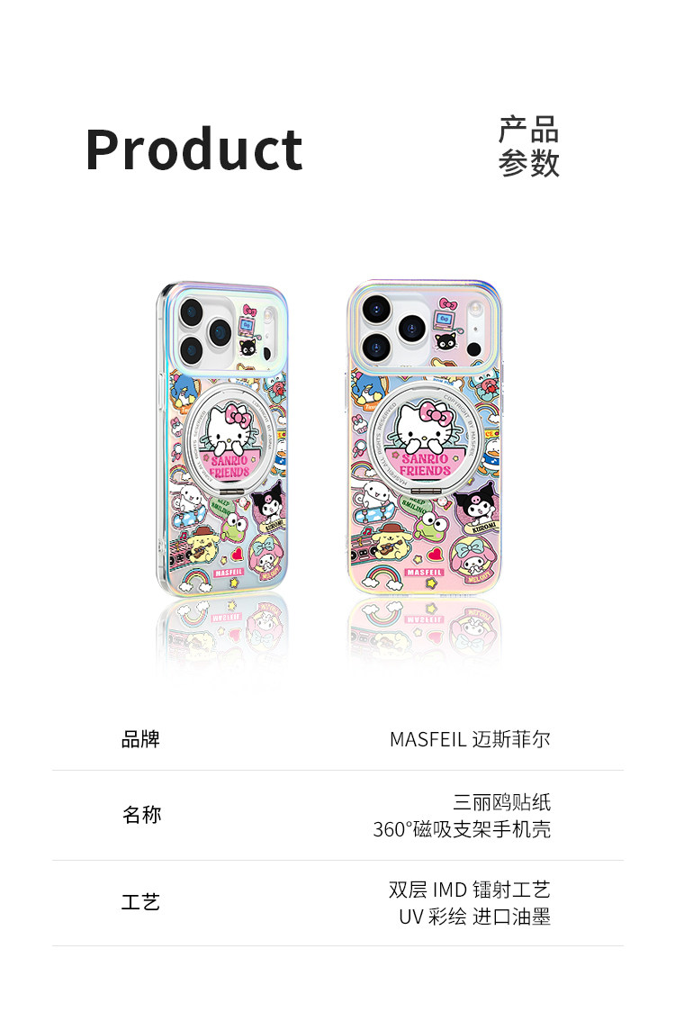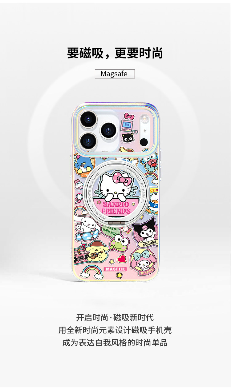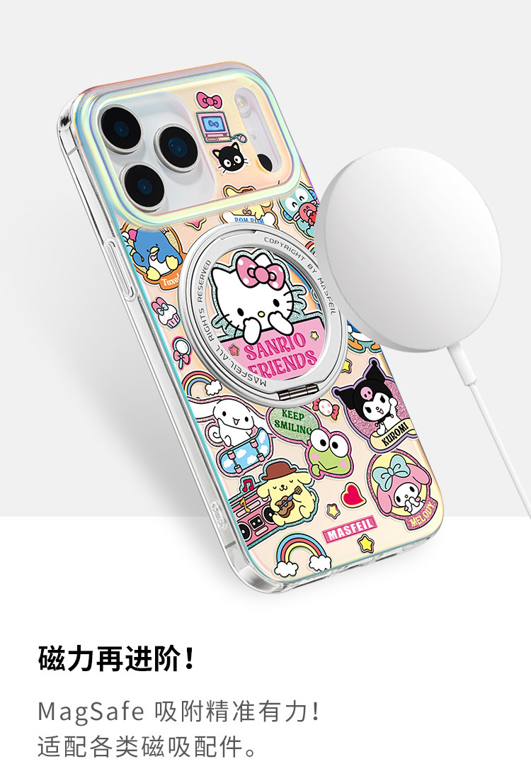 MASFEIL × Apple 17 Pro Max telefon qutusu üçün Sanrio stikeri, yeni 15 maqnit qayış dayağı, iPhone 16 Pro qoruyucu qutusu, 14 dayaq nöqtəsi, yüksək səviyyəli 13pm tam örtük.