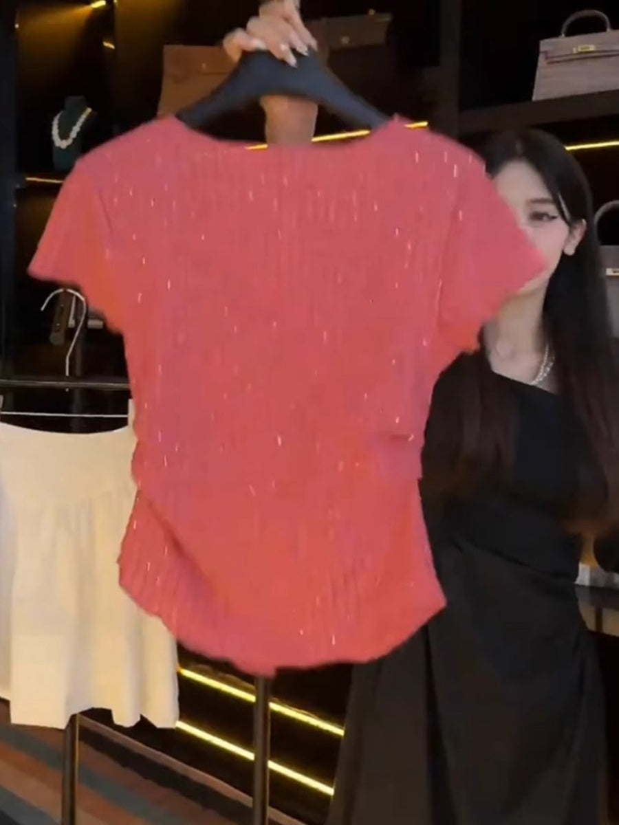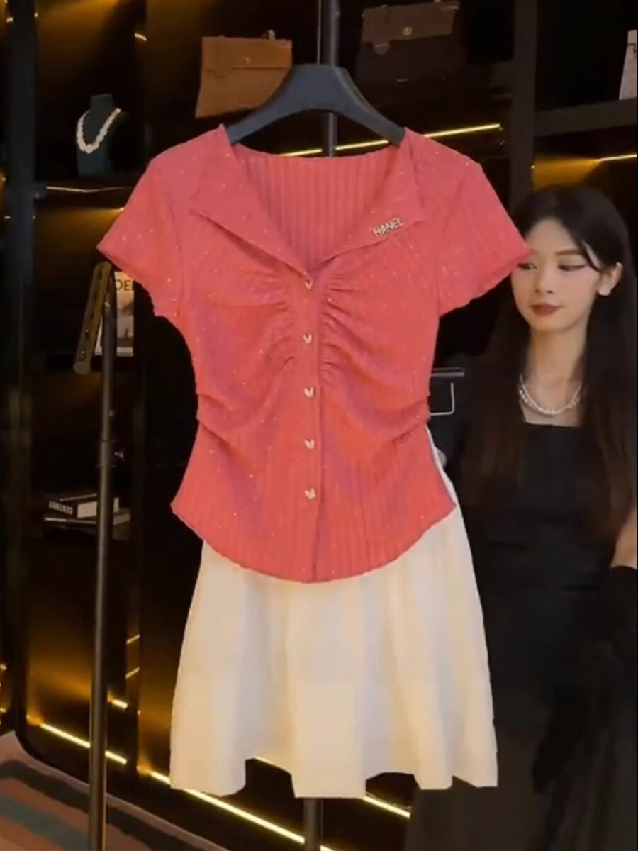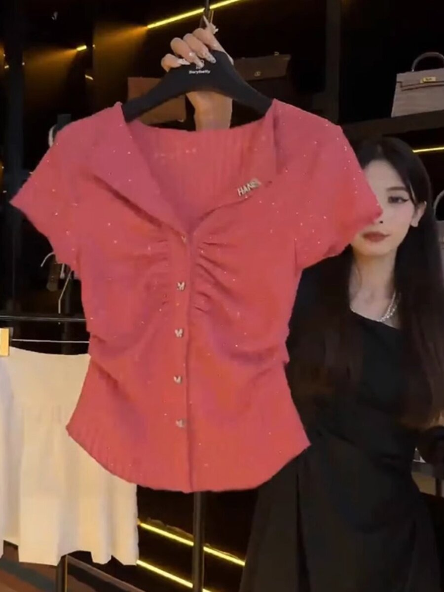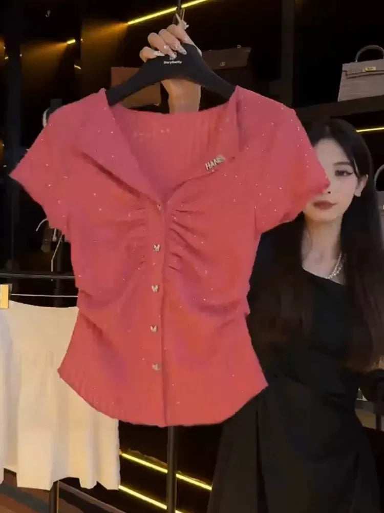 Moruqlu çəhrayı rəngli incə qısaqol köynək, böyük ölçülər üçün, yay, tək sinəli kəpənək formalı top