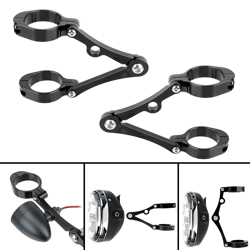 Features: The bracket can be adjusted to perfectly adapt to various headlights of different thicknesses. High quality CNC machined headlight brackets that incorporate fork clamps. With an added advantage of being able to pivot around the fork to allow for headlights with a range of widths. Easy to fit them to your forks without removing the forks from the yokes. Comes with 2 clamps and protective strips, comprehensive kit to relocate your headlight. Suitable for cruisers, cafe racers, streetfighters, project bikes, retros and so on. Specifications: Material: CNC,Aluminum Surface Treatment: Oxidized Technology: CNC Machined Color: Black, Silver, Black and Silver Mounting Hold Diameter: 39mm/1.5in, 41mm/1.6in (optional) 39mm is required to be equipped with four washers. Fitment: Universal fit for H onda K awasaki S uzuki BSA Models with 39mm/41mm(optional) diameter fork tube Package Included: 1 Pair x Headlight Bracket(With 4 washers) Do dropshipping ? Yes,we do.If you have any question please contact us. Production Material Safety? All products are 100% brand new, workable and checked carefully before sending out. When is the parcel sent? We will send out order within 5 workdays. The delivery time will vary according to different countries and will be affected by weather, public holidays and so on. If order doesn't received in declare time, please contact us. How about refund? Full refund if the item does not match the description or defective. If there are any other problems , Click on Help https://helppage.aliexpress.com/buyercenter/index.htm#centerhttps://helppage.aliexpress.com/buyercenter/index.htm#center