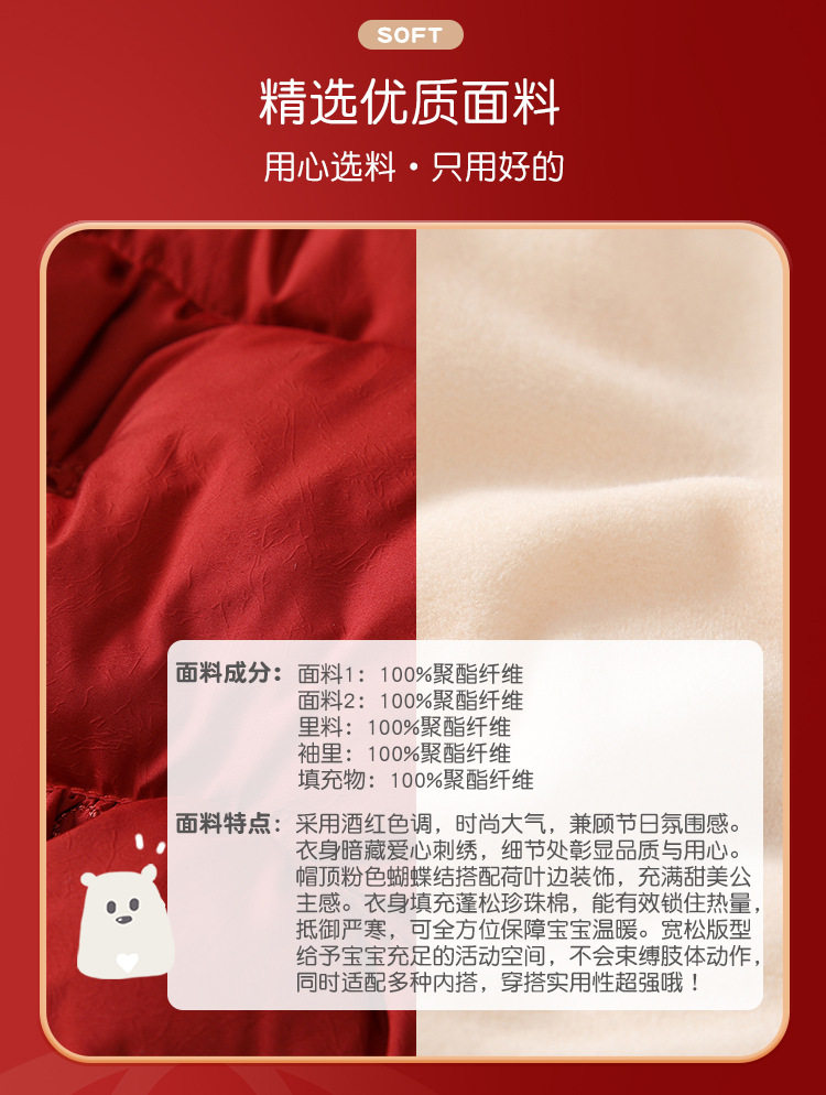 NTYZUU UK Qızlar üçün pambıqla örtülmüş qış gödəkçəsi, şık körpə gödəkçəsi, qalın və isti körpə pambıqla örtülmüş gödəkçə
