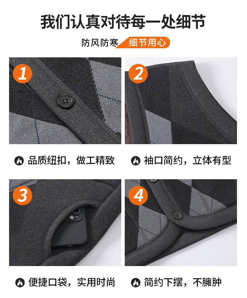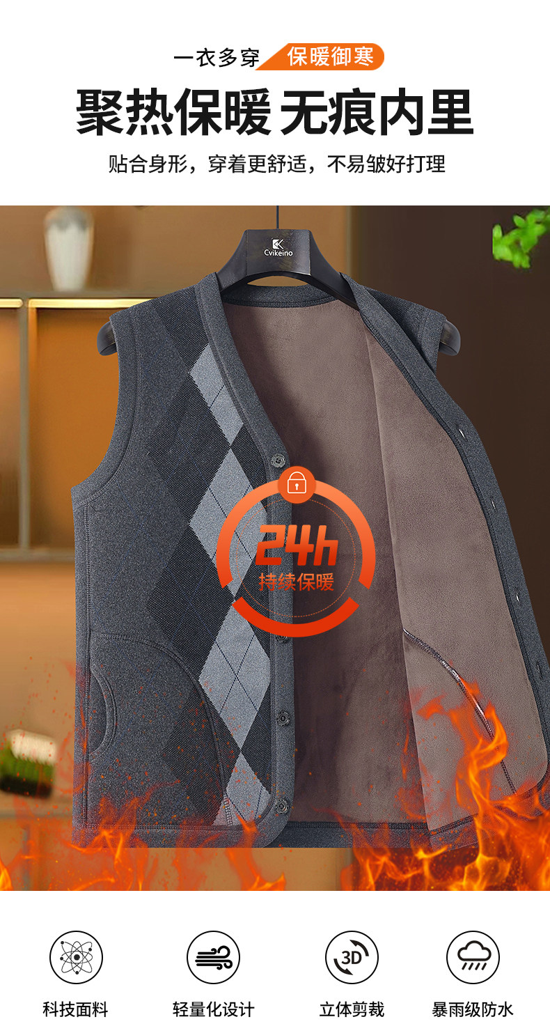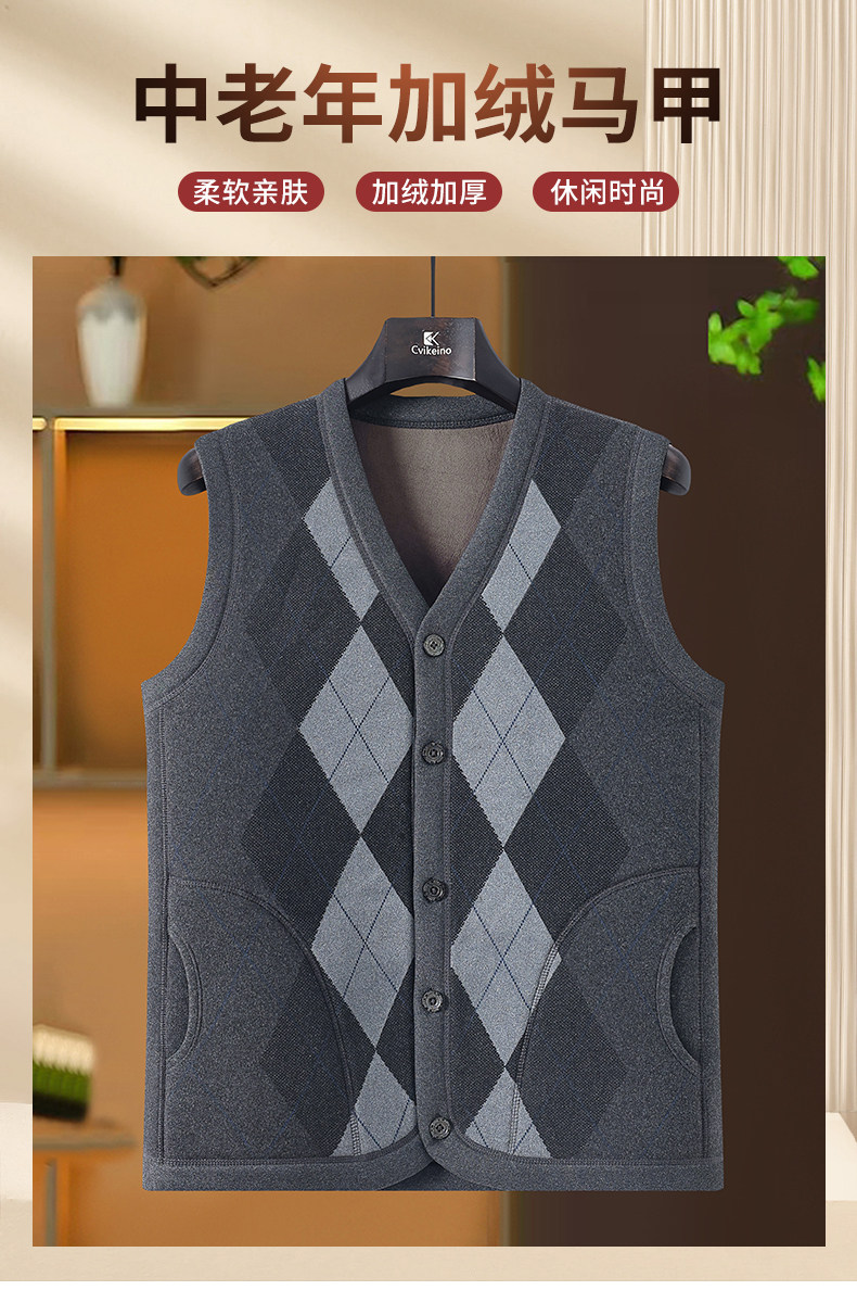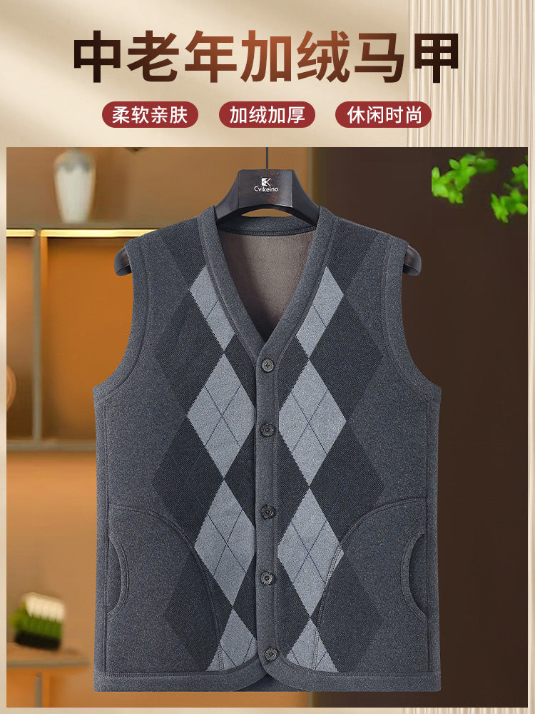 Orta və yaşlı kişilər üçün Roman kişilər üçün qış yun astarlı, qalınlaşdırılmış, isti jilet.
