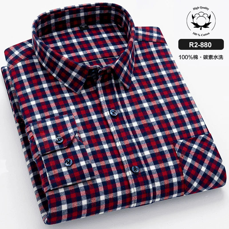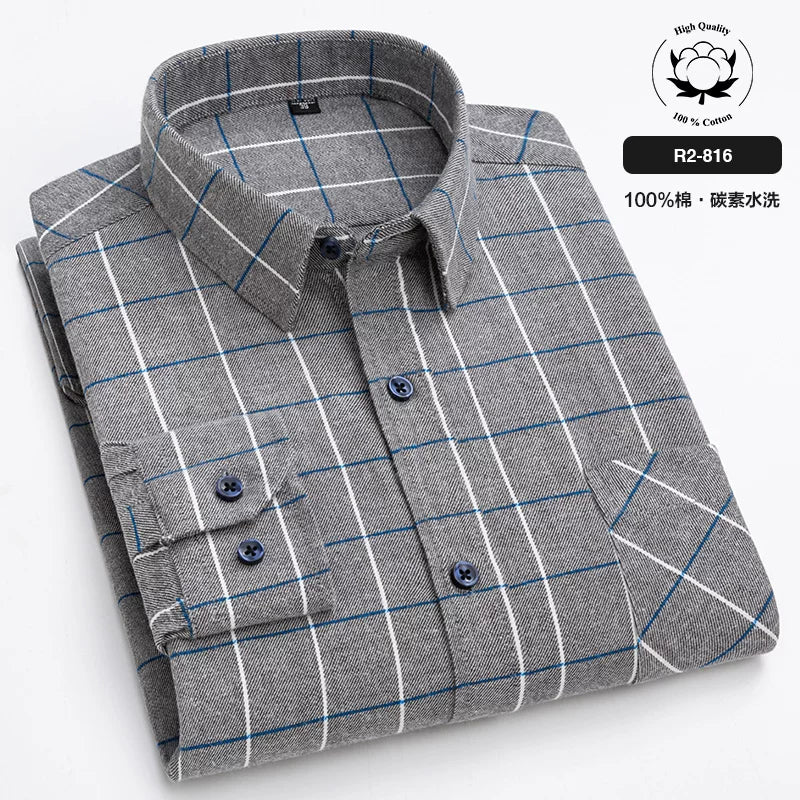 Paul 100% Pambıq Kişilər üçün Fırçalanmış Uzunqol Köynək, Gənc və Orta Yaşlı Kişilər üçün Gündəlik Pambıq Dama-dama Köynək, Böyük Ölçülü Kişi Geyimləri