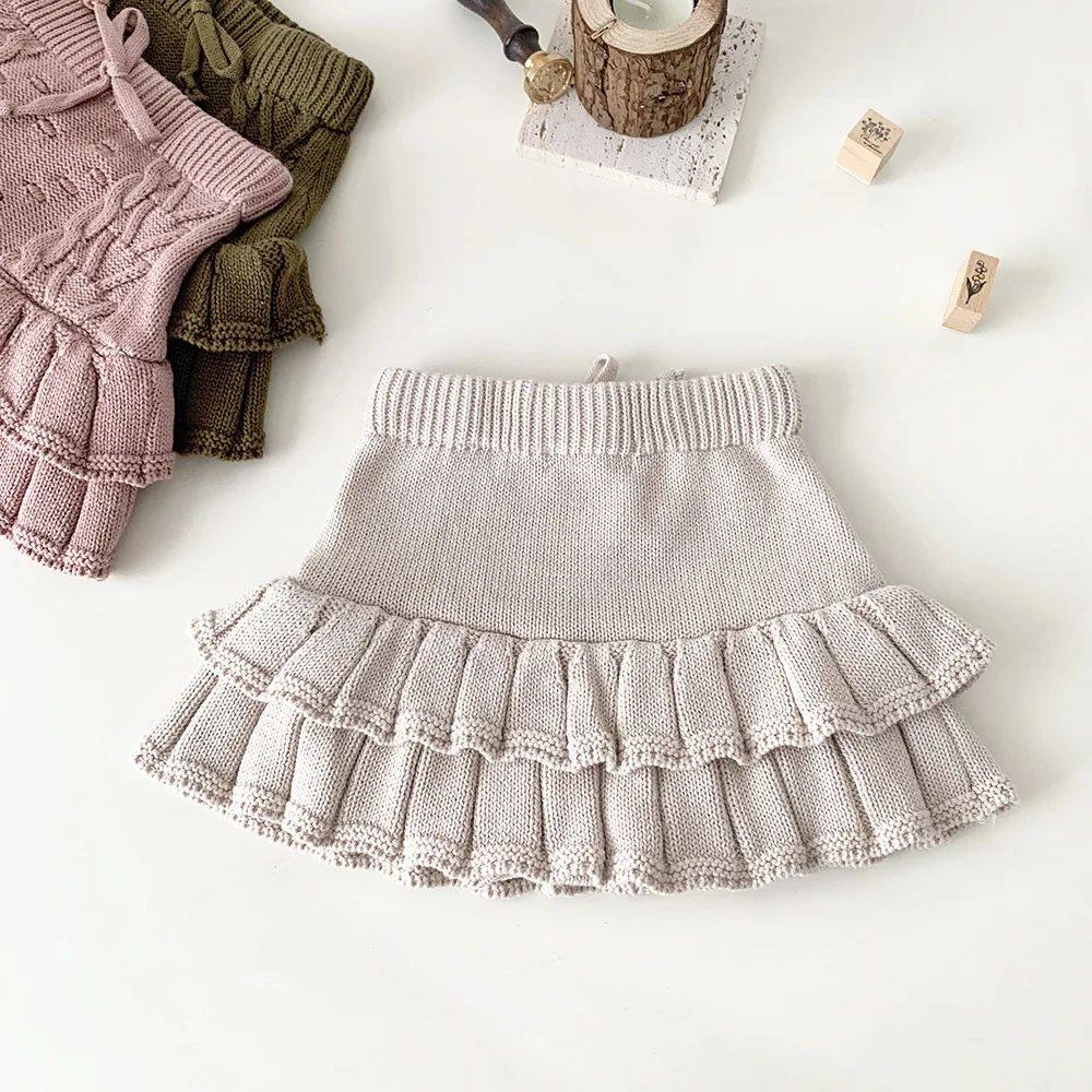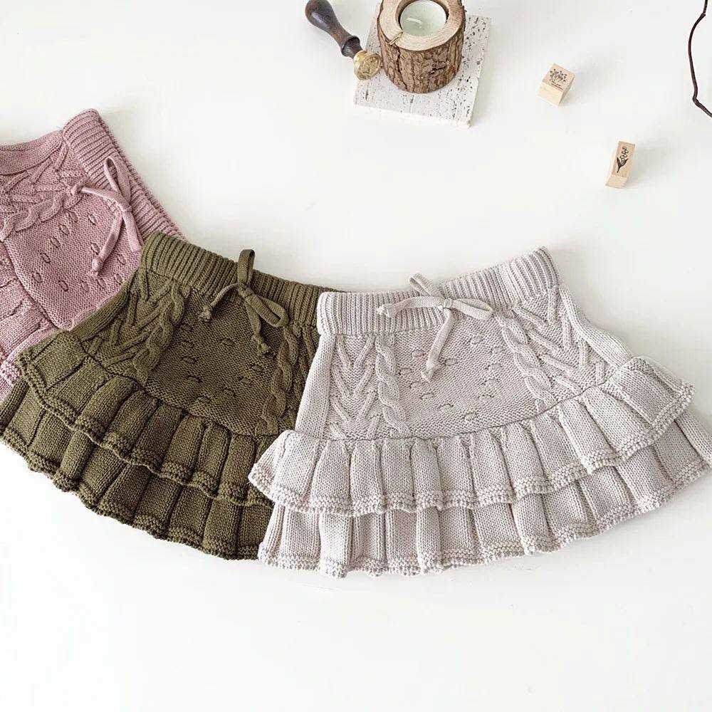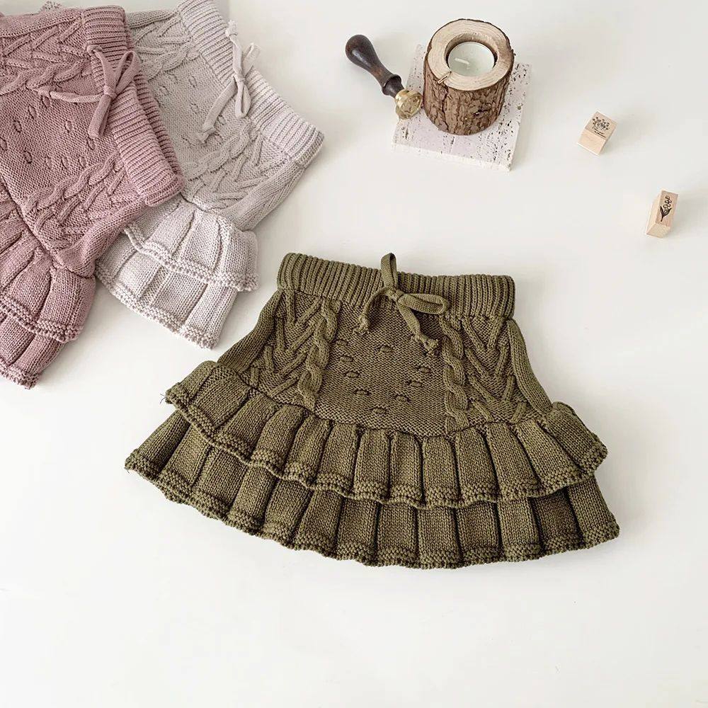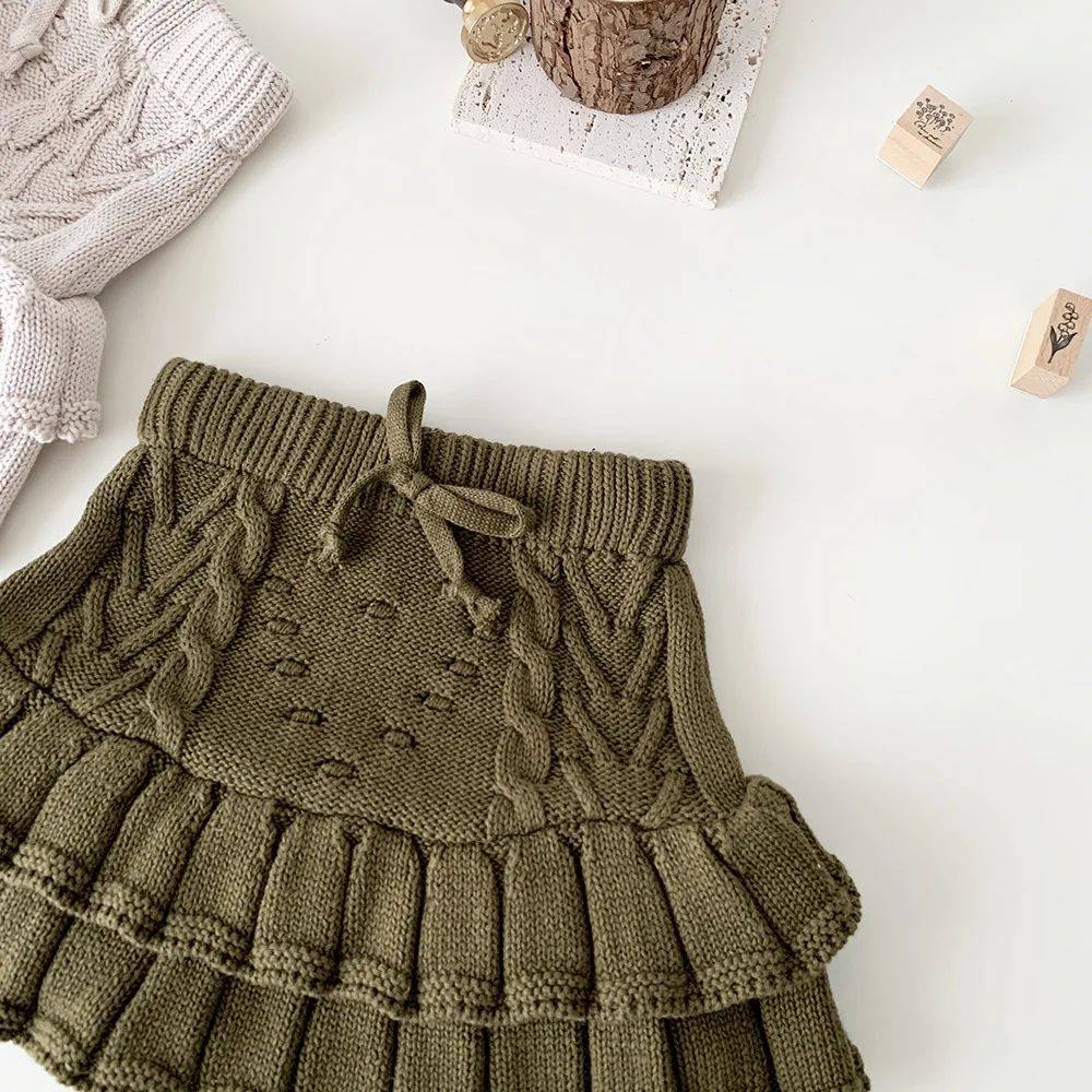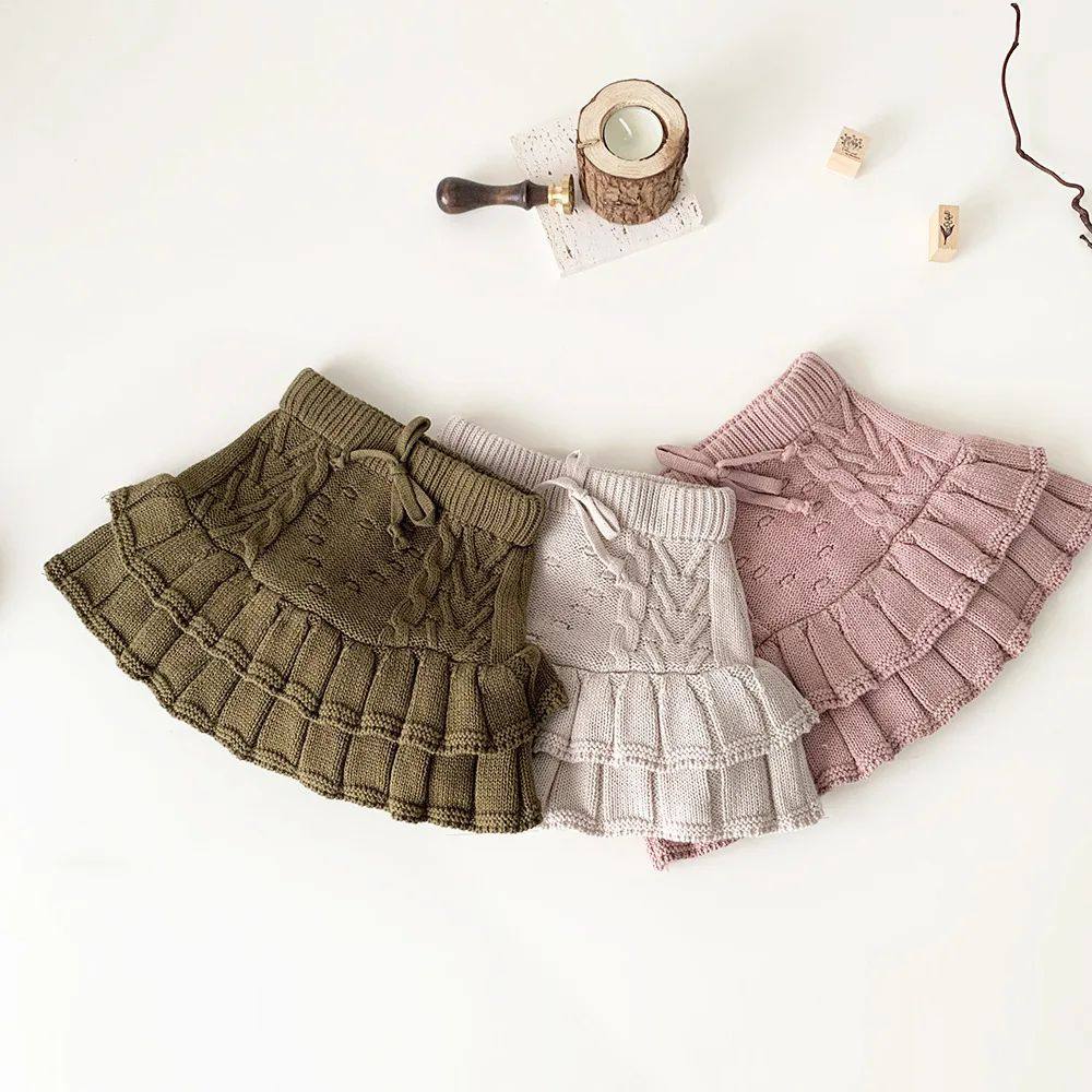 Autumn Children Clothes Kids Winter Knitting Skirt for Girl Shorts Princess Pleated Skirts Baby Girls Knitting Shorts Outfit